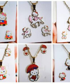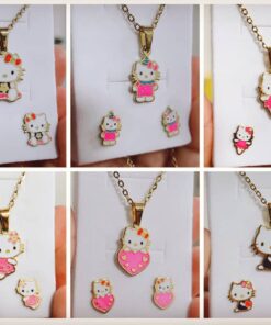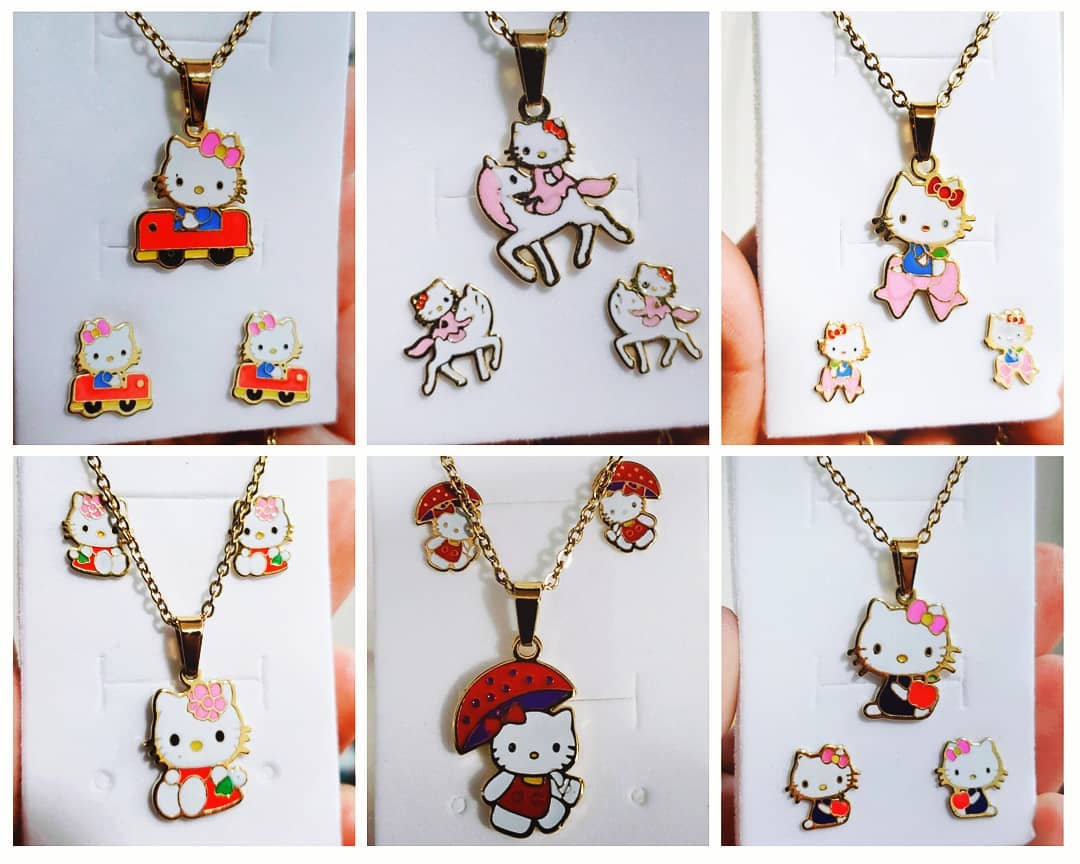 Lindos set para niñas, con diseños variados en hello kitty collar + aretes, elaborado en autentico acero quirúrgico inoxidable.