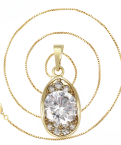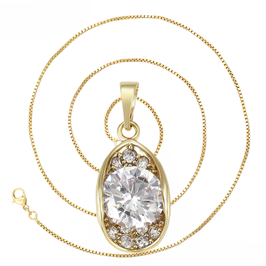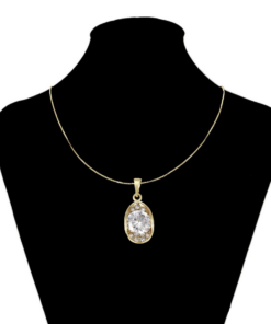 Elegante y fino collar elaborado en acero, con doble enchape de oro dorado de 18k, e incrustación de cristal.