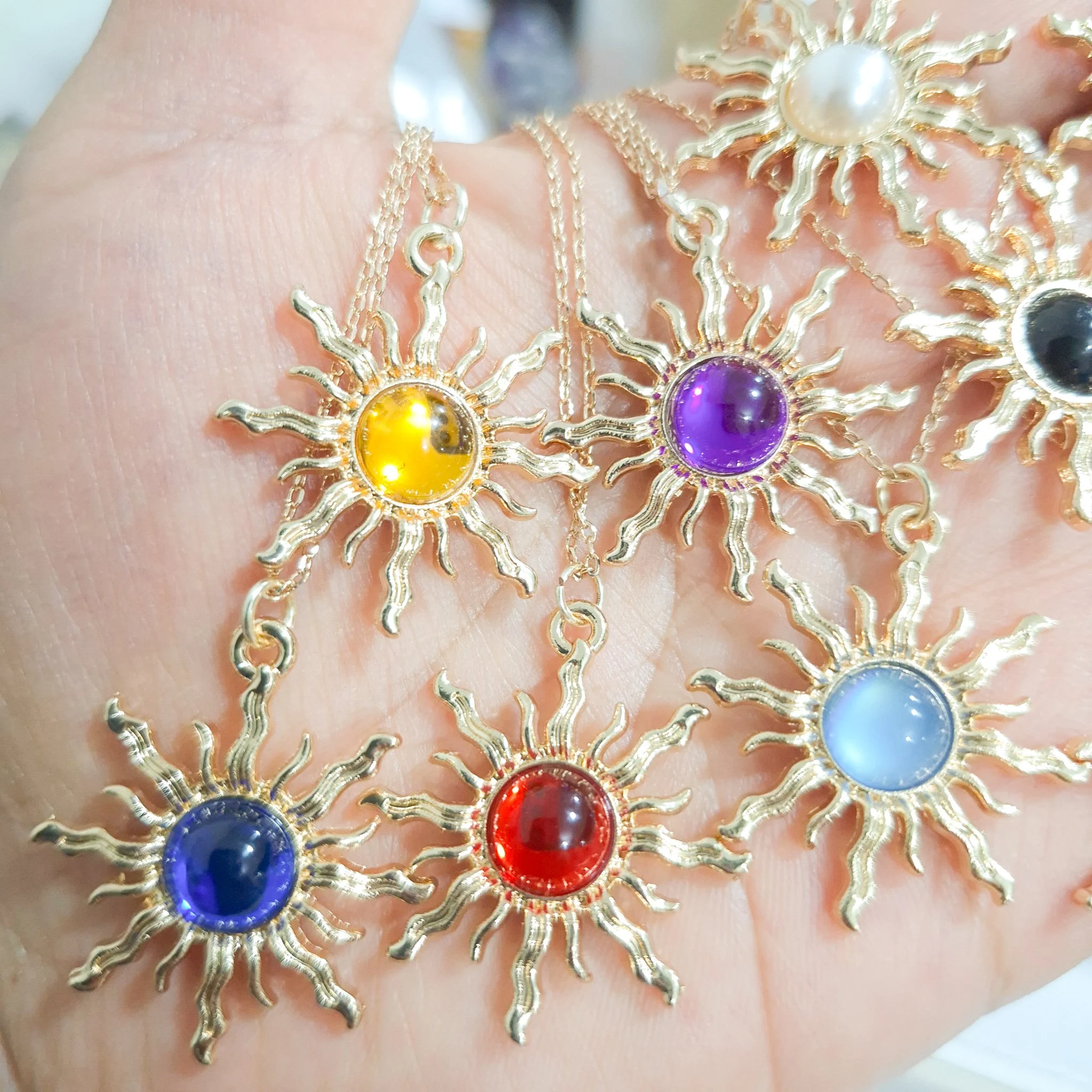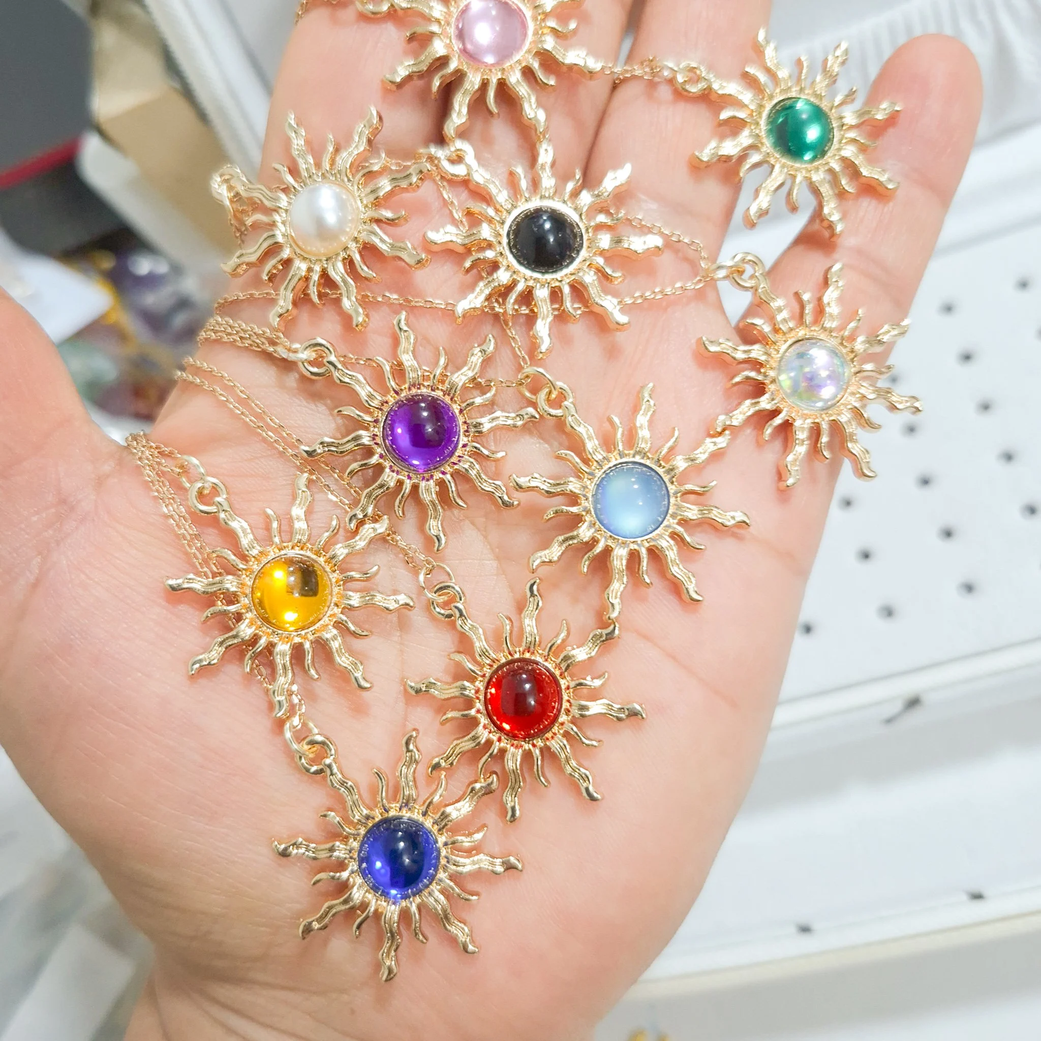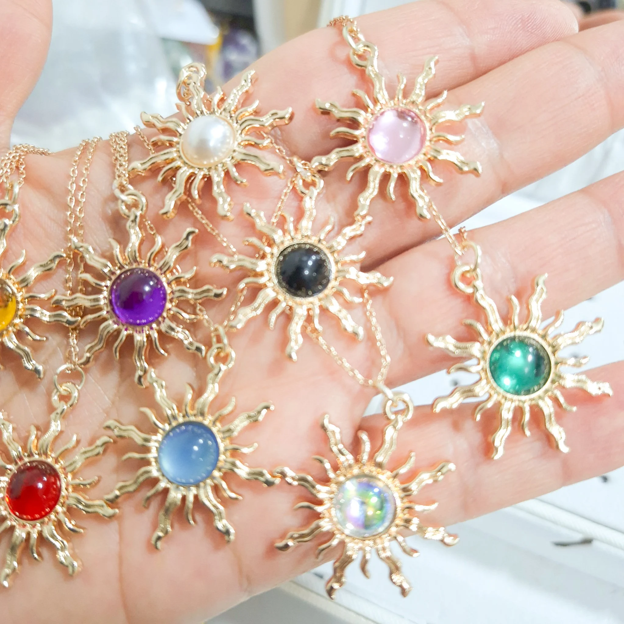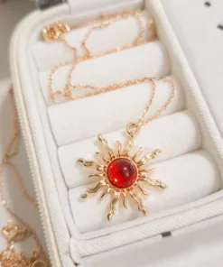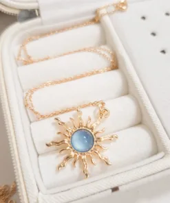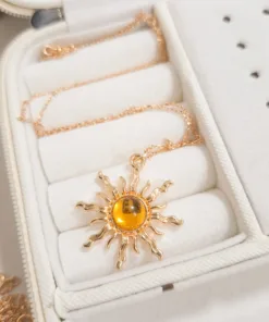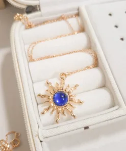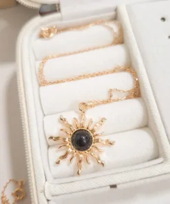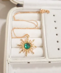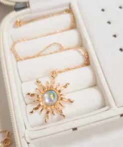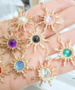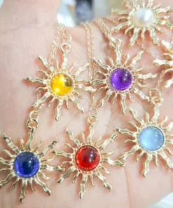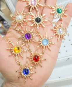 Elegante y hermoso collar elaborado en acero quirúrgico 316l enchapado en oro rosé 24k, con dije en forma sol con piedras de color.