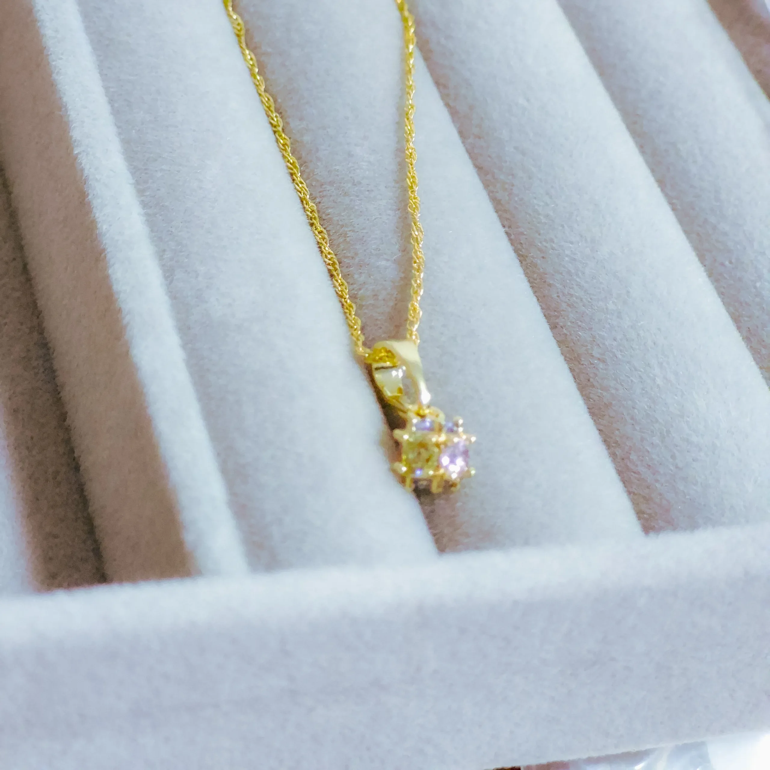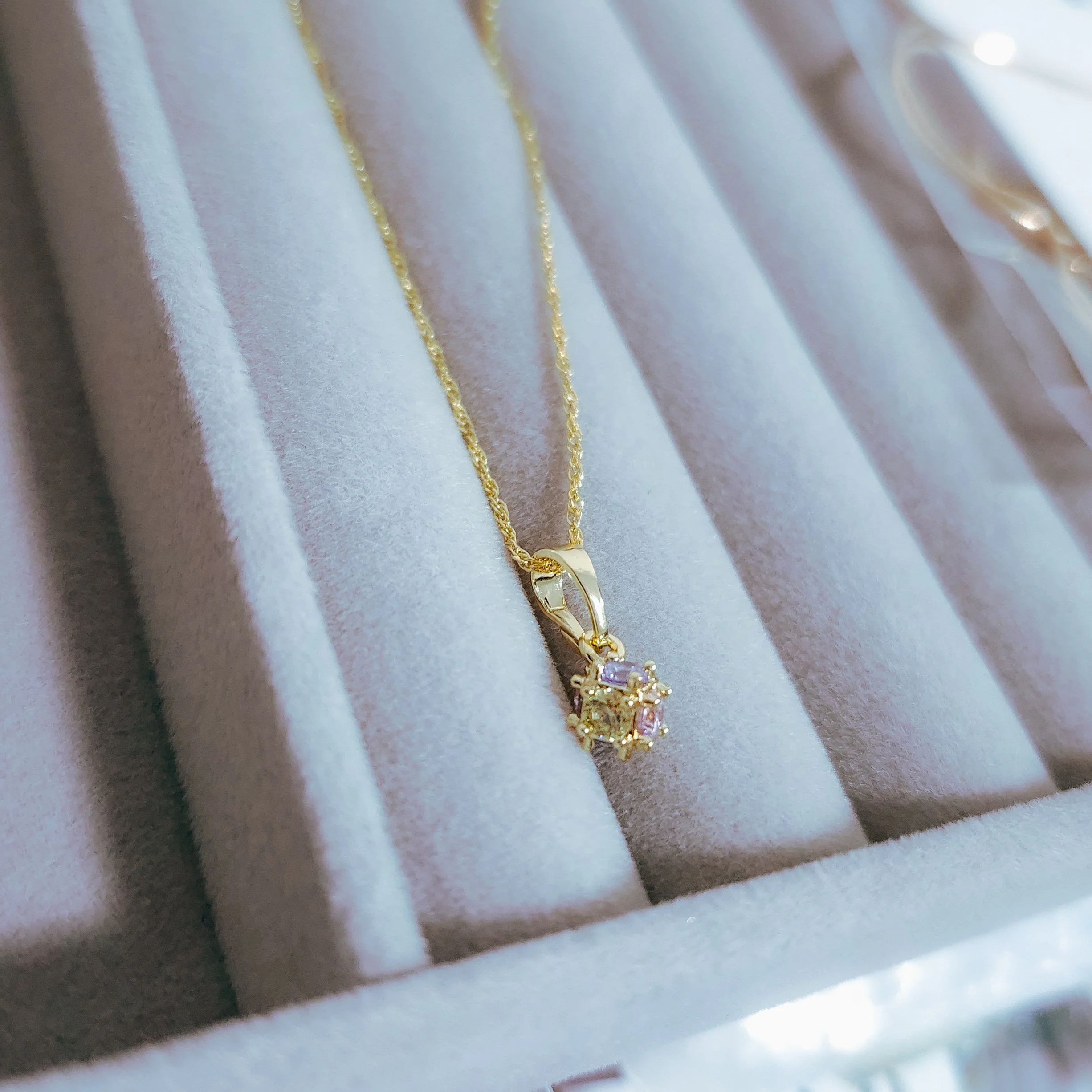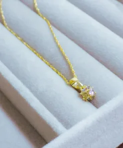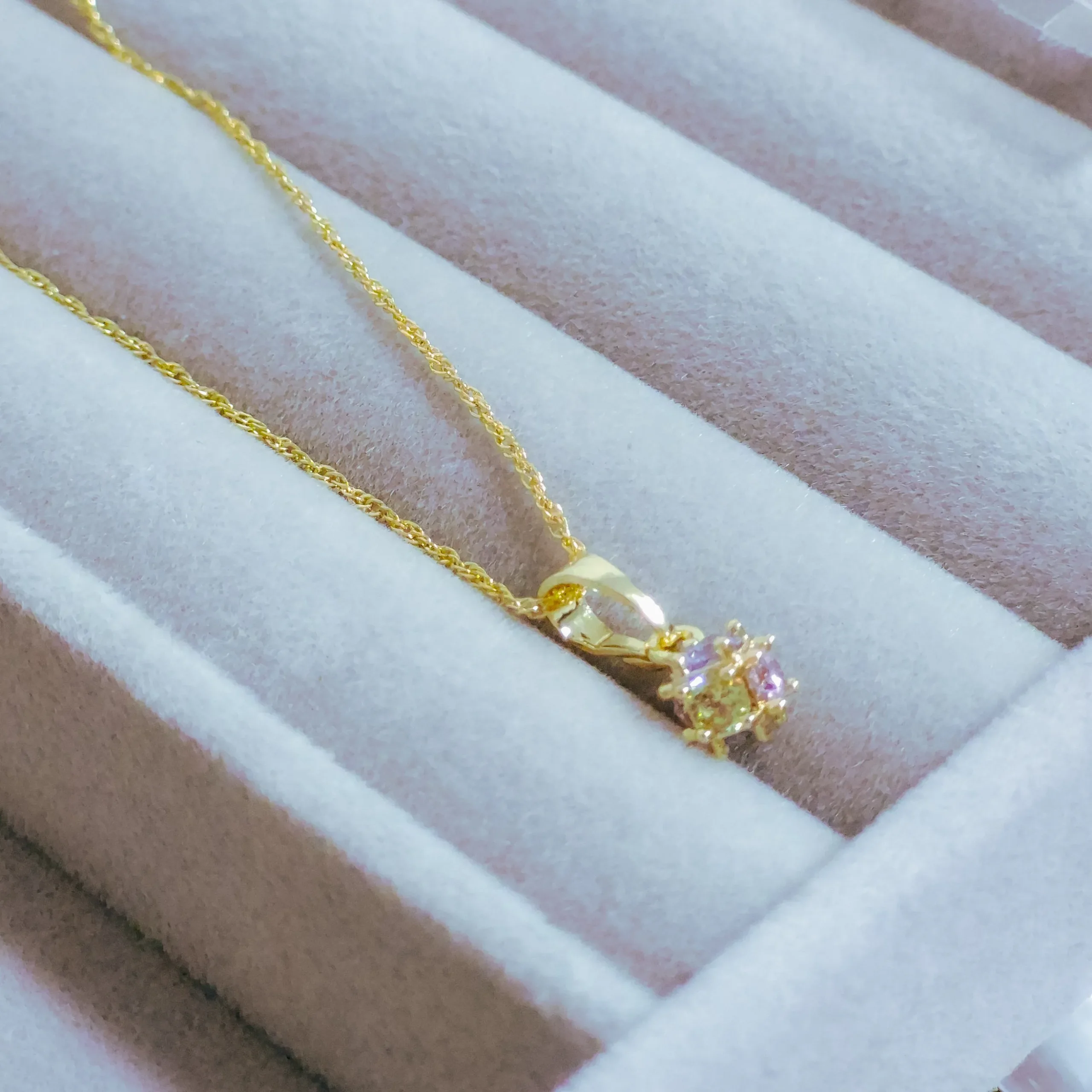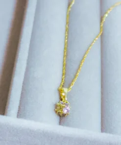 Hermoso collar elaborado acero quirúrgico 316l, con enchape en oro dorado 24k, e incrustación de cristal zircon en tonos pastel.