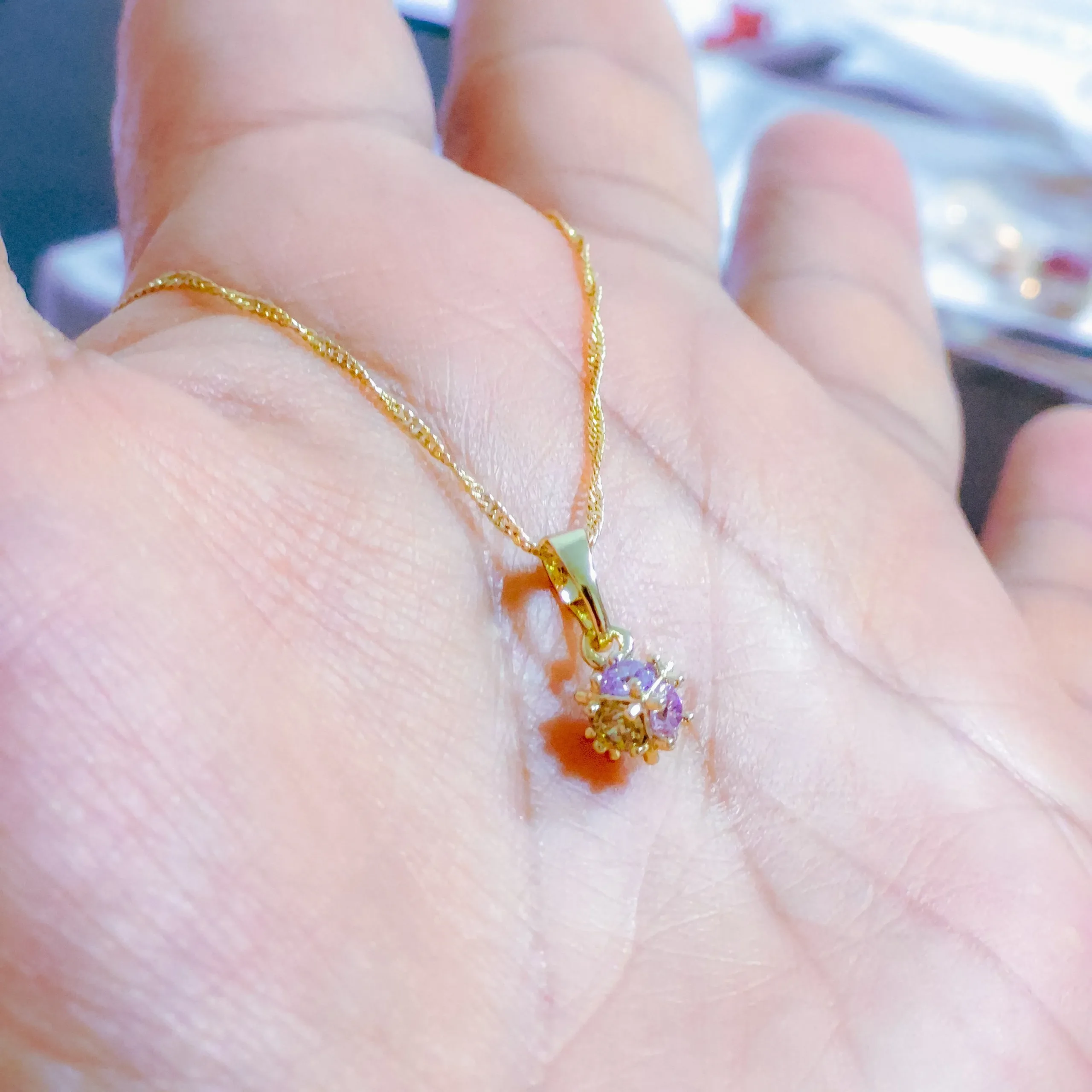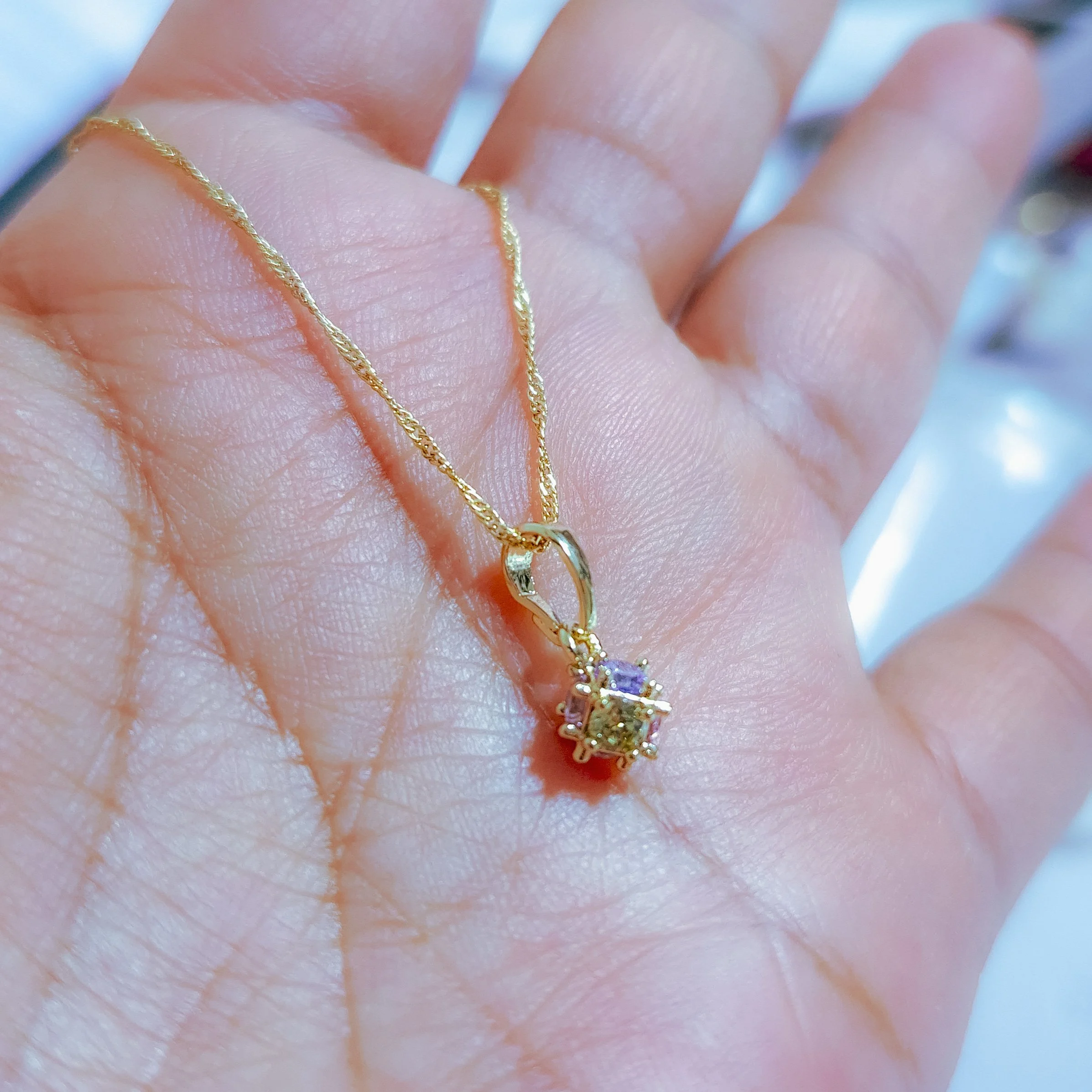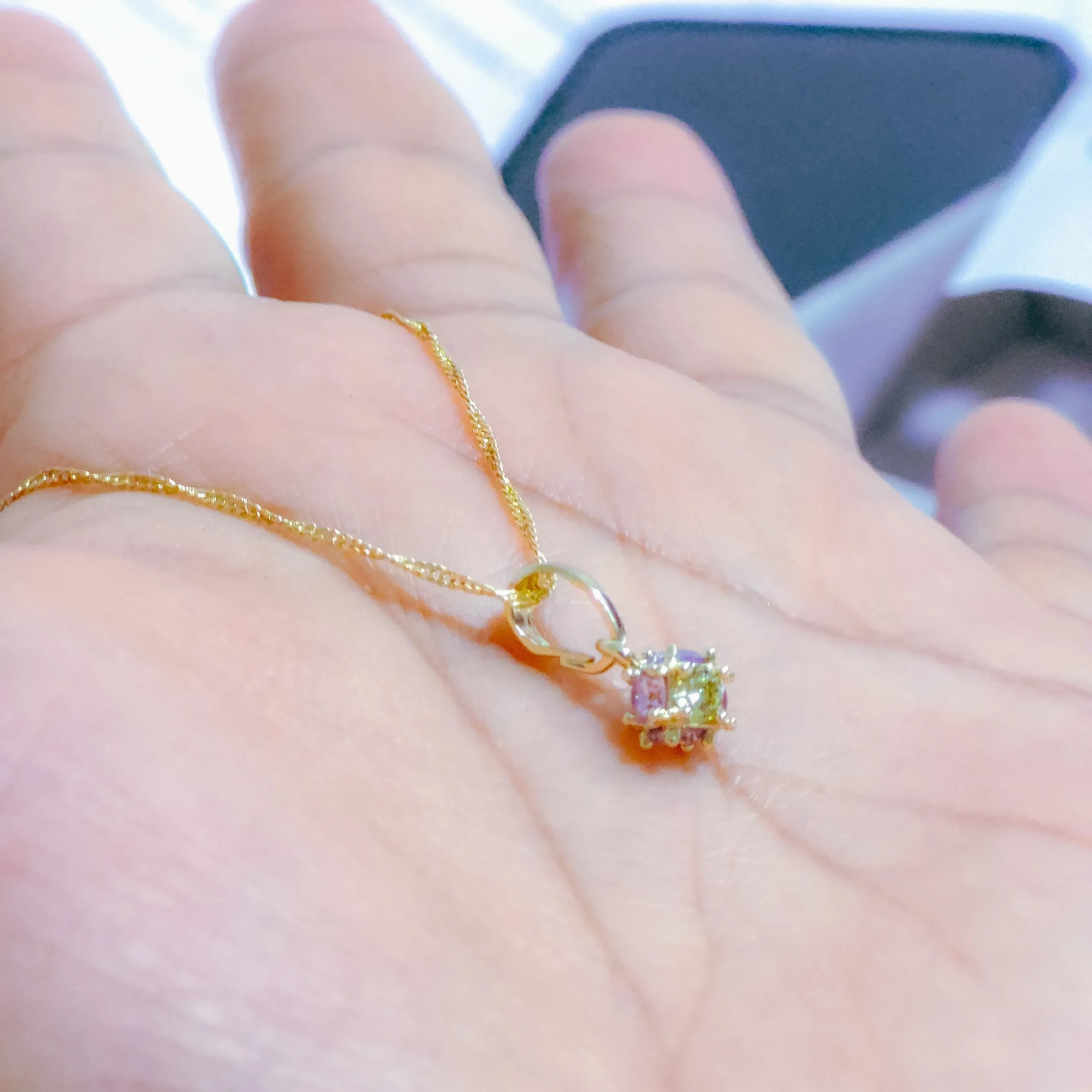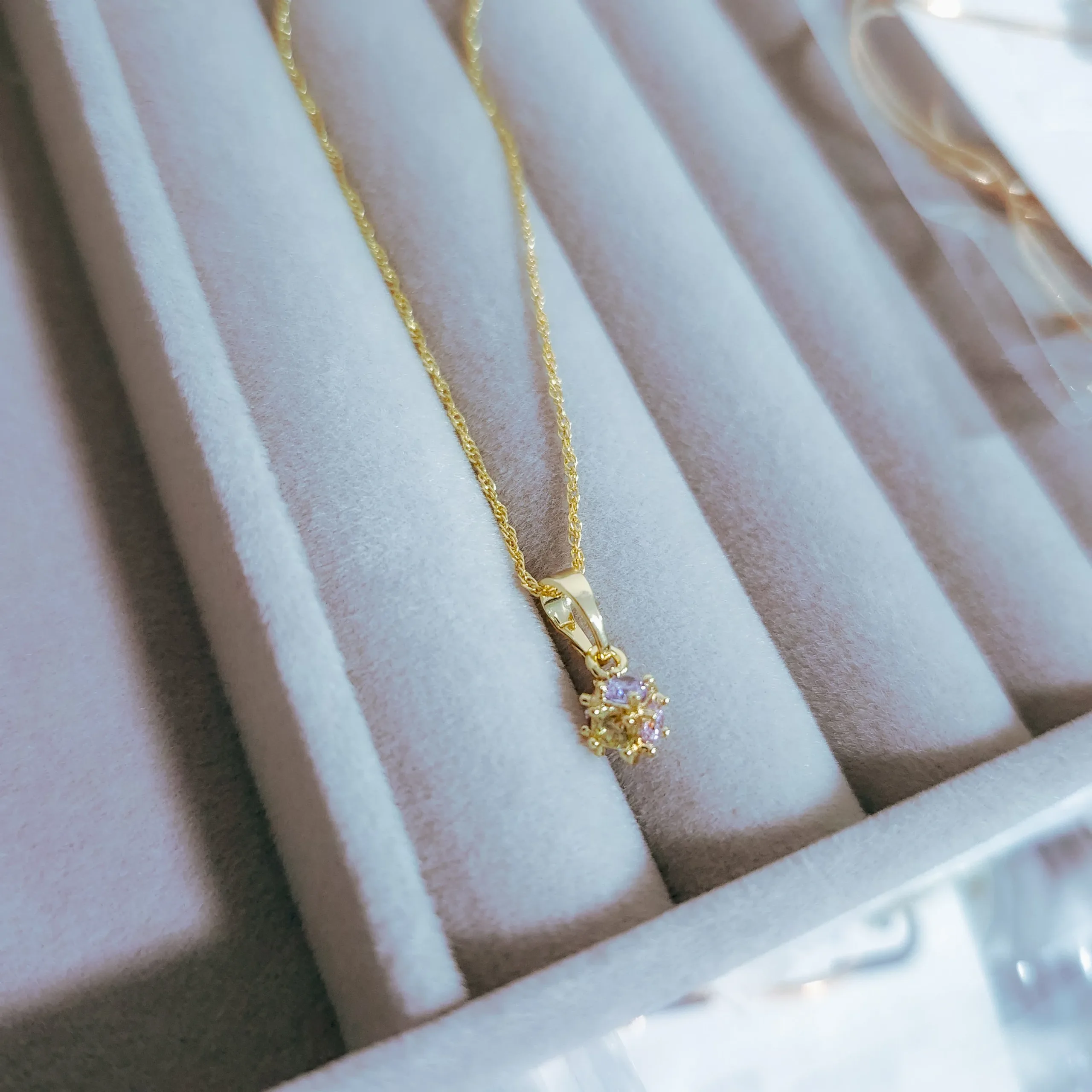 Hermoso collar elaborado acero quirúrgico 316l, con enchape en oro dorado 24k, e incrustación de cristal zircon en tonos pastel.