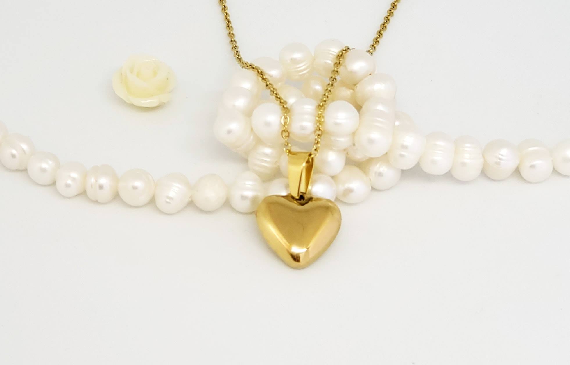 Hermoso collar en acero quirúrgico inoxidable con un dije de bombita corazón, un clásico muy romántico!