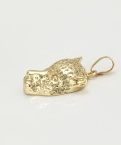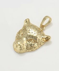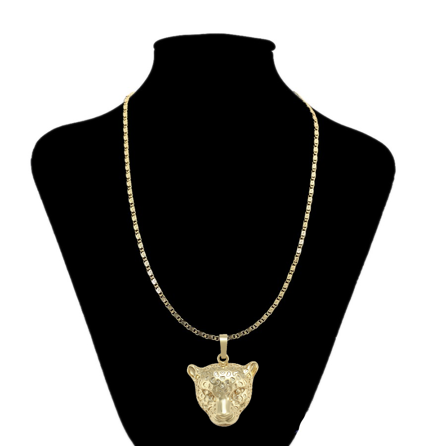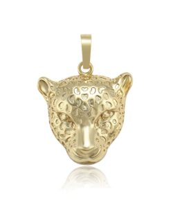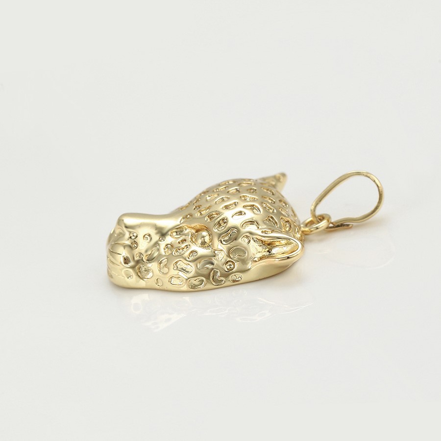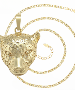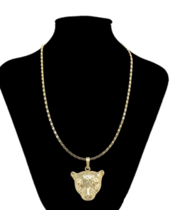Elegante cadena elaborada en acero, con doble enchape de oro dorado de 18K, dije de leopardo.