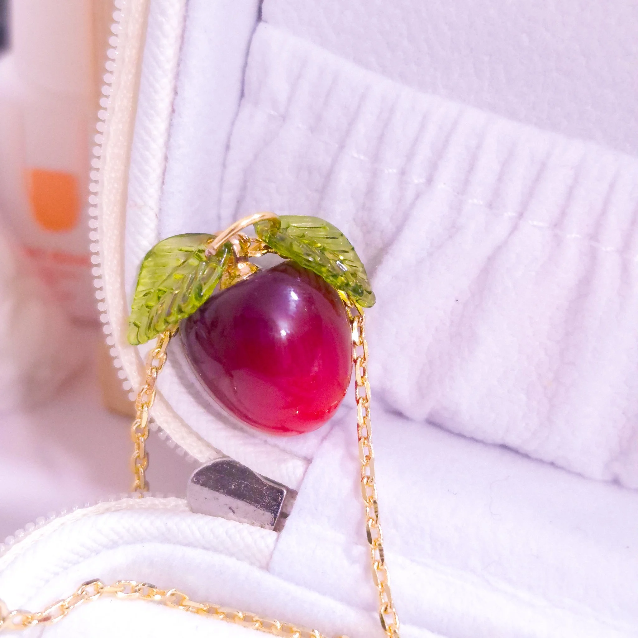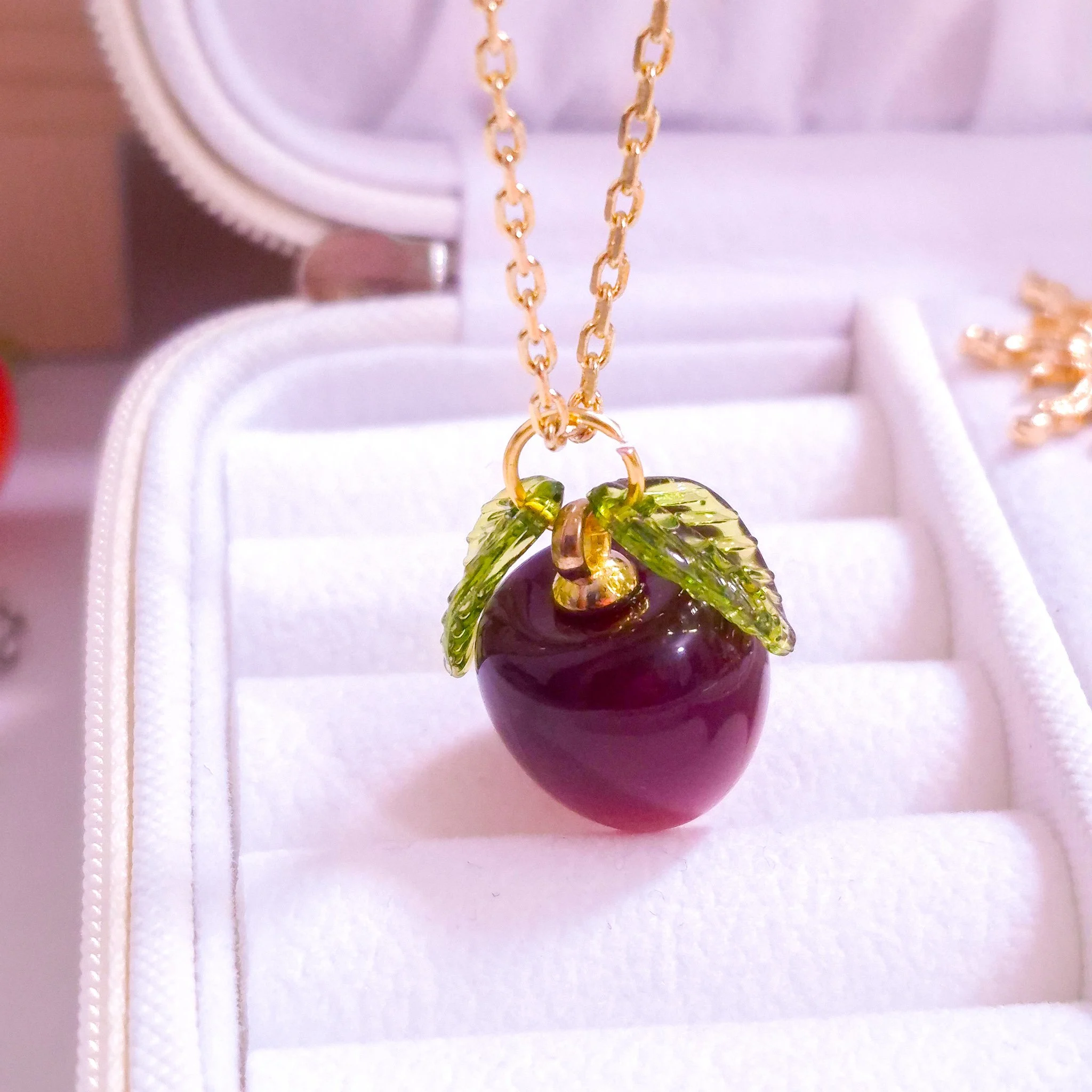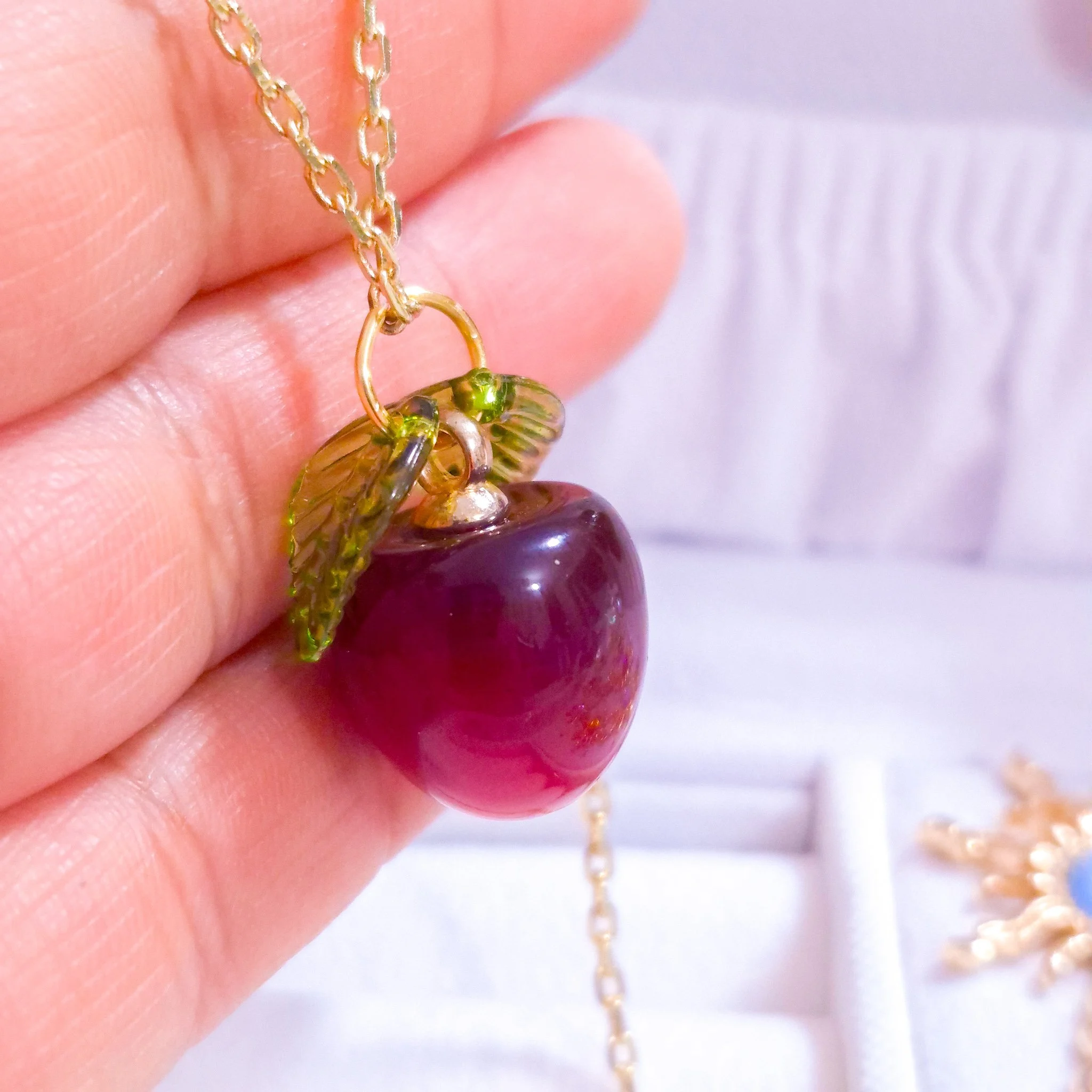 Hermoso Collar elaborado en acero quirúrgico 316l con enchape de oro 24k y detalle de dije de acero quirúrgico y hojas de material acrílico.