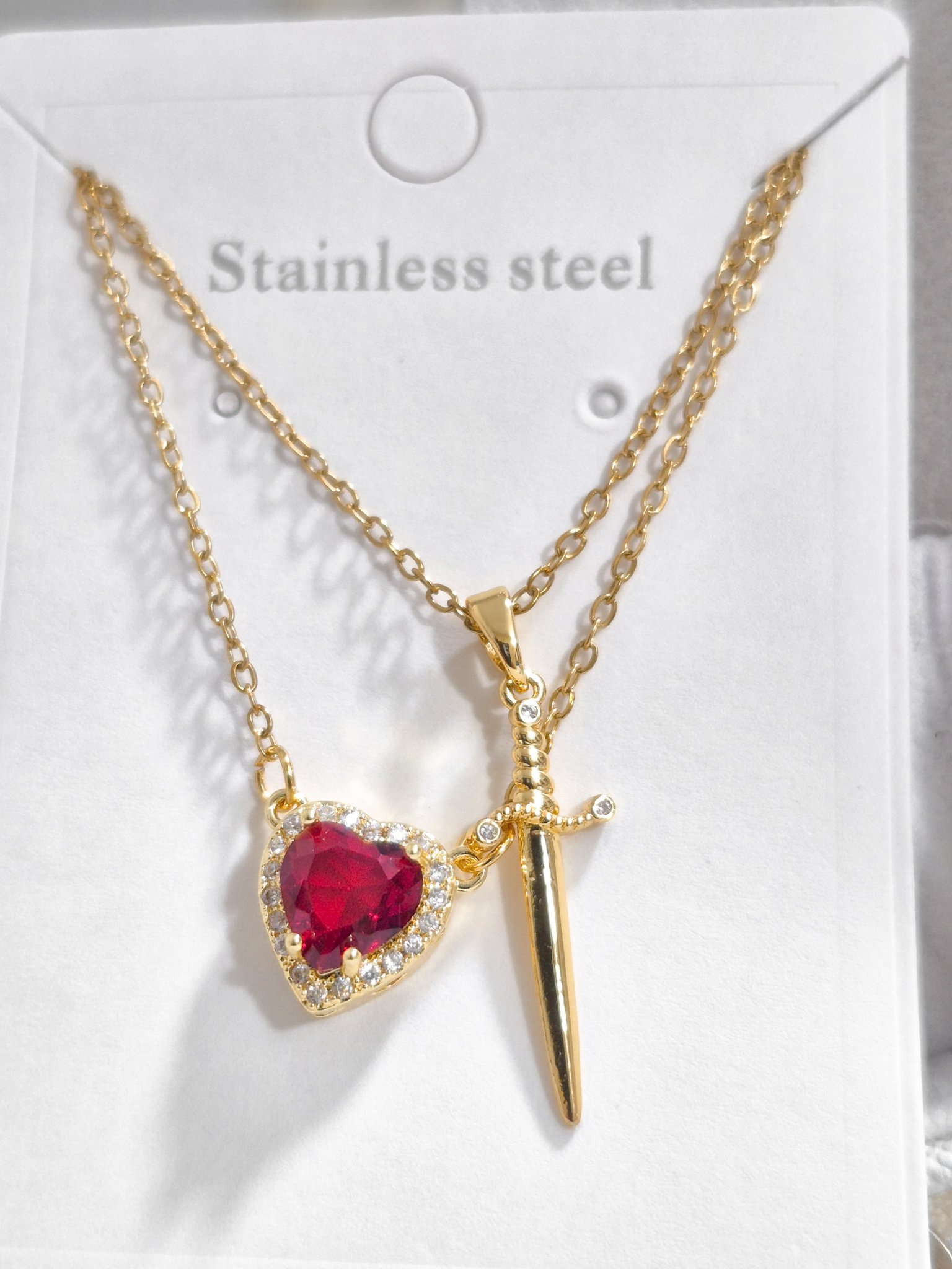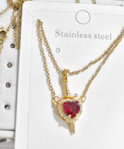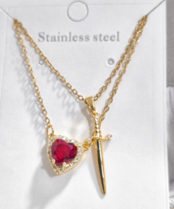 Lindos collares de pareja elaborado en acero quirúrgico 316l, dijes con enchape de oro 18k.