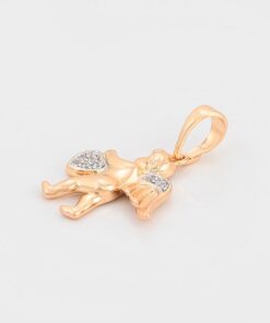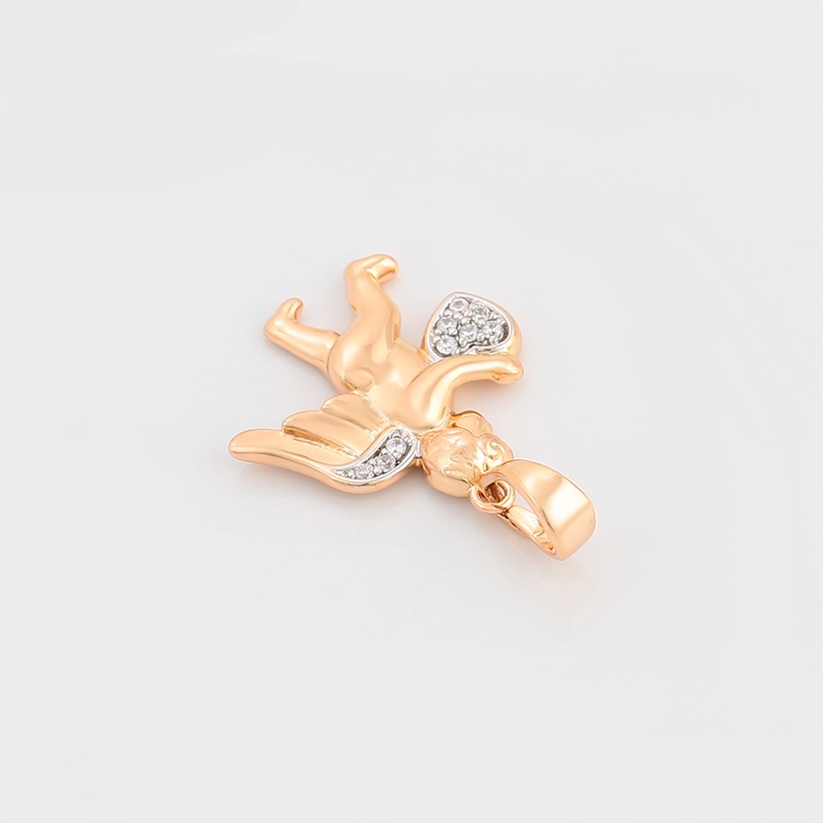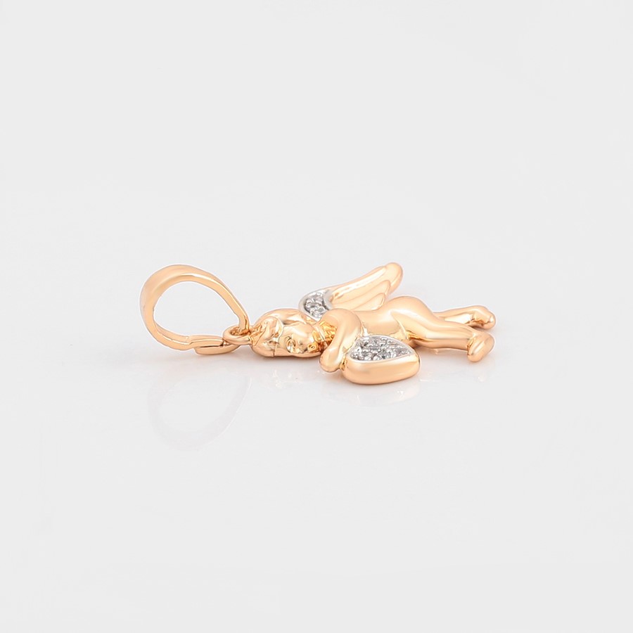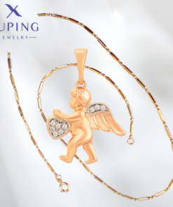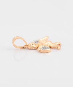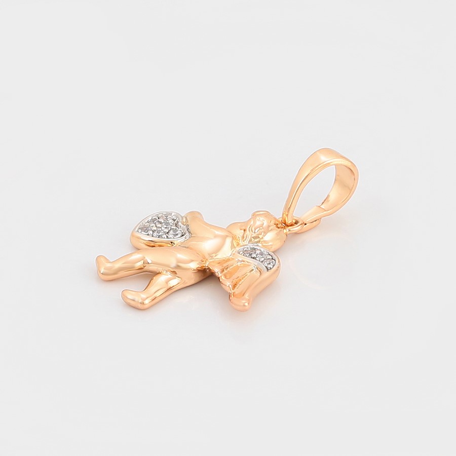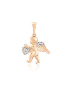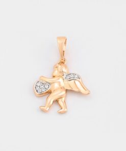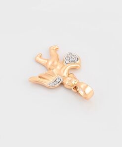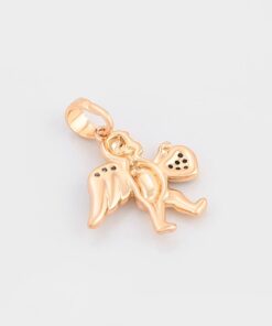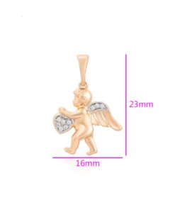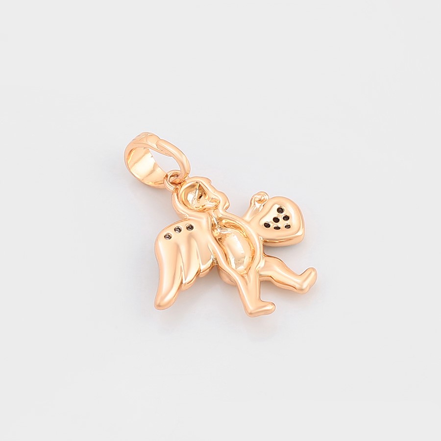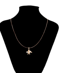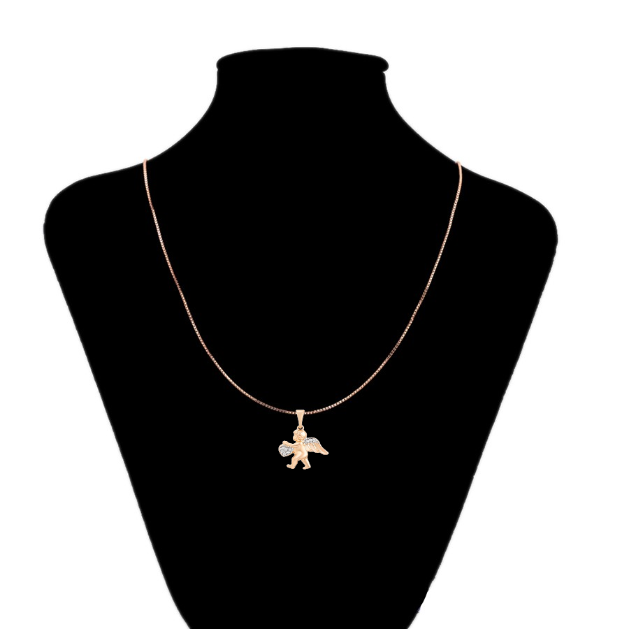 Elegante y delicado collar elaborado en Acero, con doble enchape de oro rosé de 18K, e incrustación de cristal, diseño de cupido.