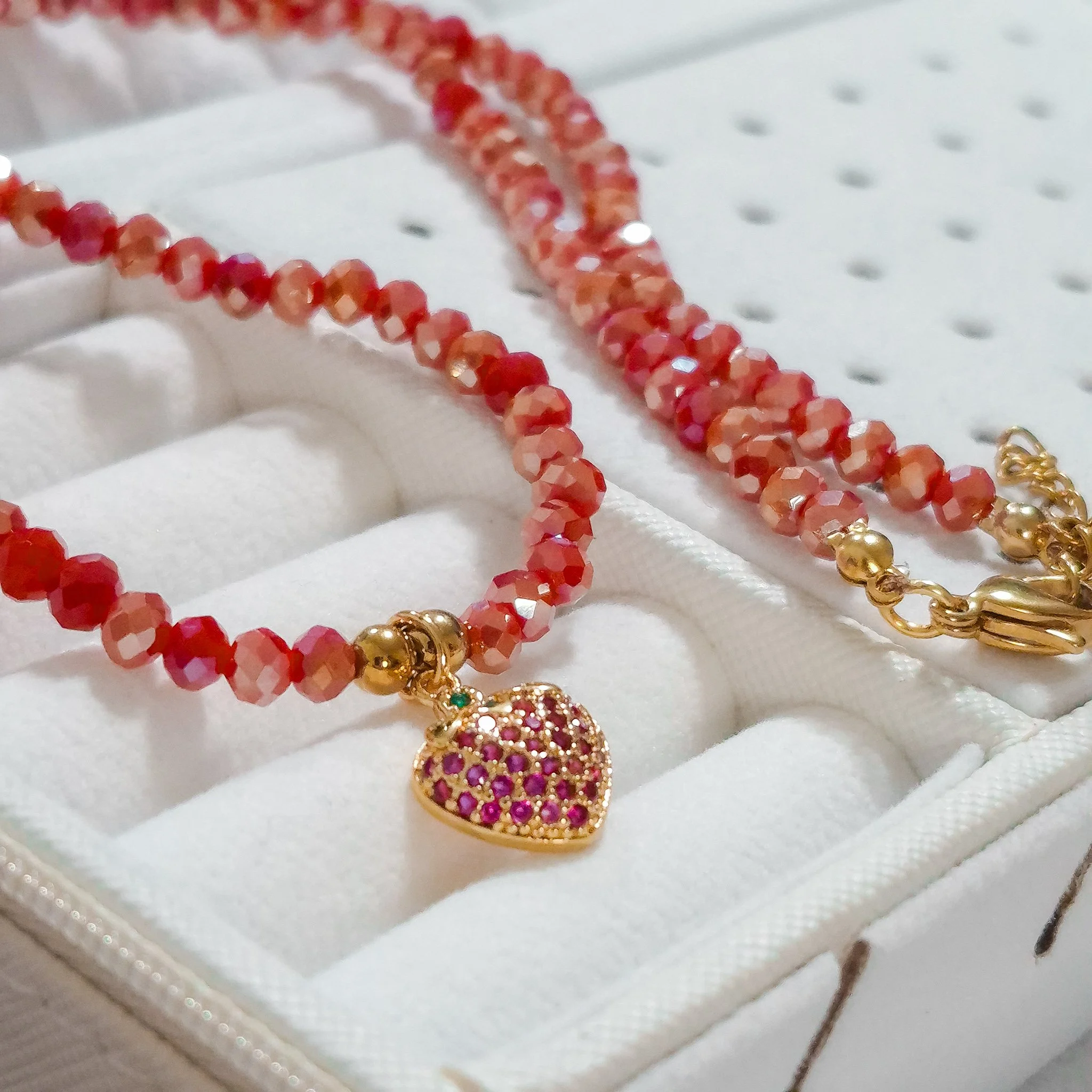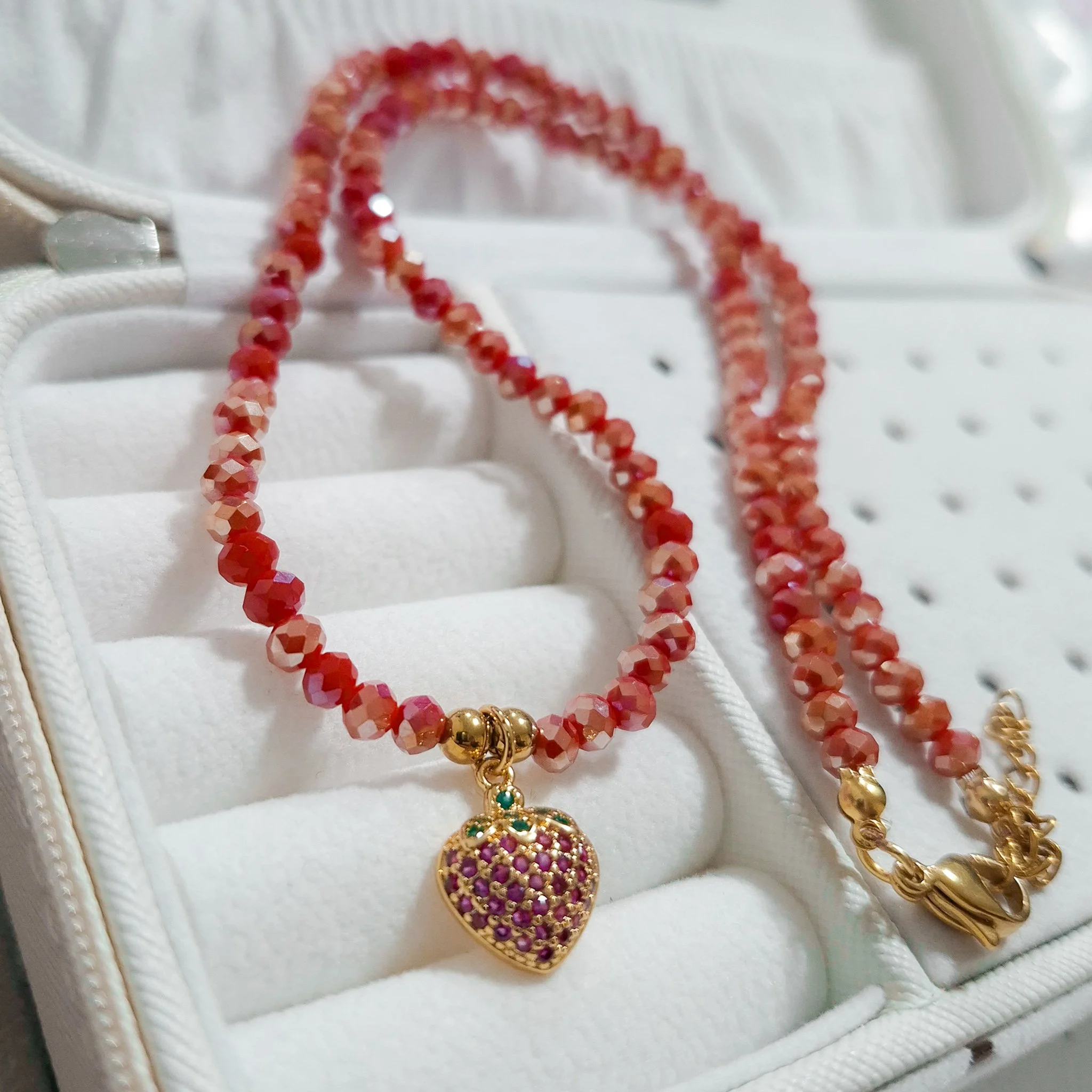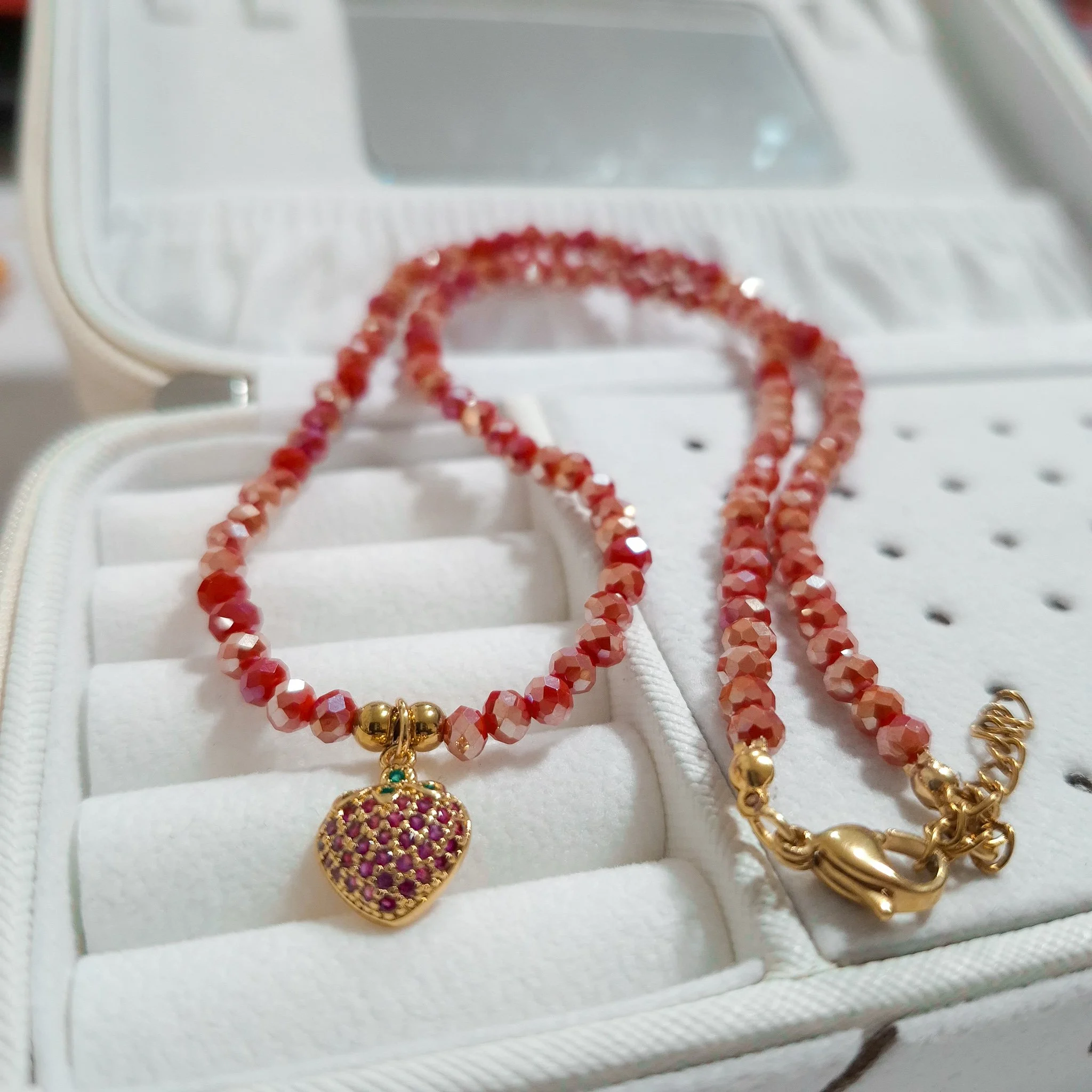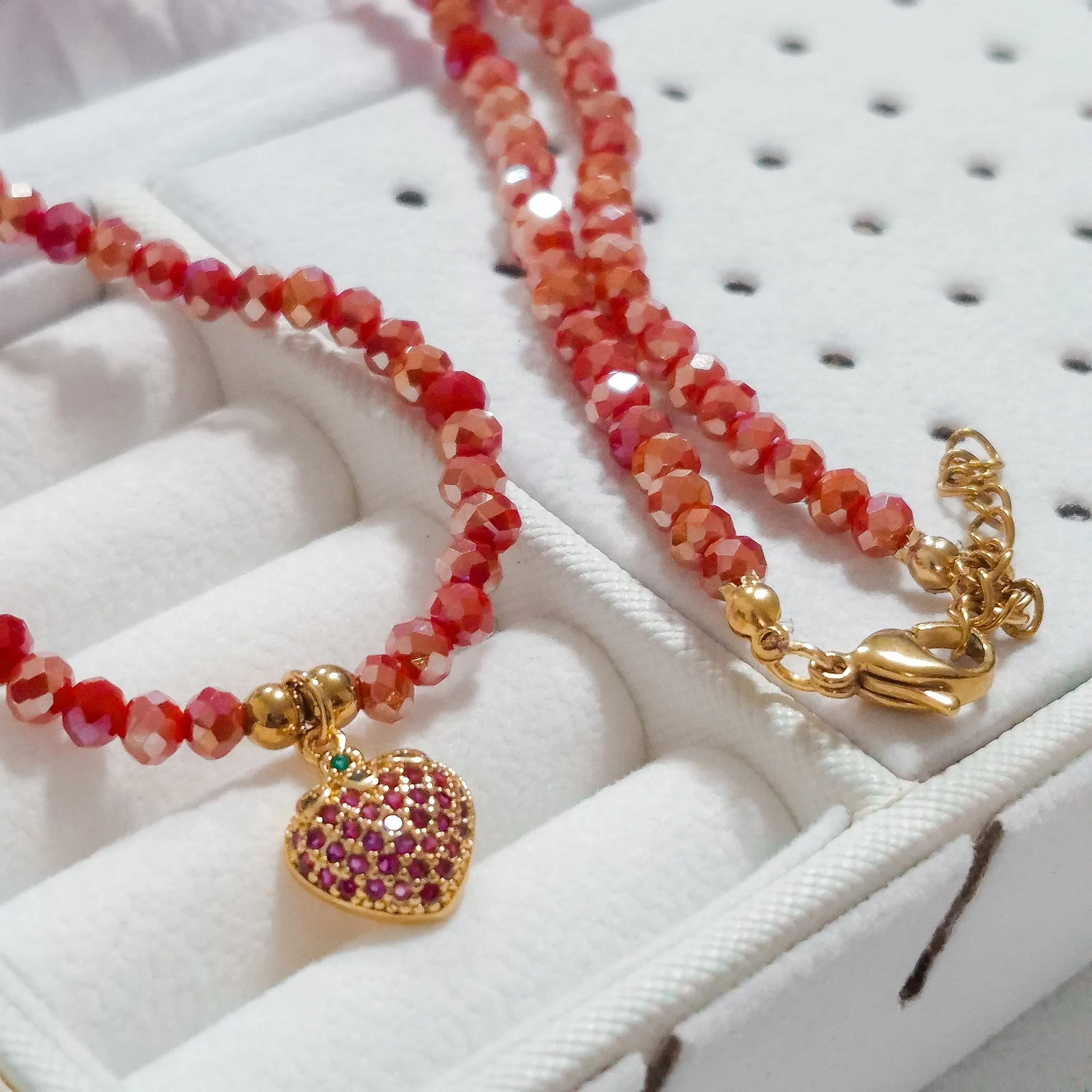 Lindo Collar elaborado en acero quirúrgico inoxidable 304, cristal murano tornasolado, dije en fresa full circon, lindo modelo.