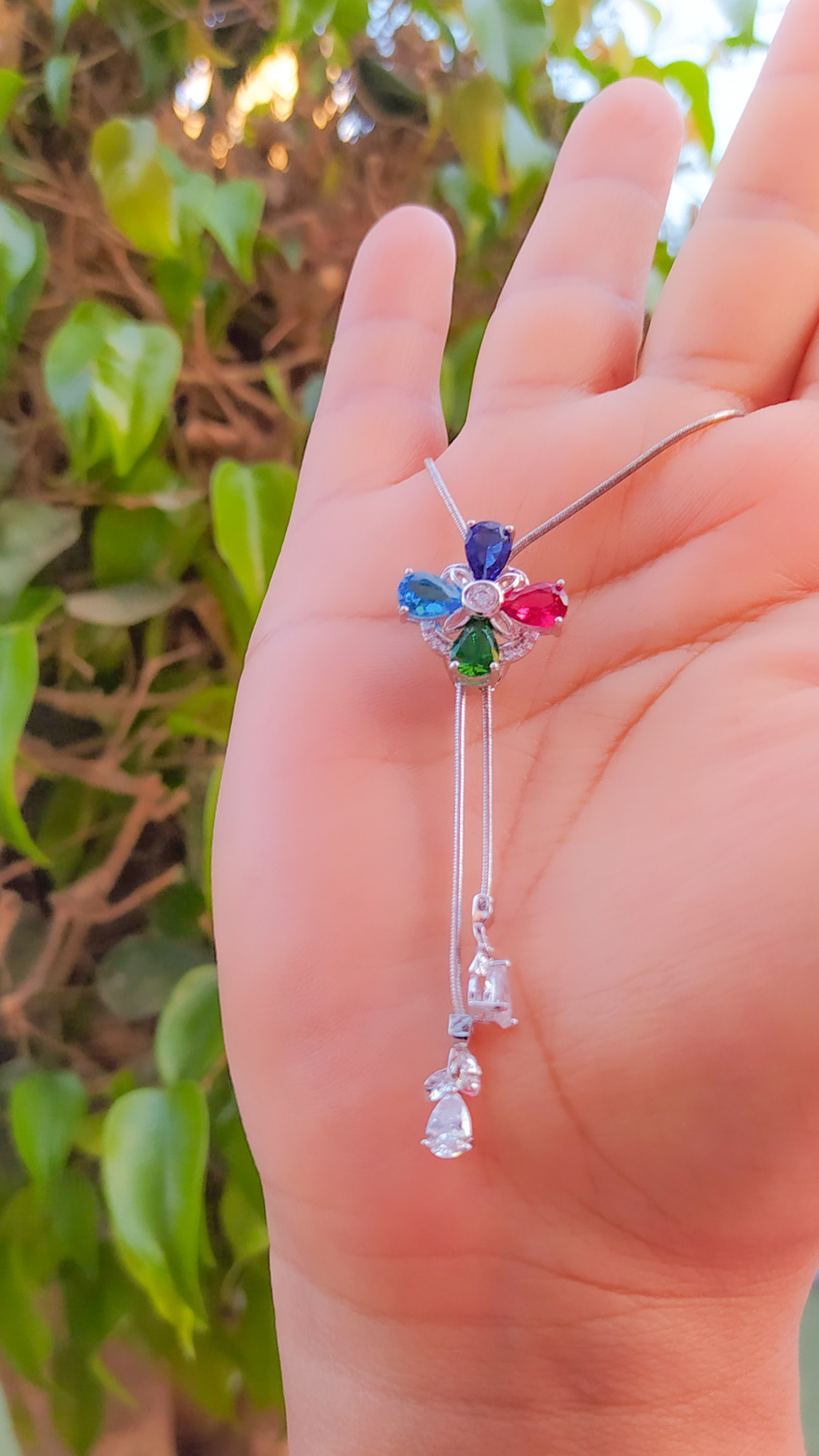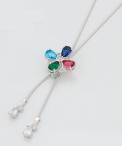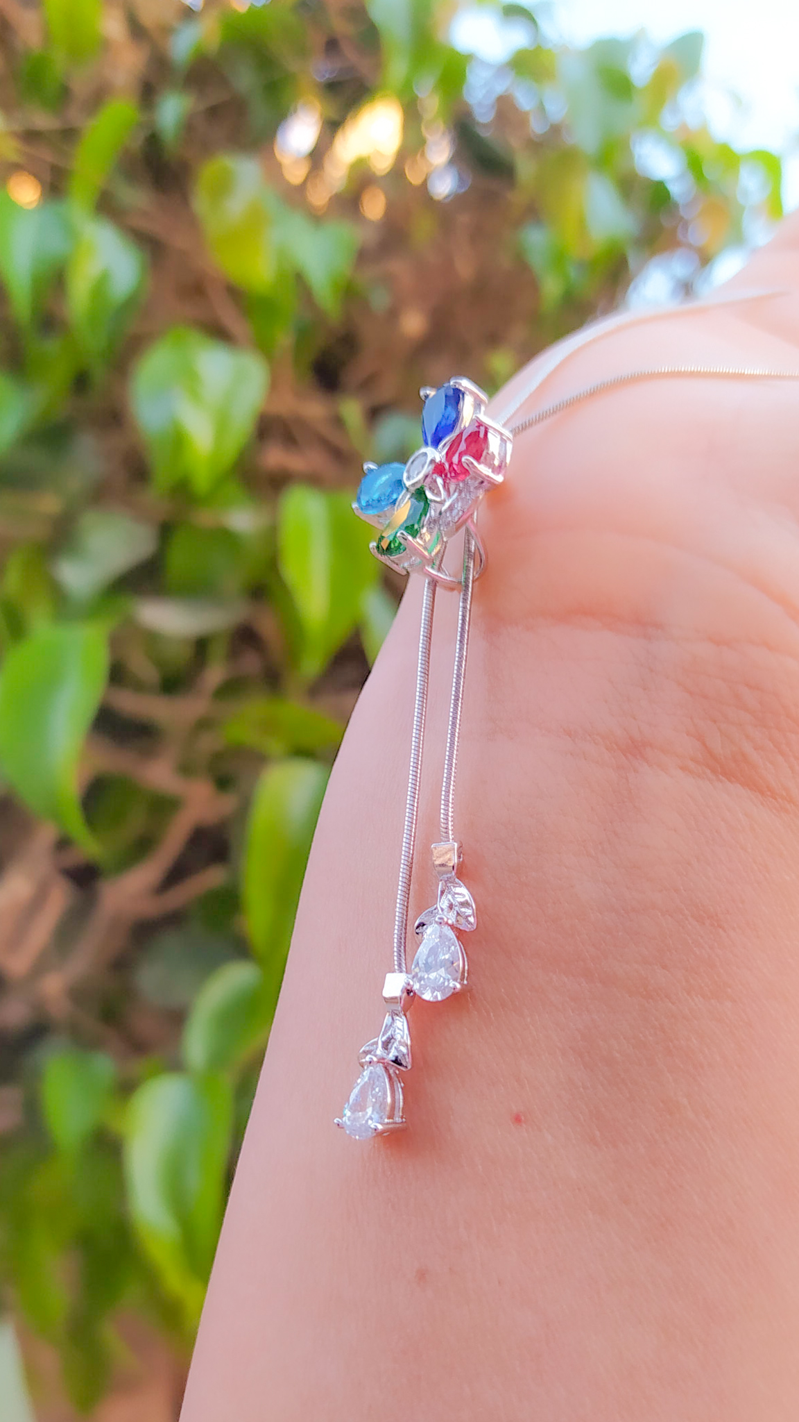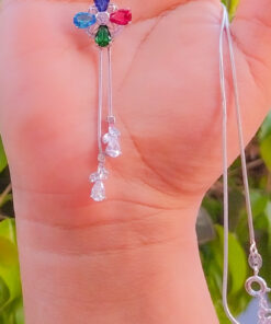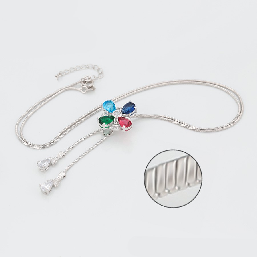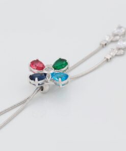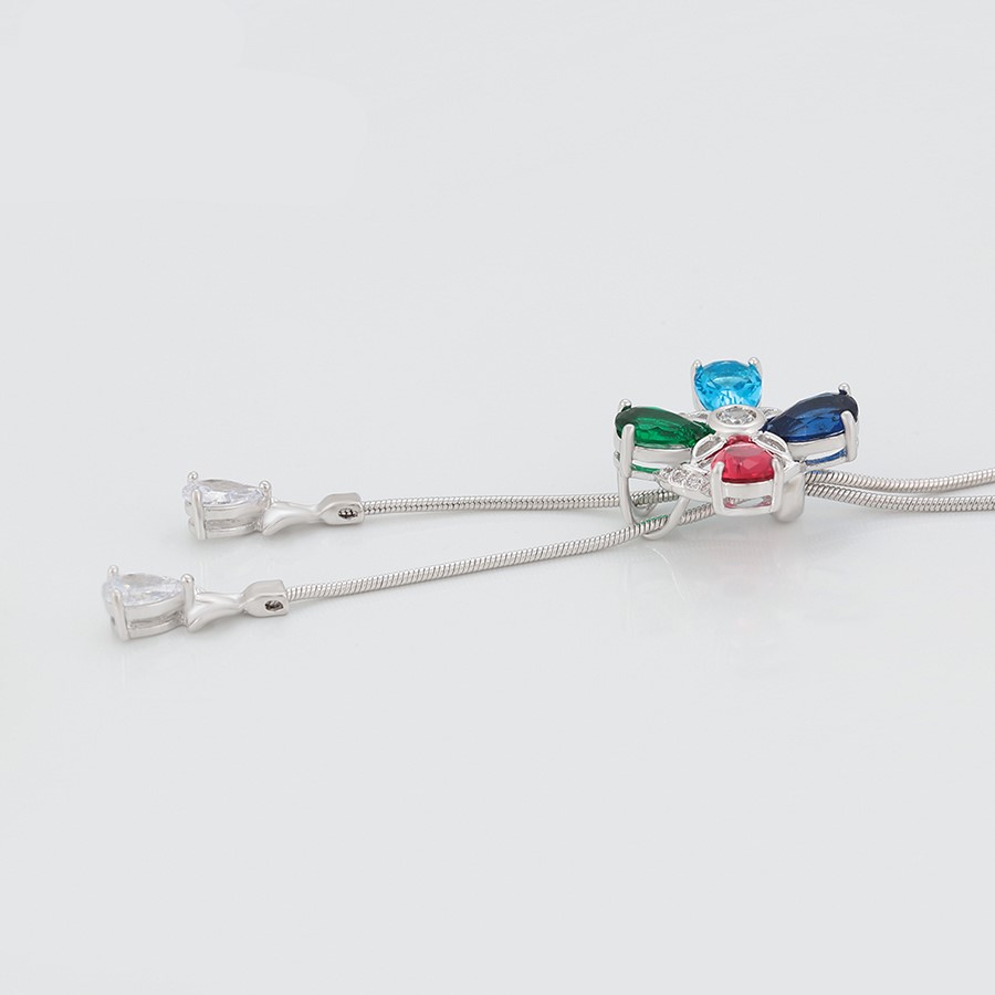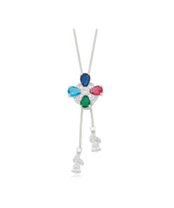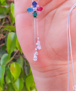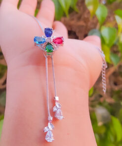 Bellísimo collar regulable, elaborado en auténtico acero 316L y doble baño en plata de ley de 925, e incrustación de cristales swarovski, cadena cordón con cadena de extensión.