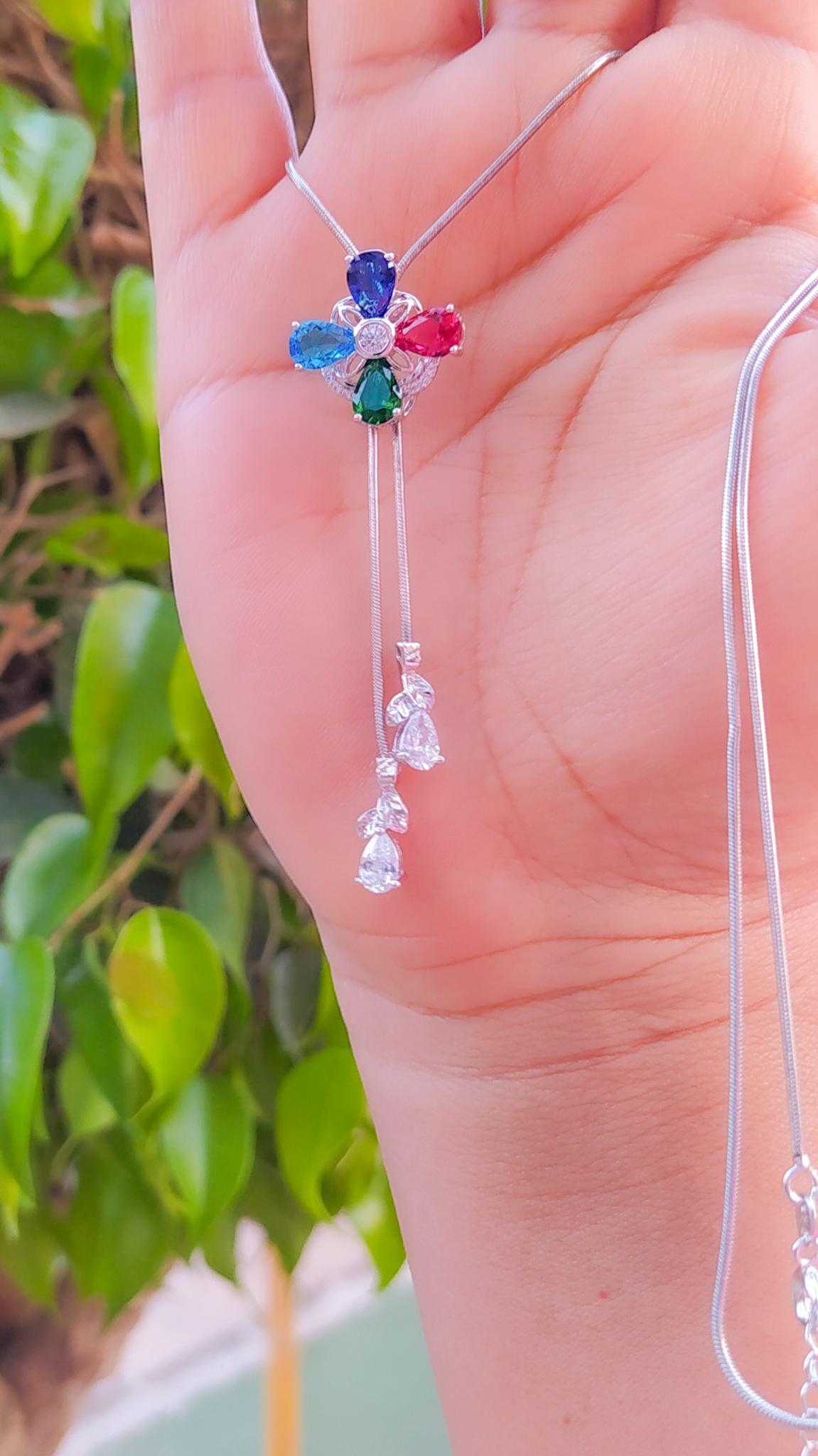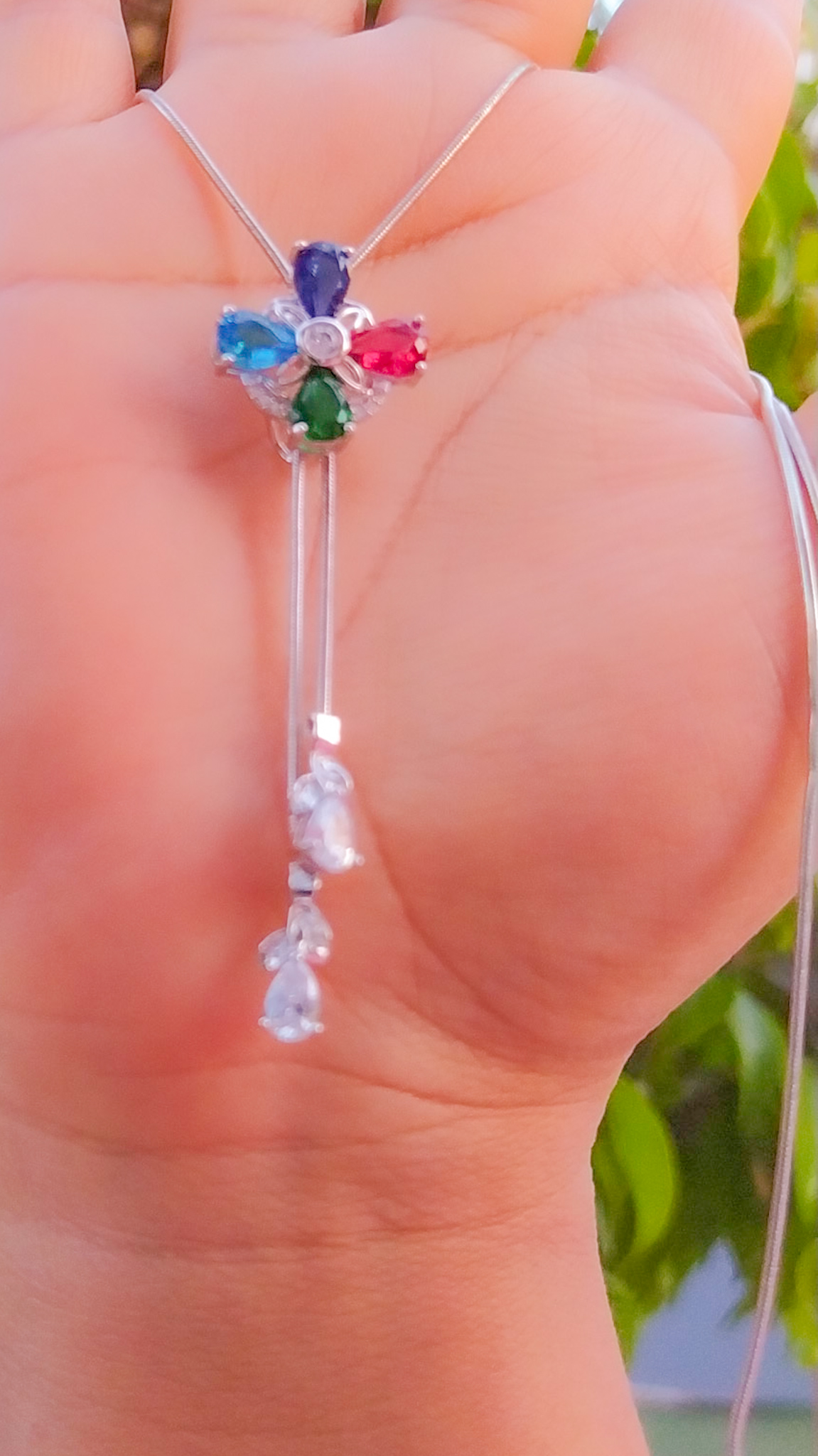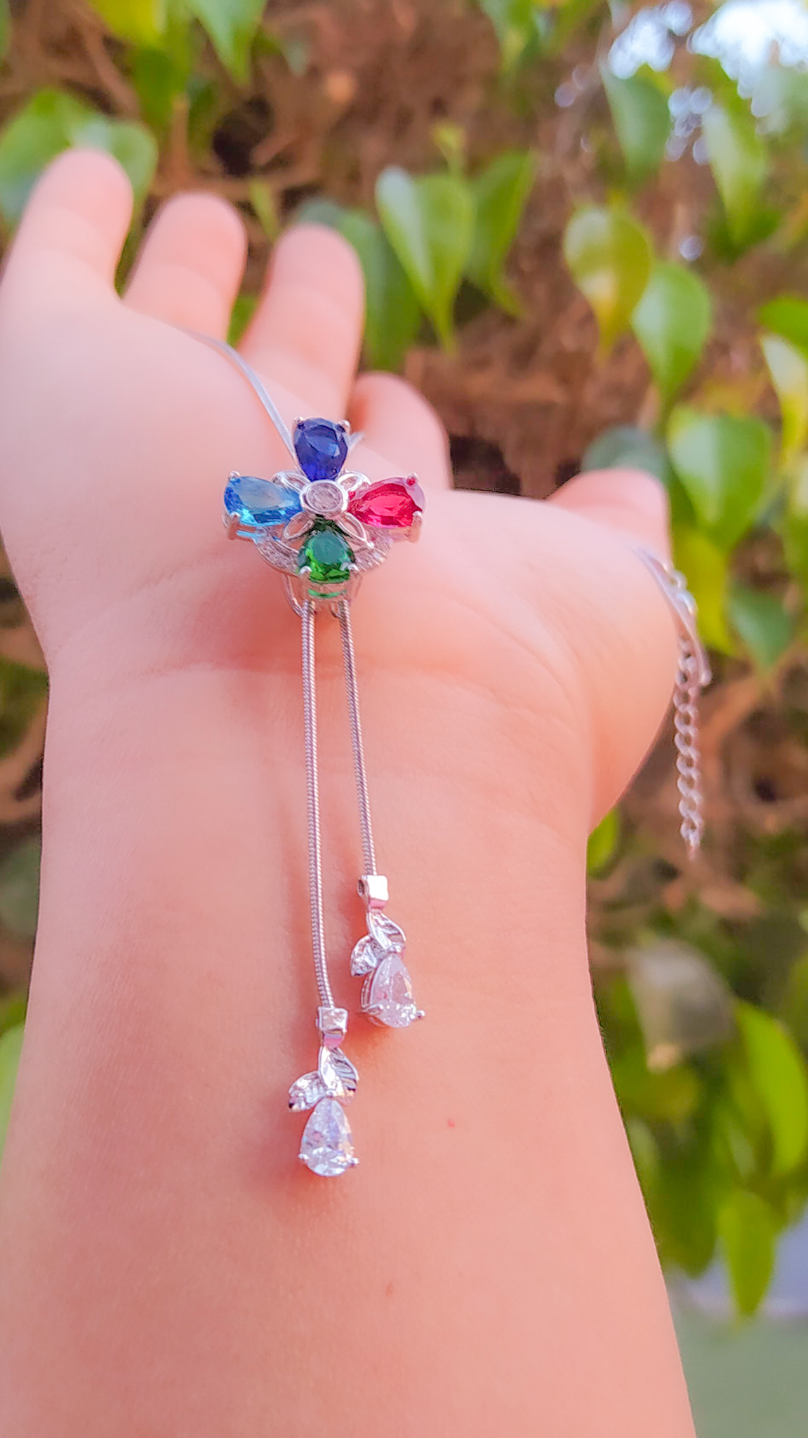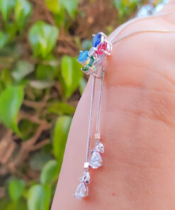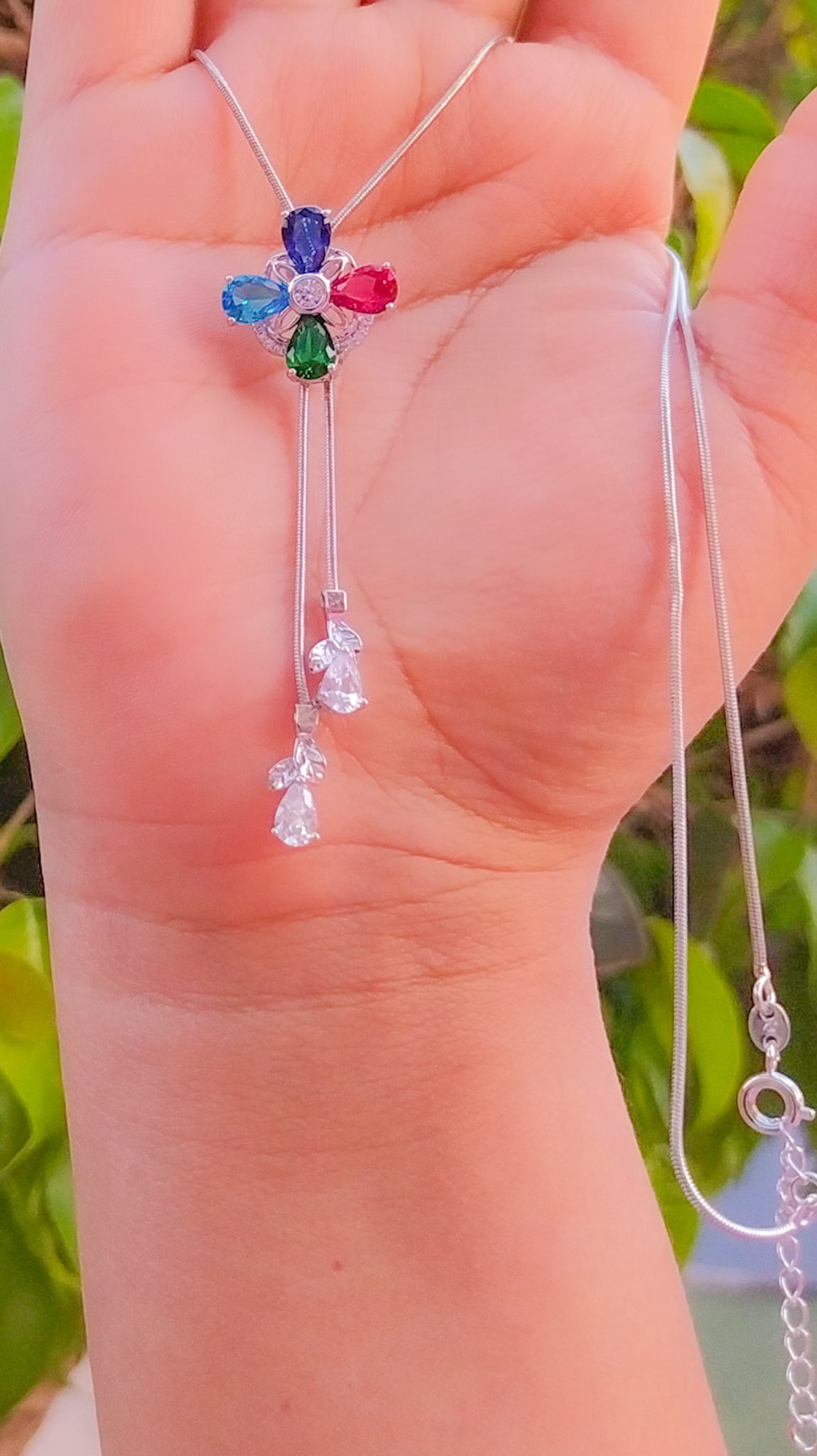 Bellísimo collar regulable, elaborado en auténtico acero 316L y doble baño en plata de ley de 925, e incrustación de cristales swarovski, cadena cordón con cadena de extensión.