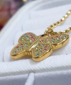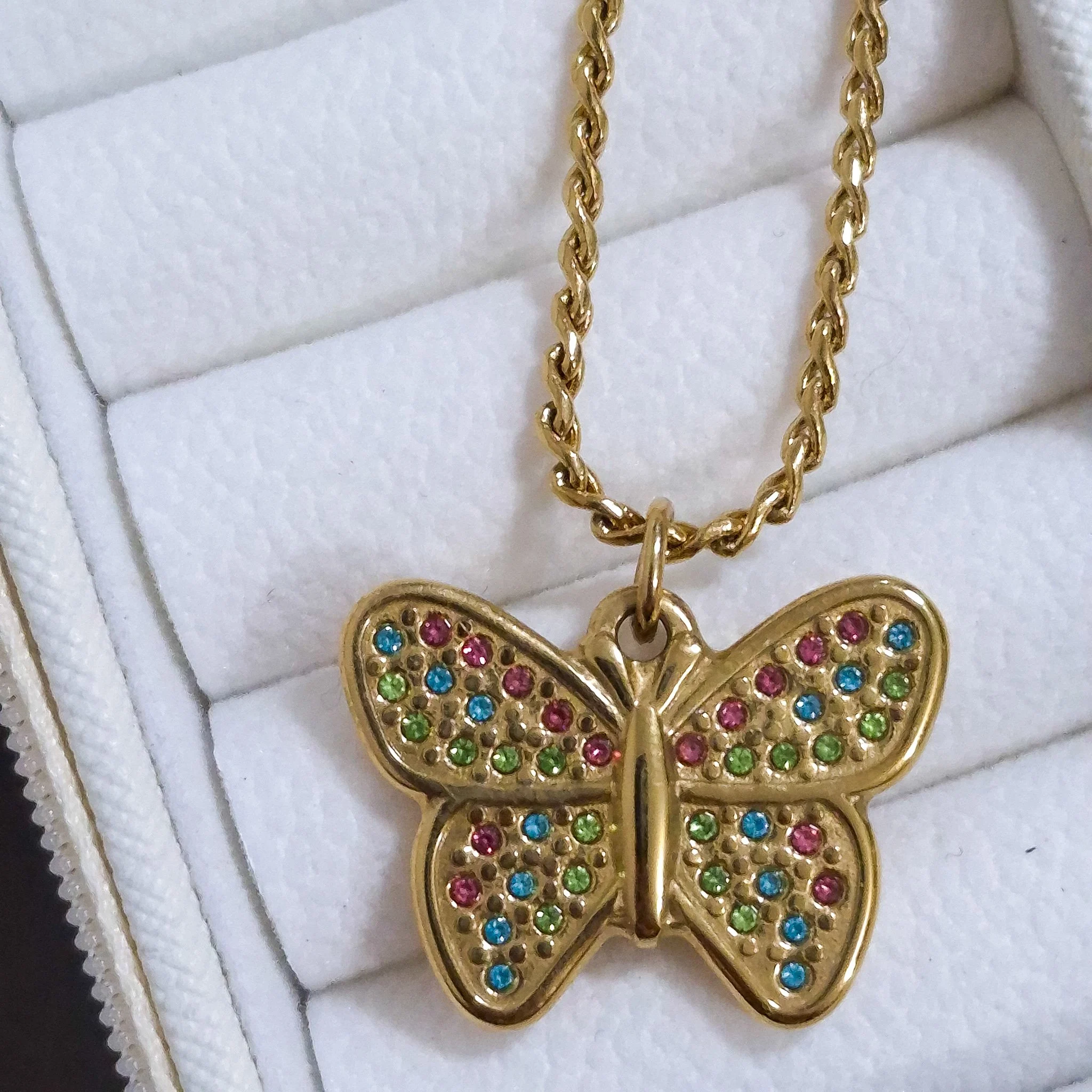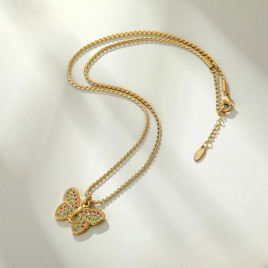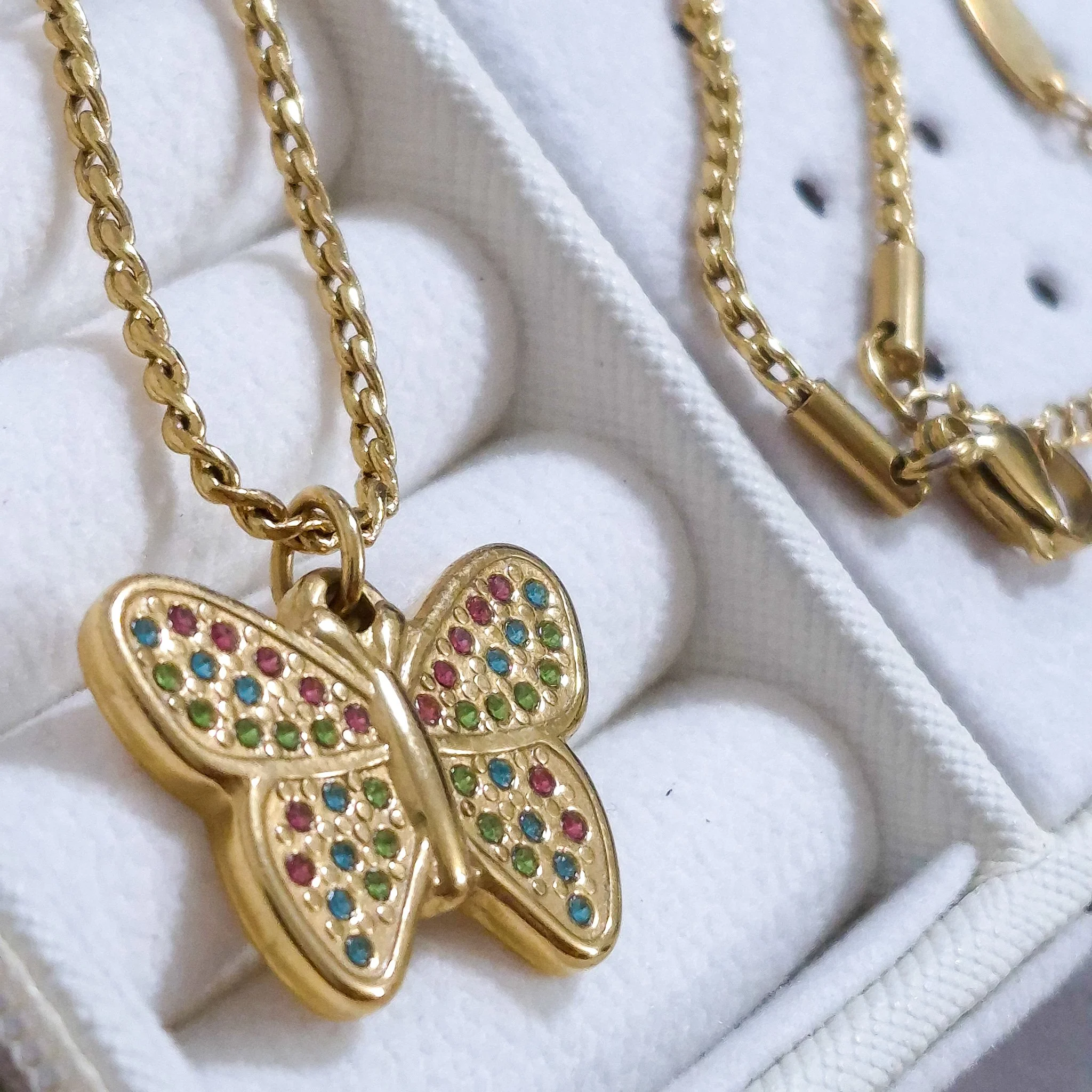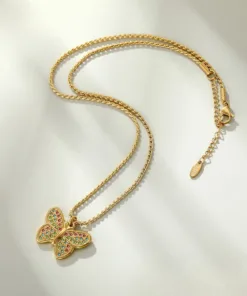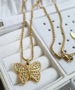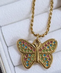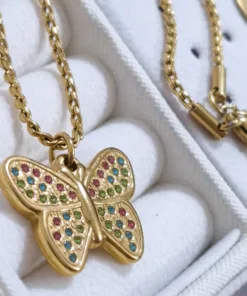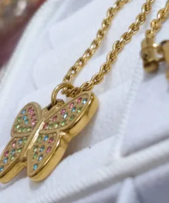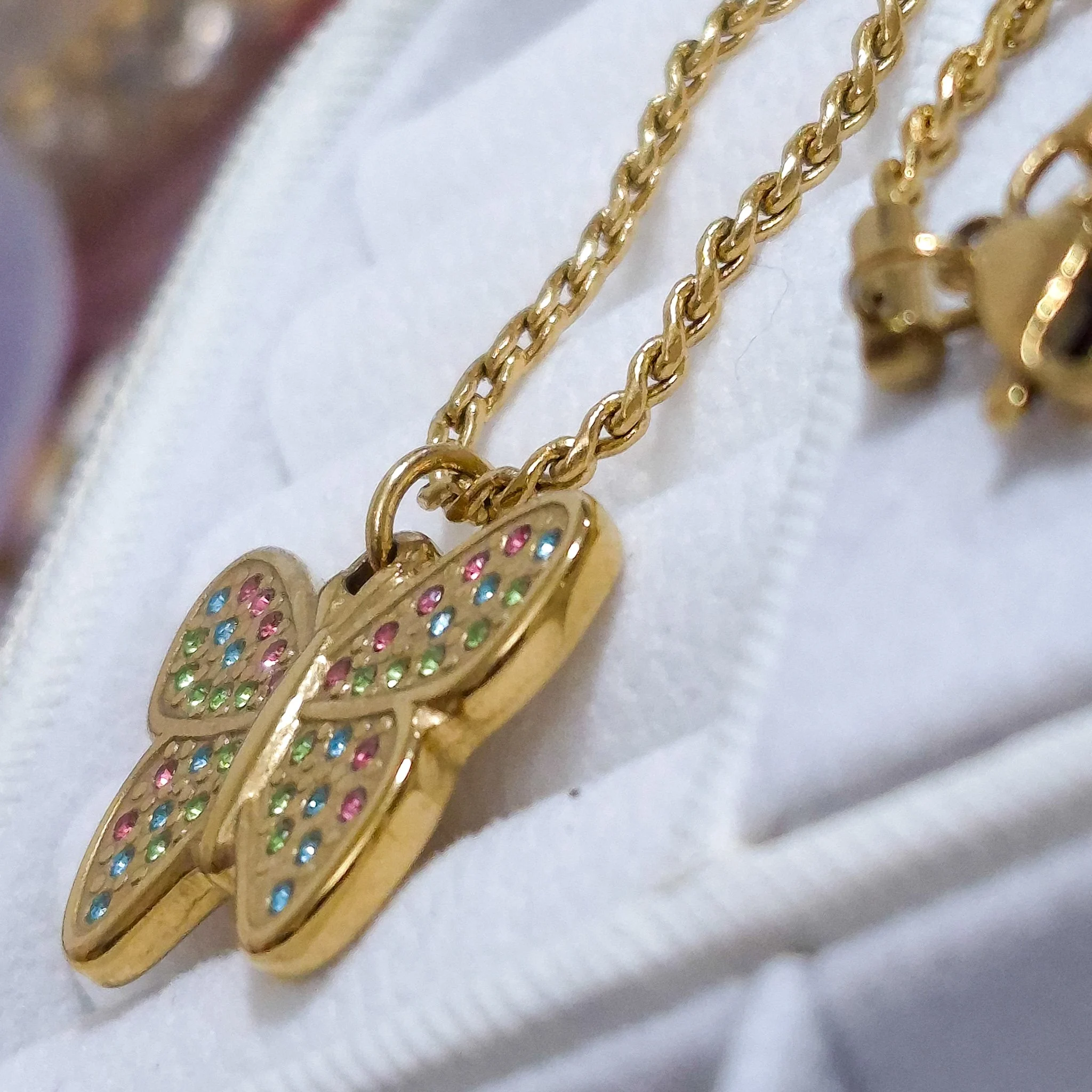 Hermoso collar entorchado elaborado en acero quirúrgico 316l con baño de oro de 18k, dije con incrustación de cristal.