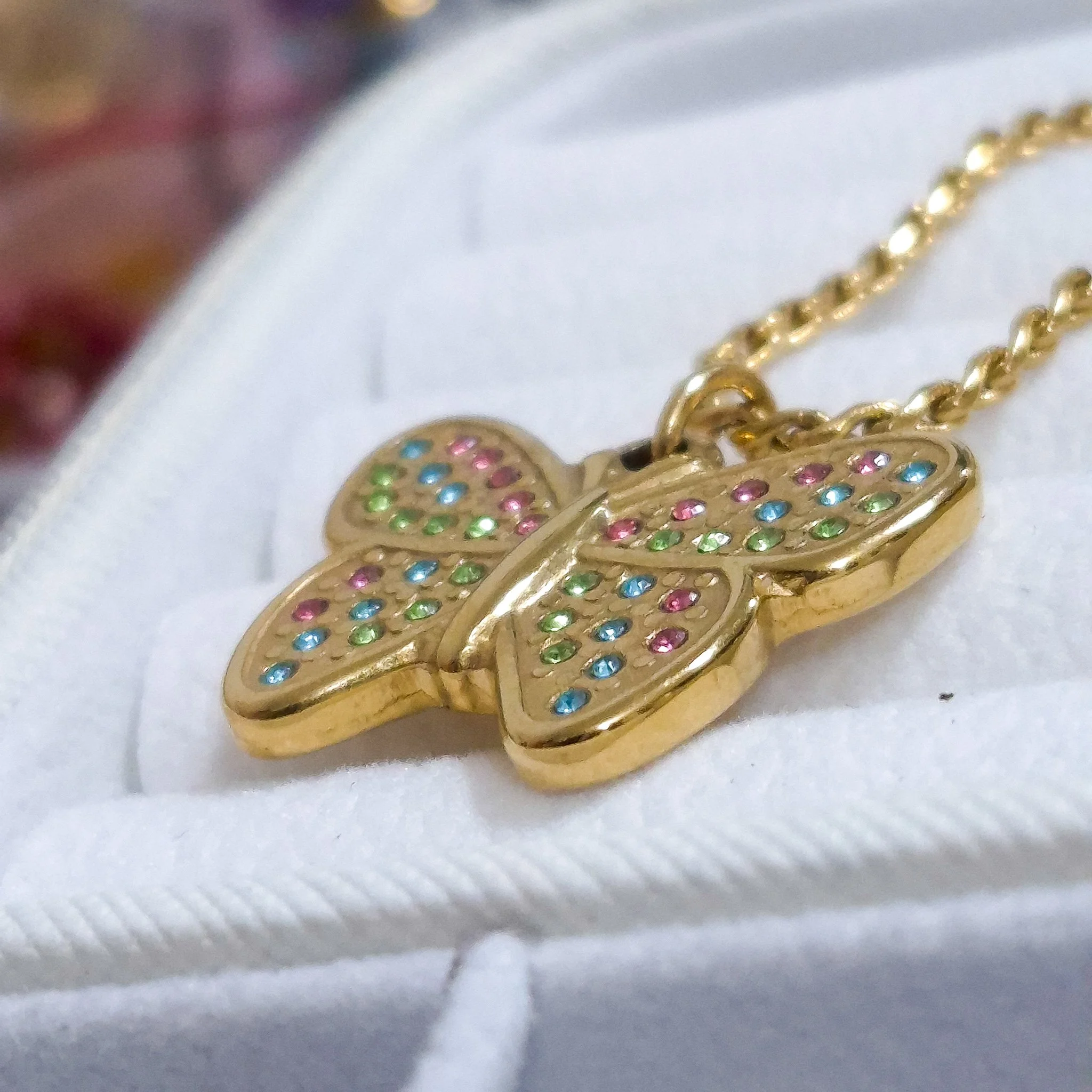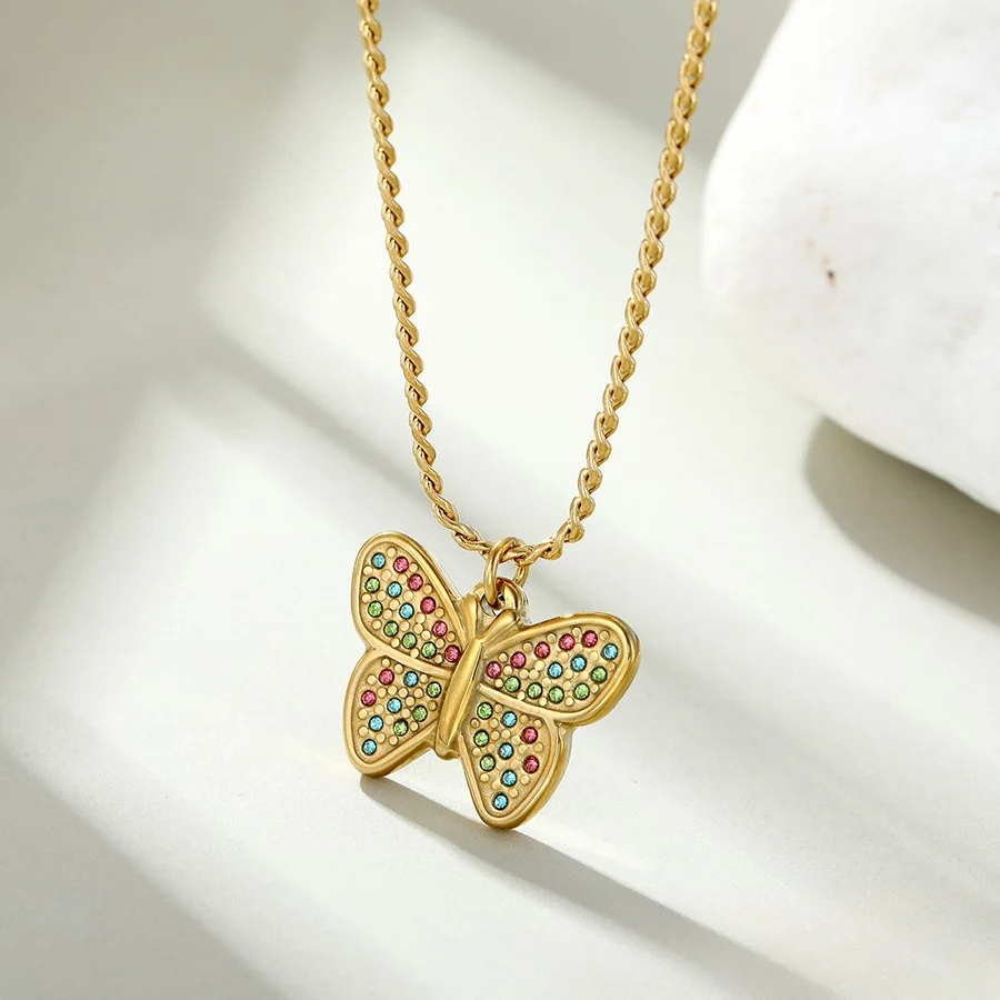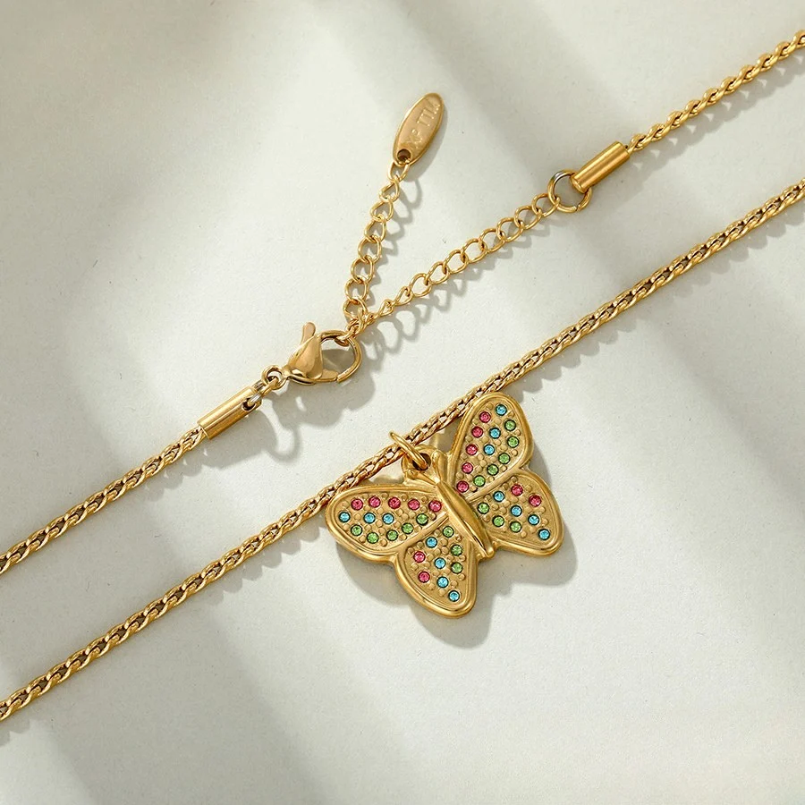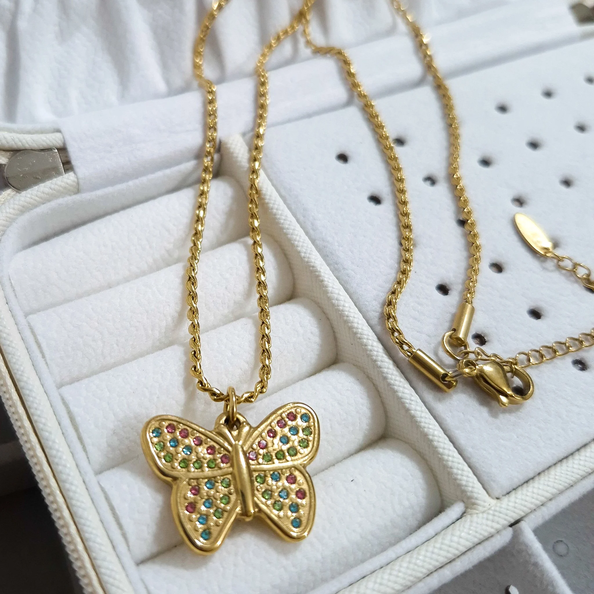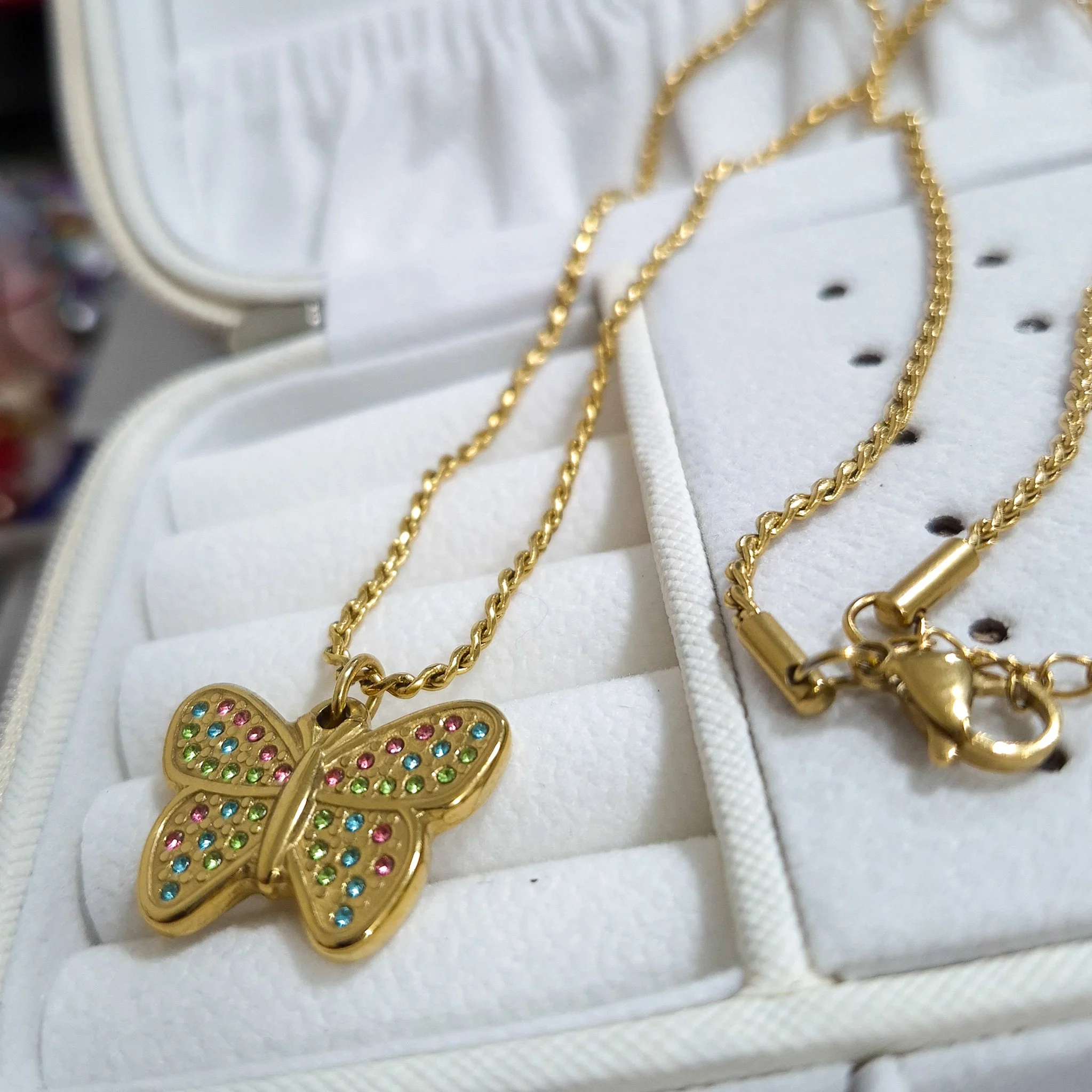 Hermoso collar entorchado elaborado en acero quirúrgico 316l con baño de oro de 18k, dije con incrustación de cristal.