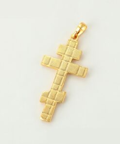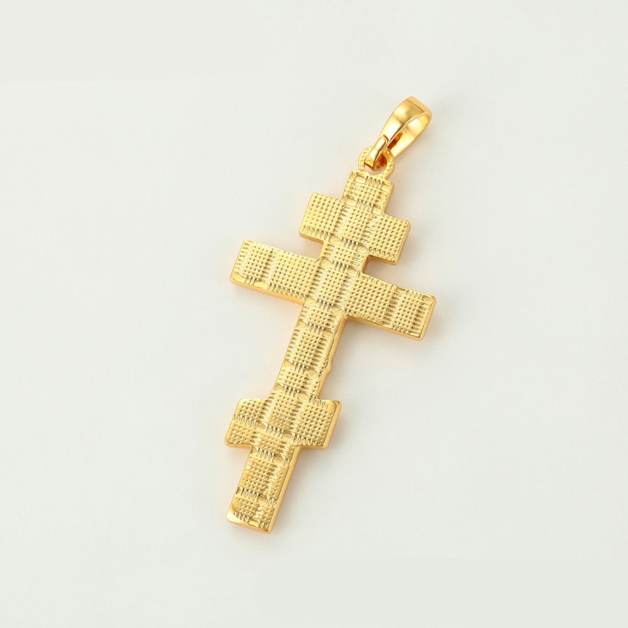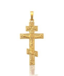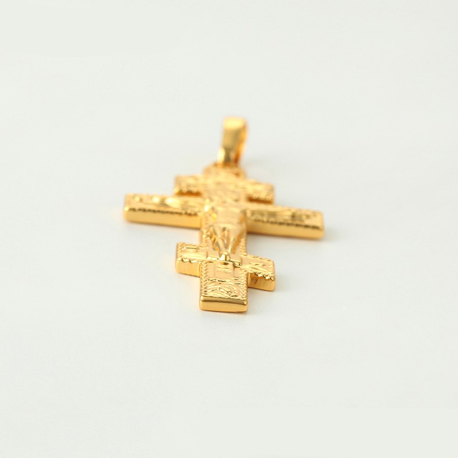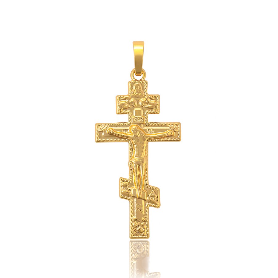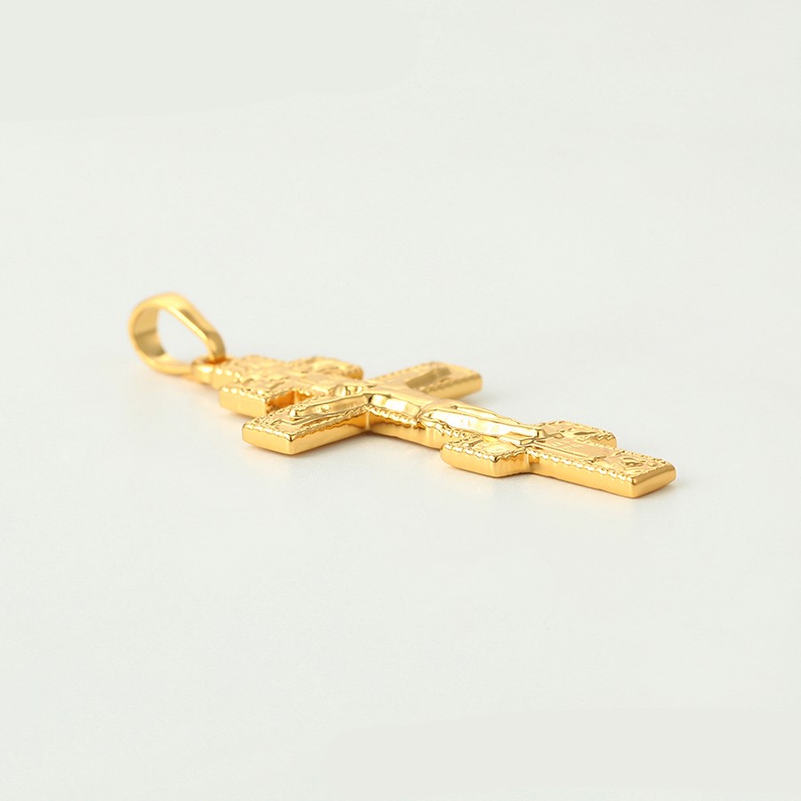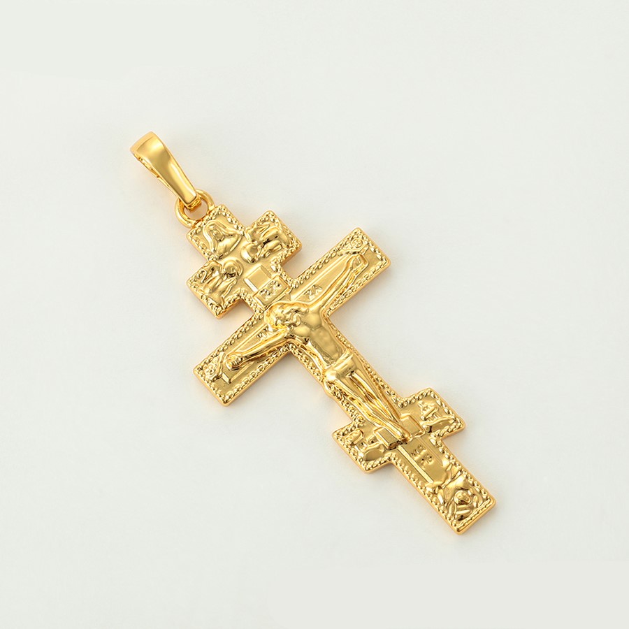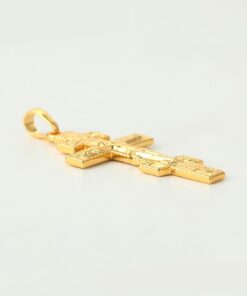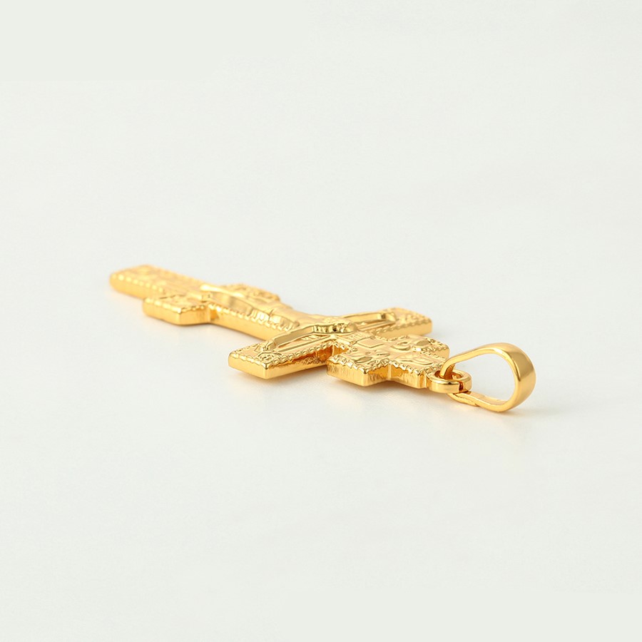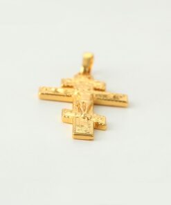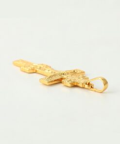 Bellísimo collar elaborado en acero, con doble enchape de oro dorado de 18k, tallado y con dije crucifijo, exclusivo modelo.