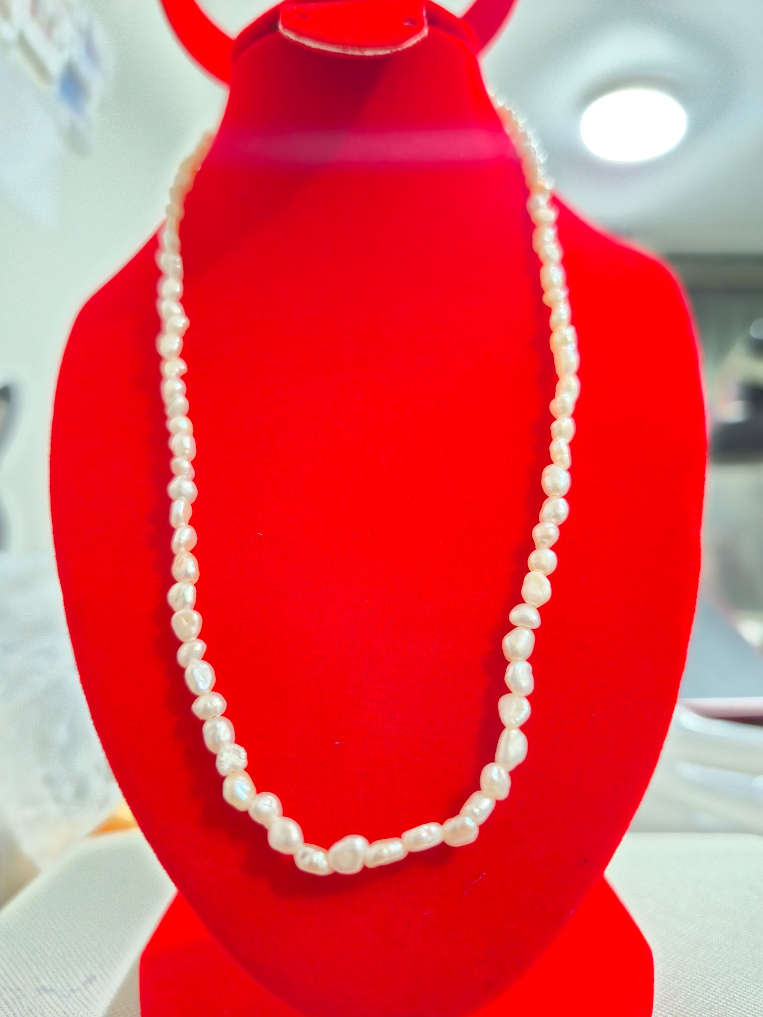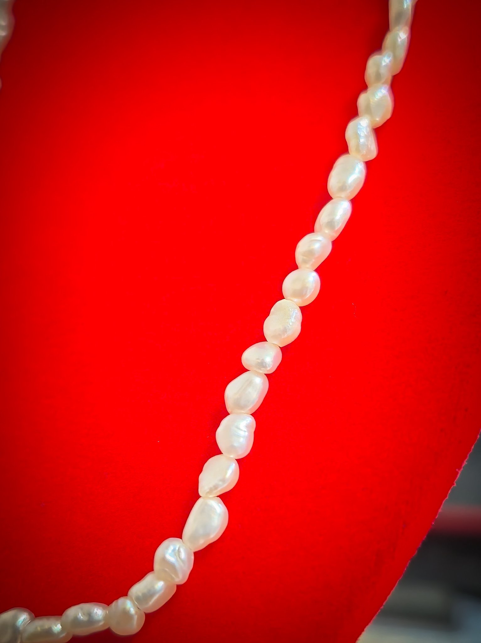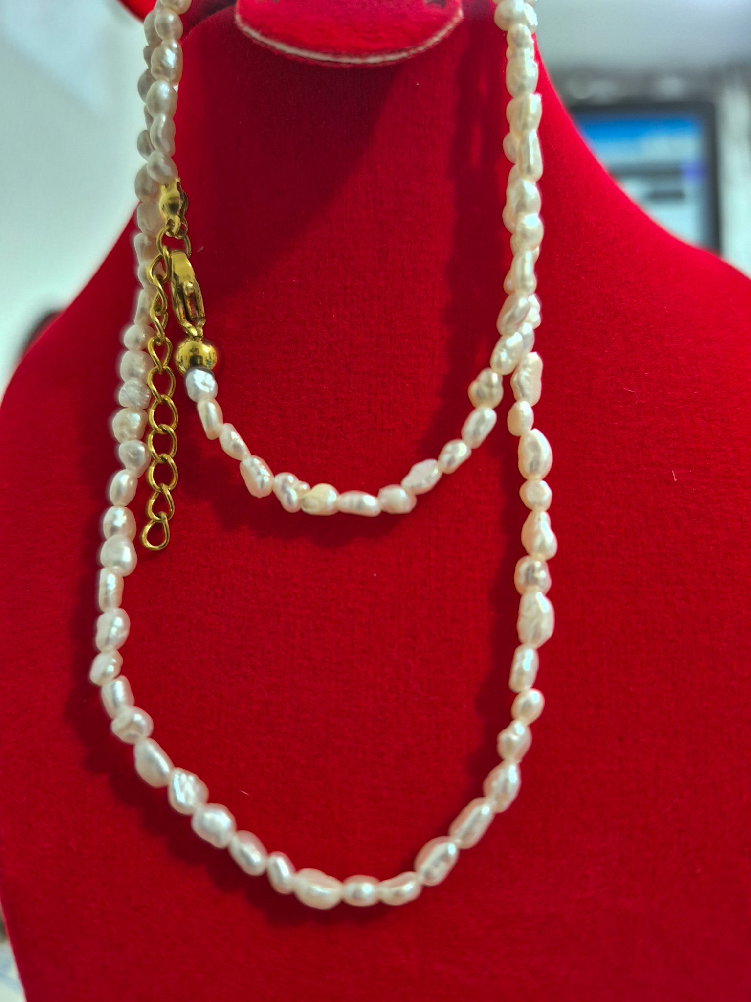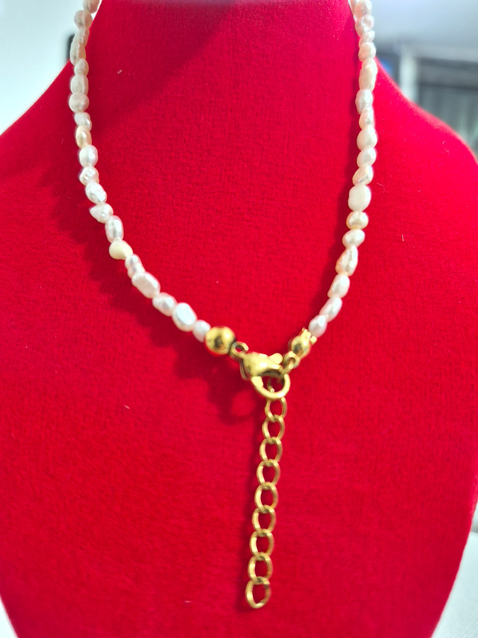 Hermoso collar elaborado a mano con accesorios de acero quirúrgico 316l, y perlas de río original cultivadas.