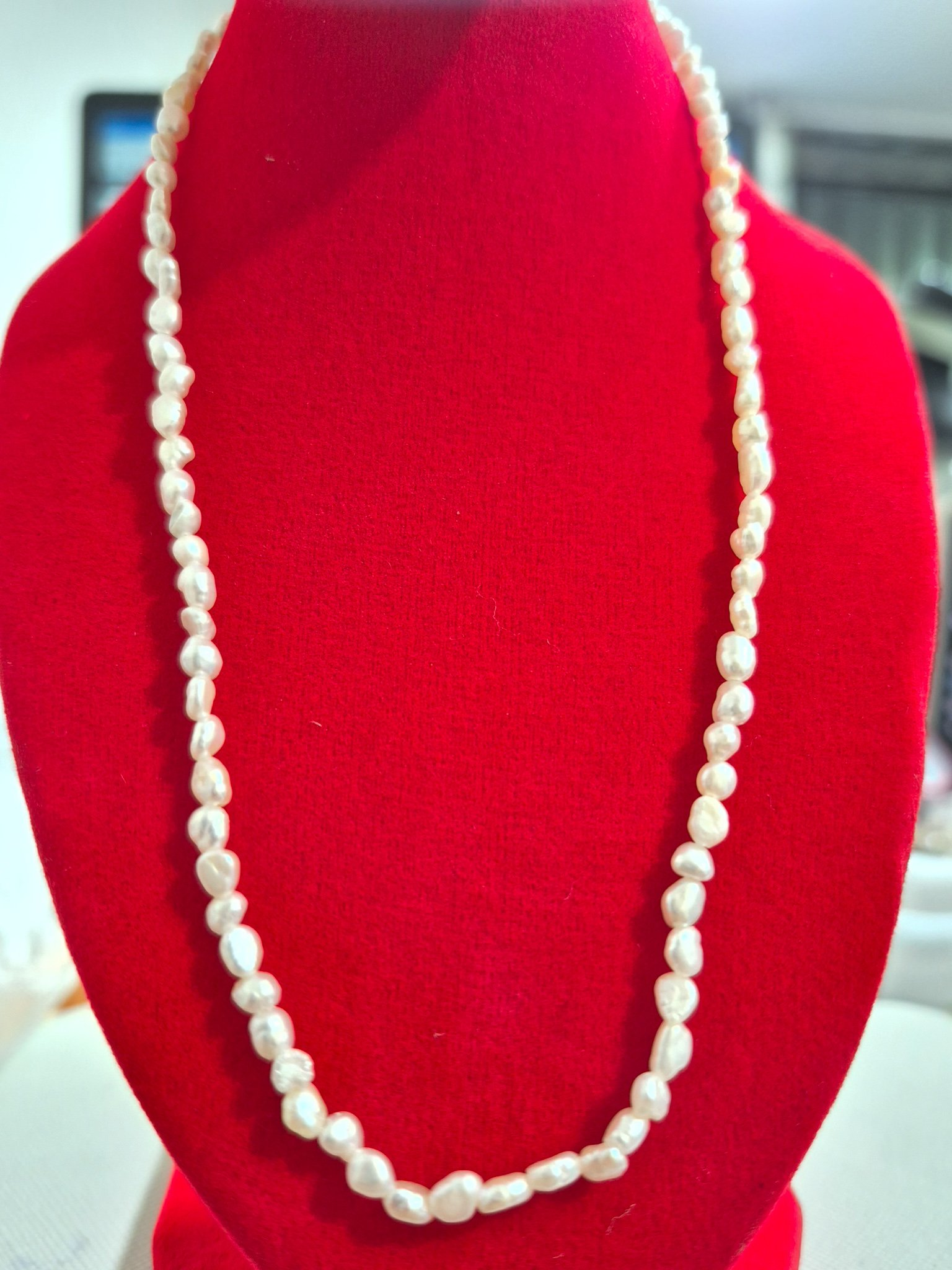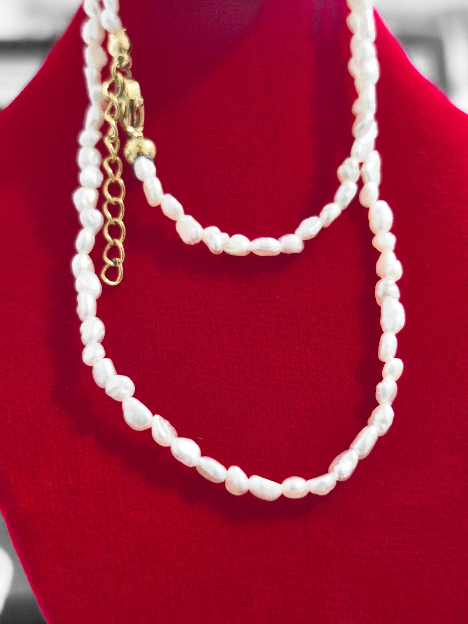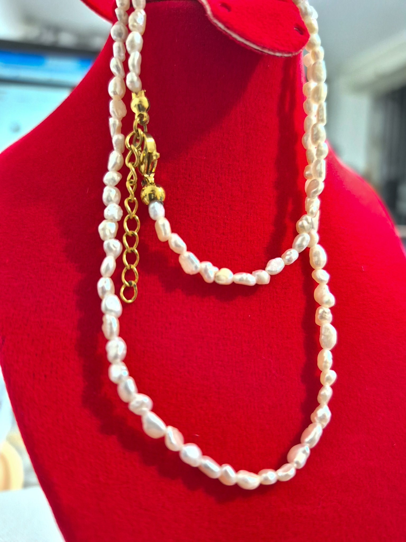 Hermoso collar elaborado a mano con accesorios de acero quirúrgico 316l, y perlas de río original cultivadas.