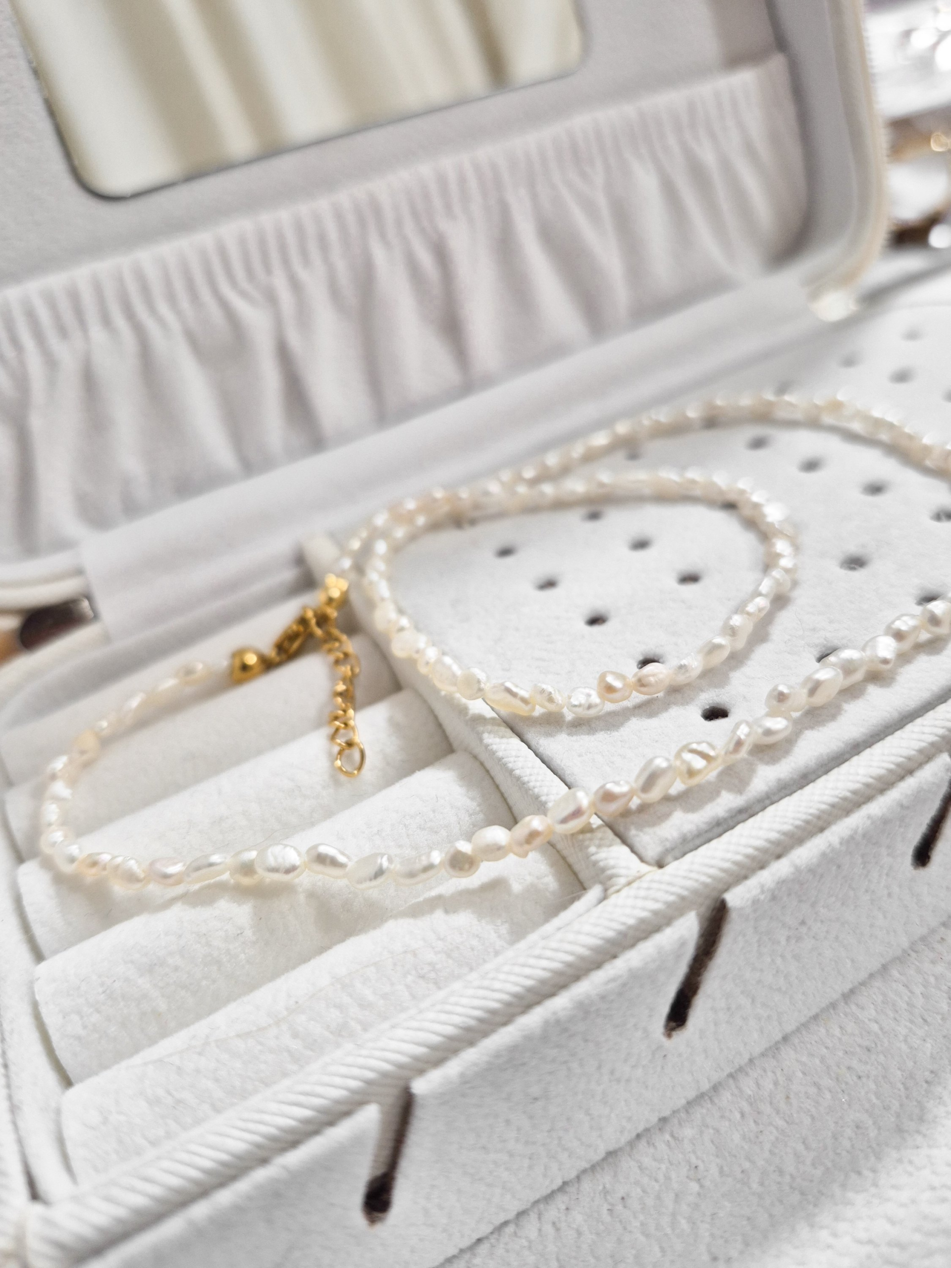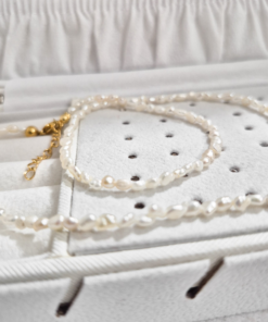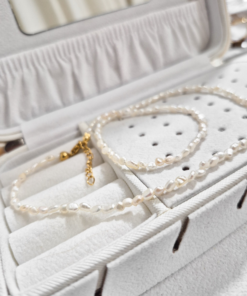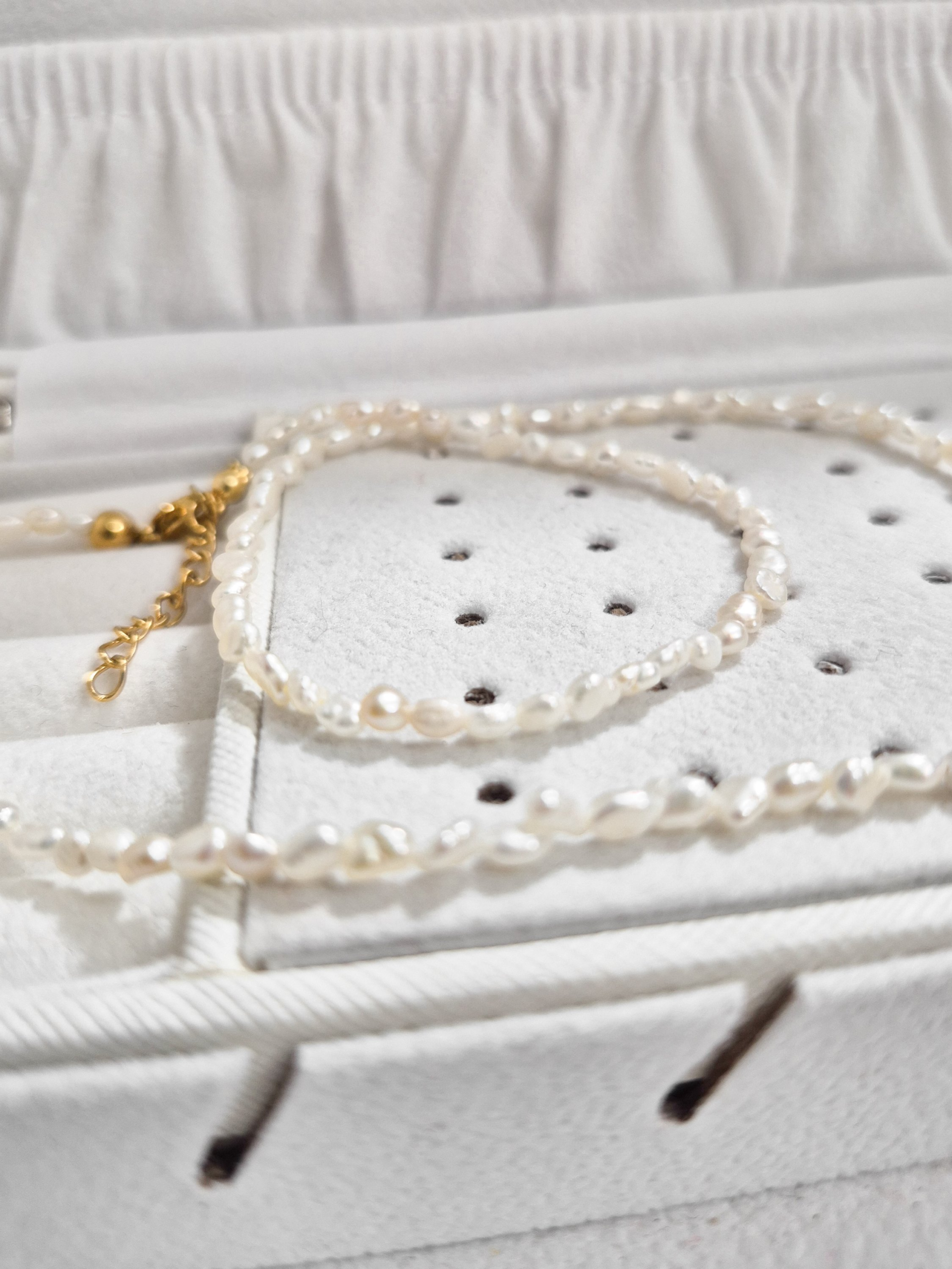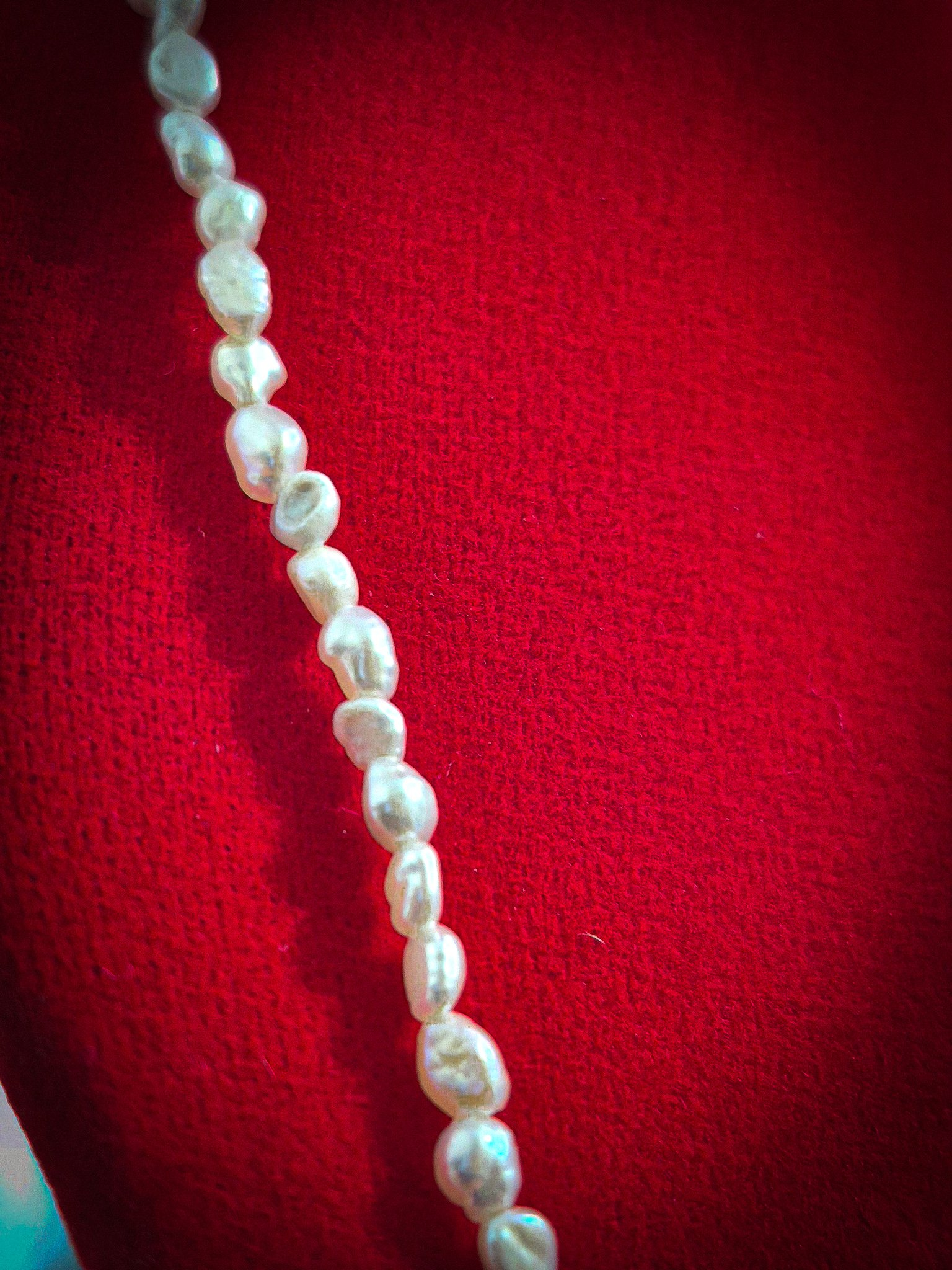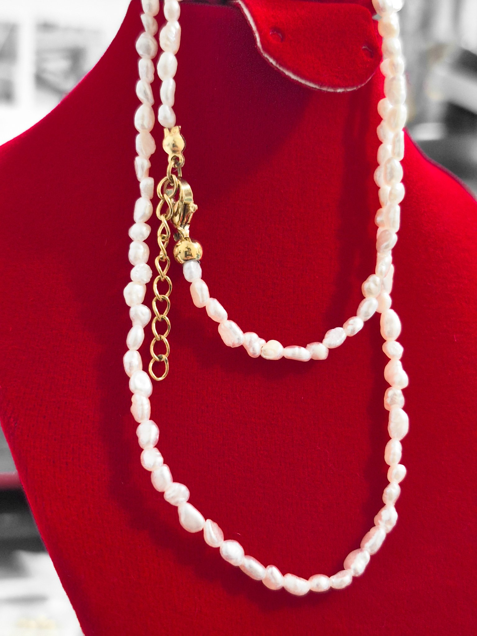 Hermoso collar elaborado a mano con accesorios de acero quirúrgico 316l, y perlas de río original cultivadas.