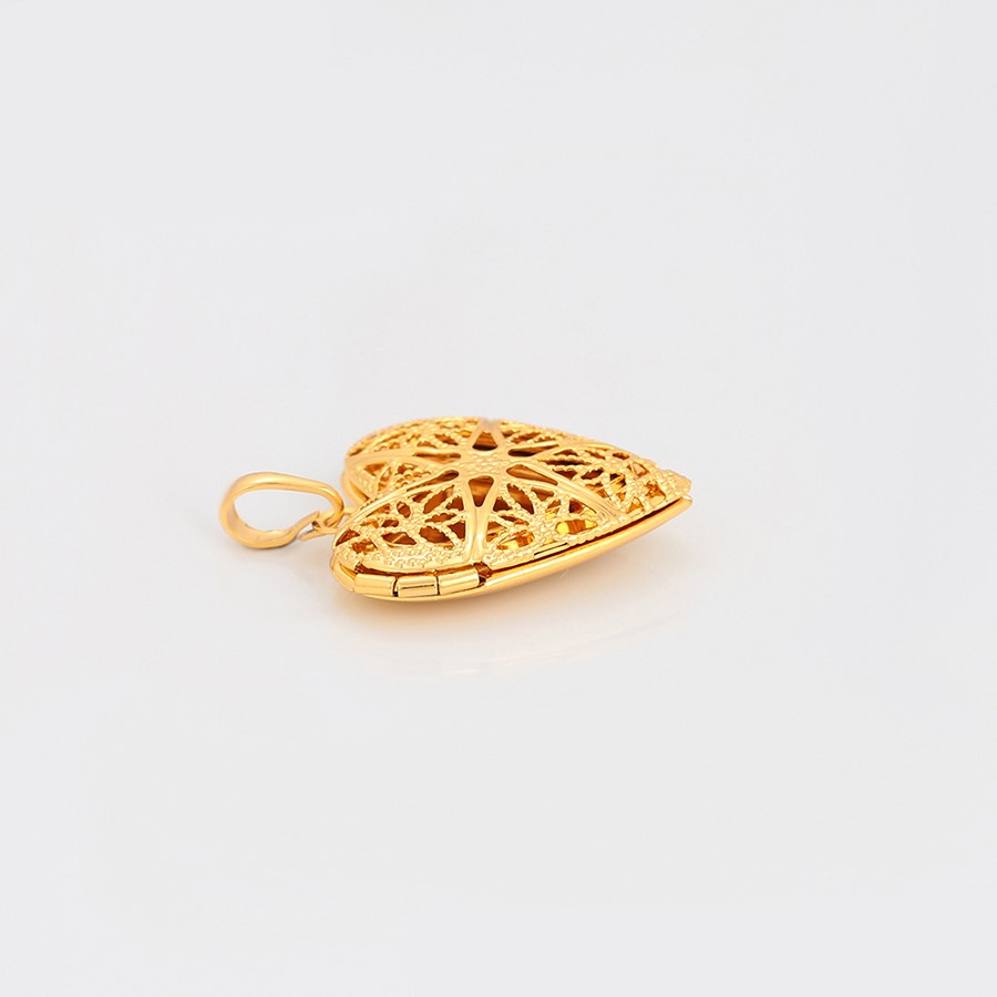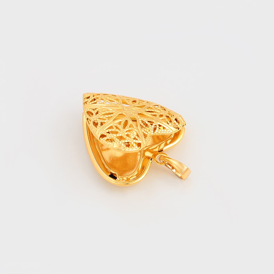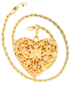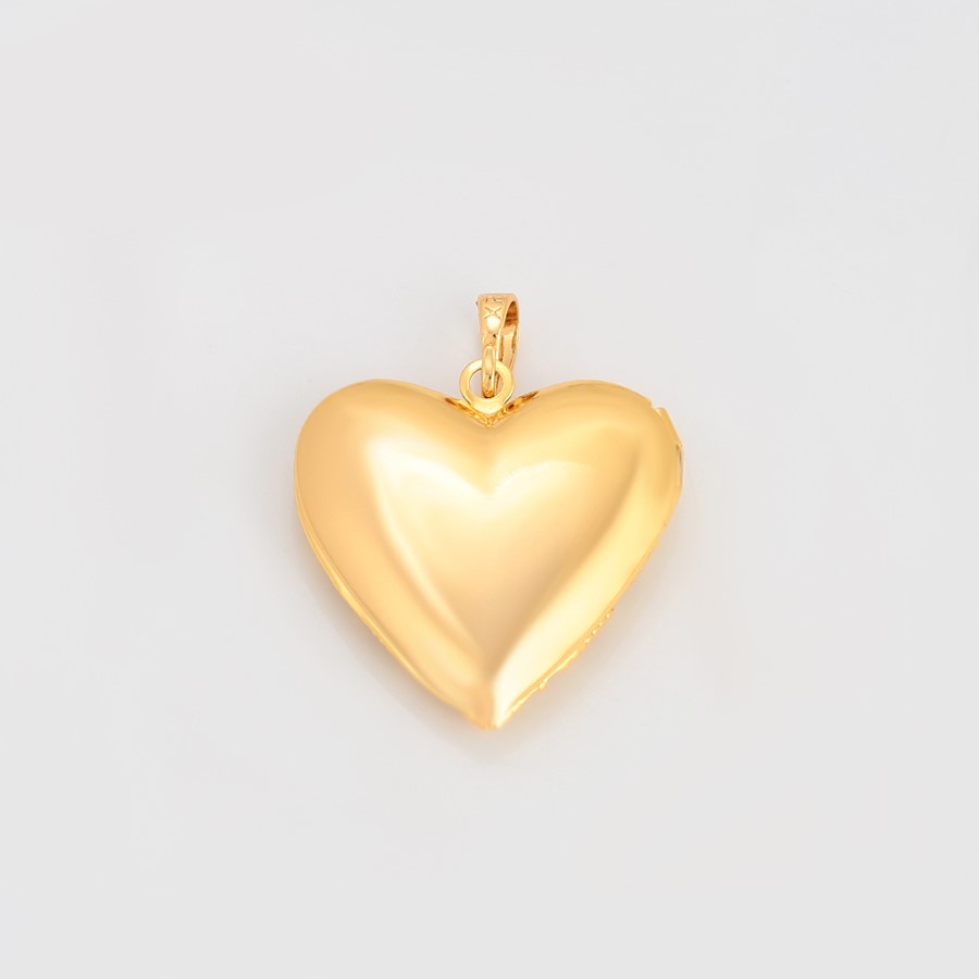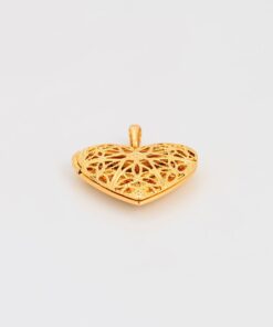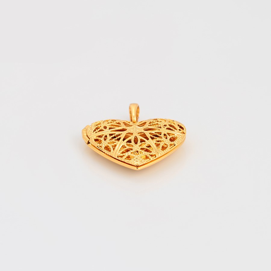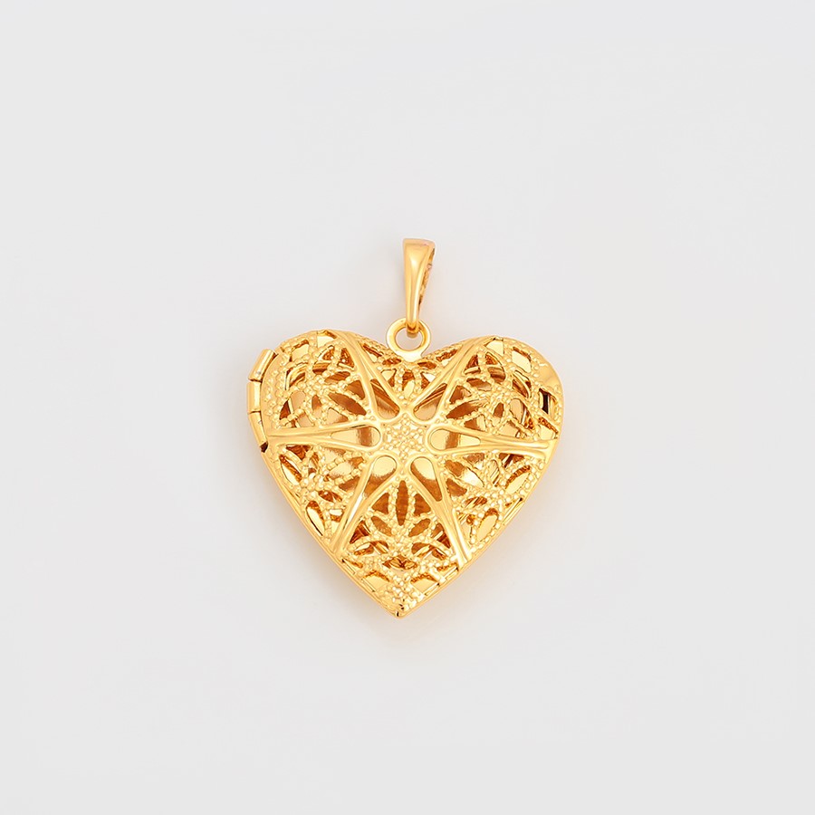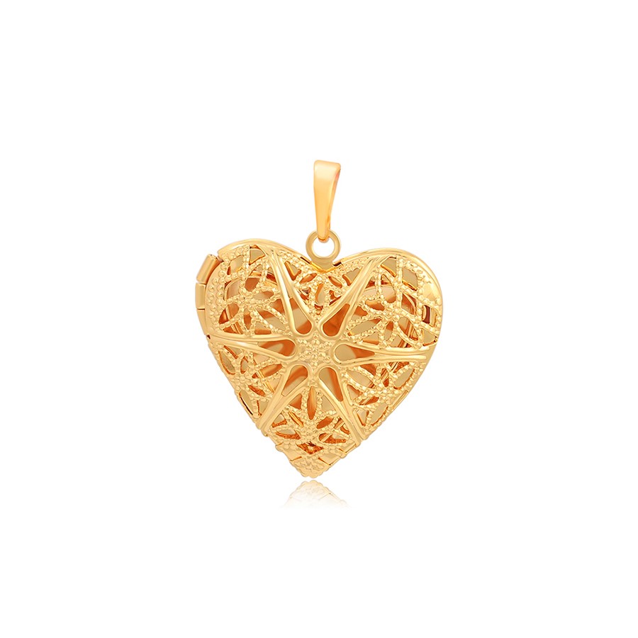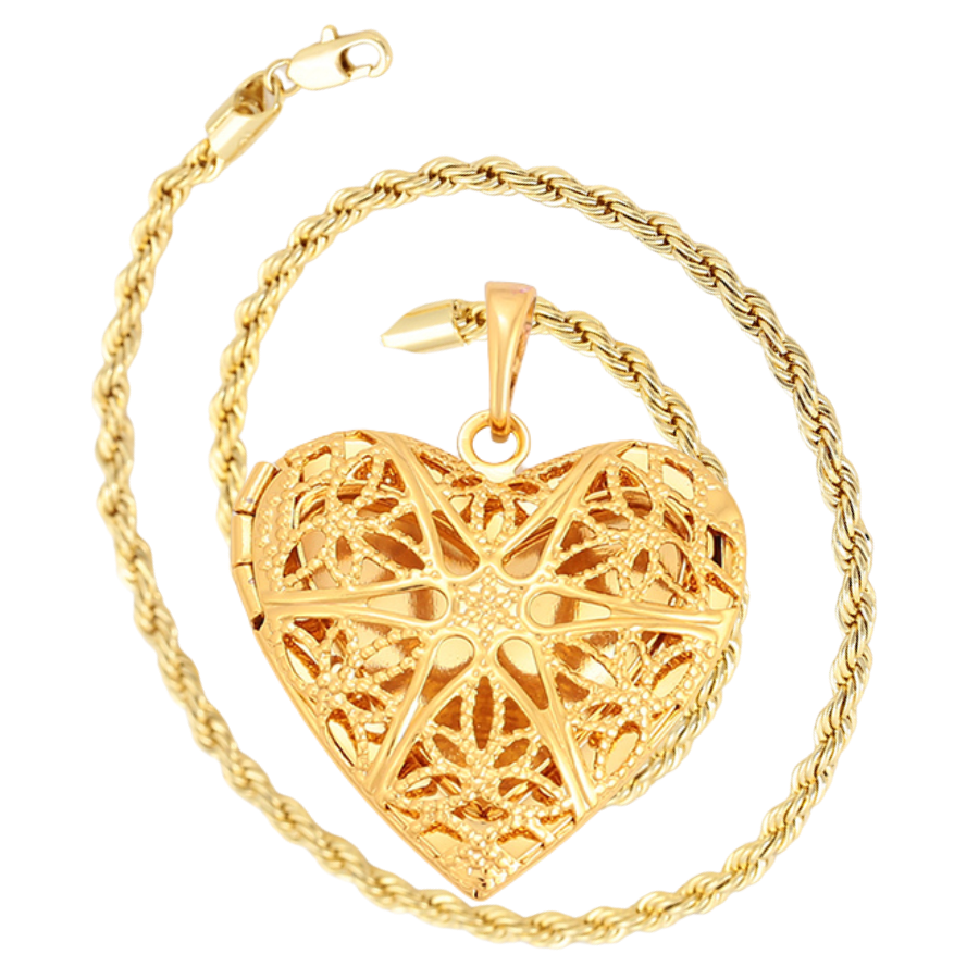 Lindo, fino y delicado collar elaborado en acero, con doble enchape de oro dorado de 18k, portafoto en forma de corazón calado y tallado.