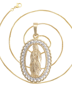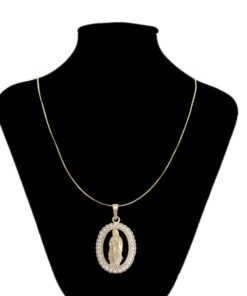 Bellísimo collar, elegante y fino elaborado en acero, con doble enchape de oro dorado de 18k, tallada, e incrustación de cristales swarovski alrededor del dije.