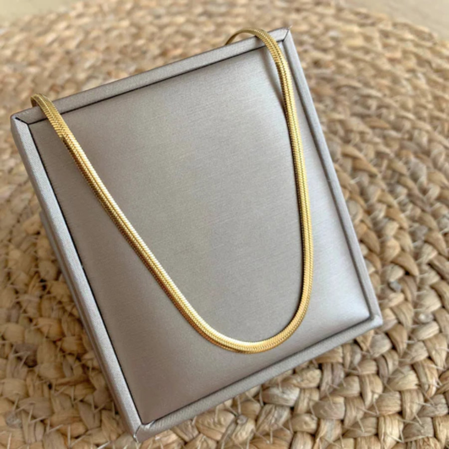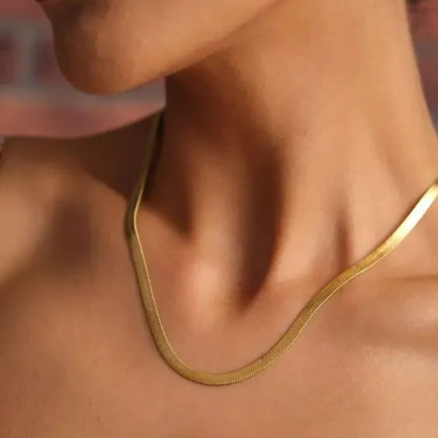 Luce elegante y moderna con este collar tipo Cleopatra hecho de acero quirúrgico dorado. Perfecto para cualquier ocasión, hipoalergénico, resistente al agua y al desgaste.