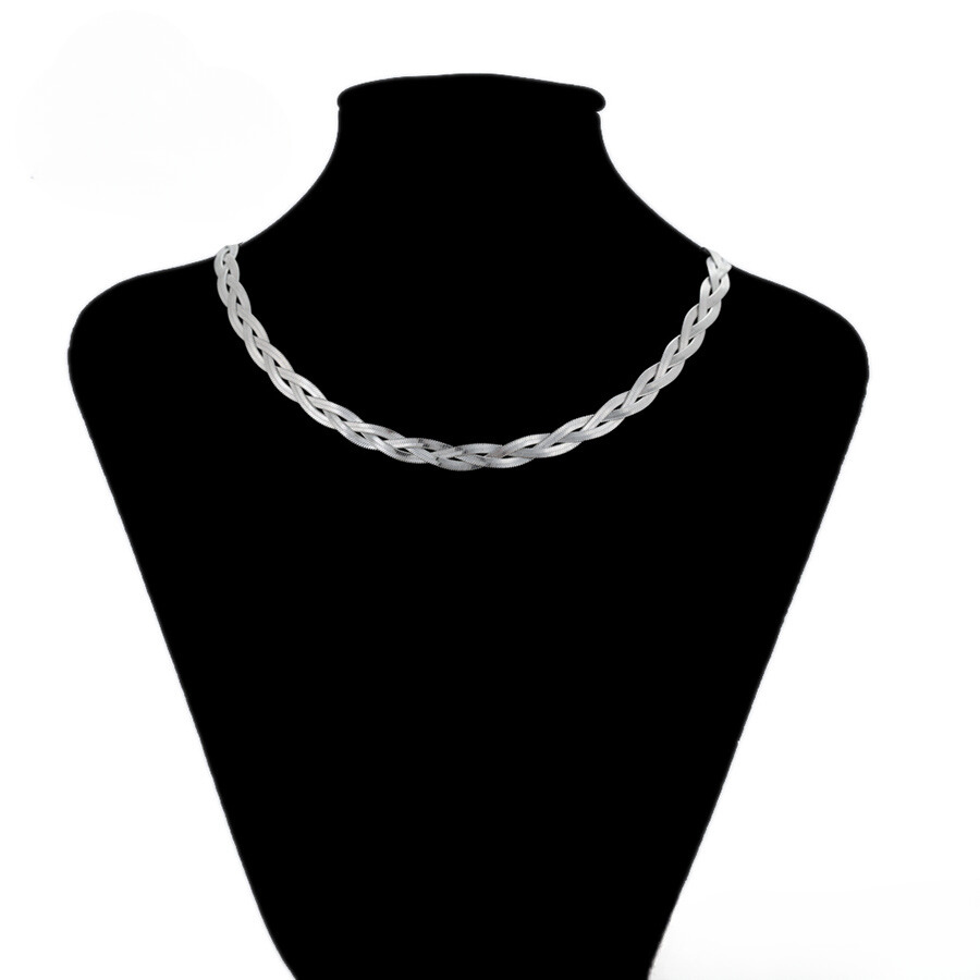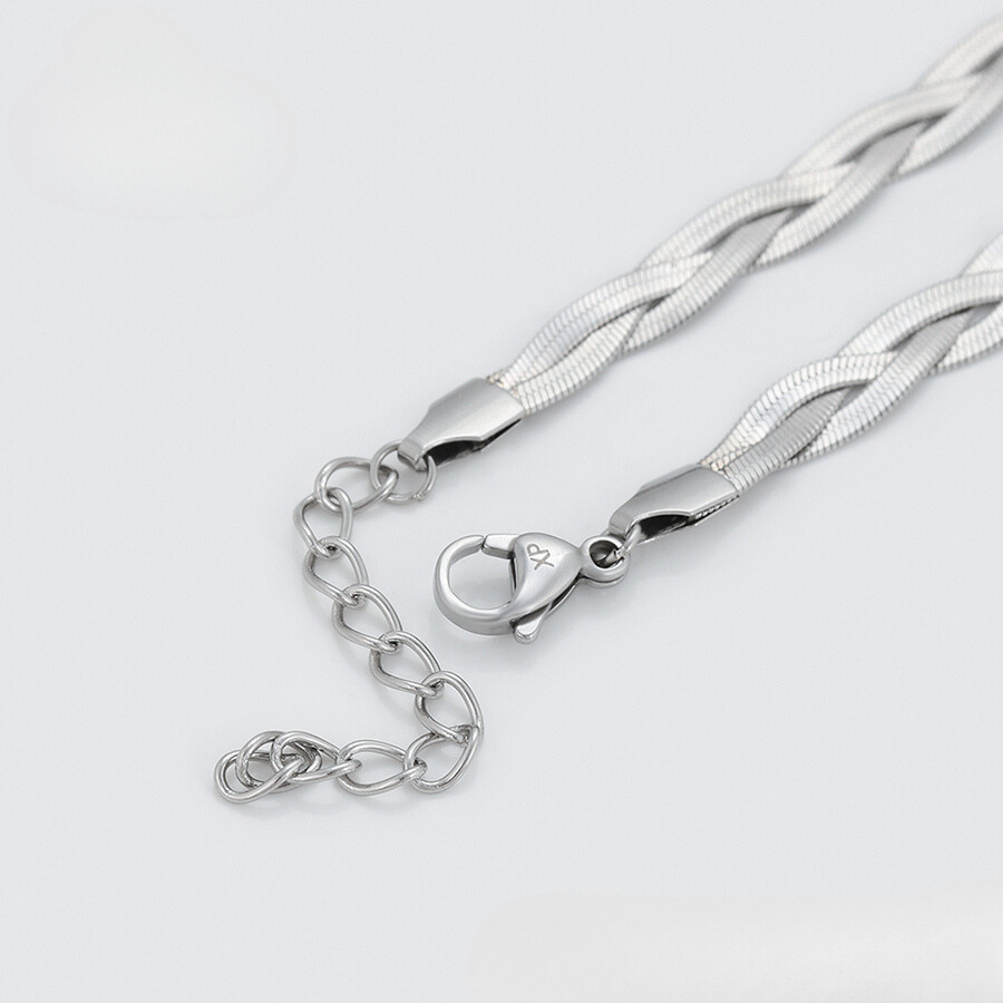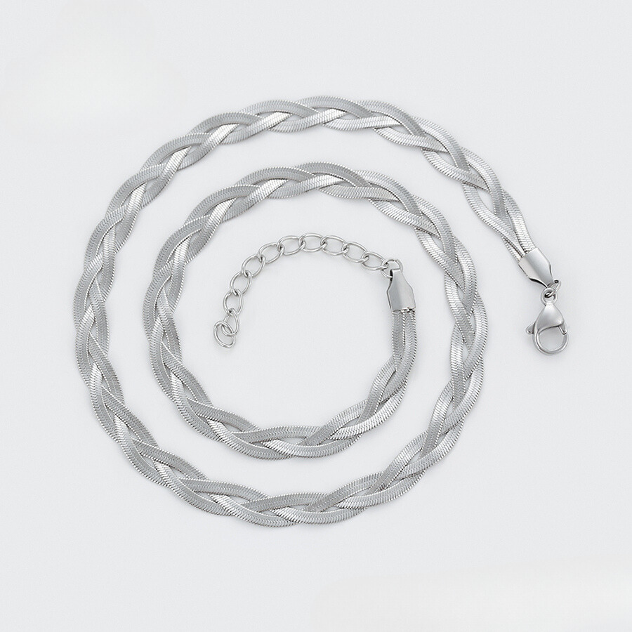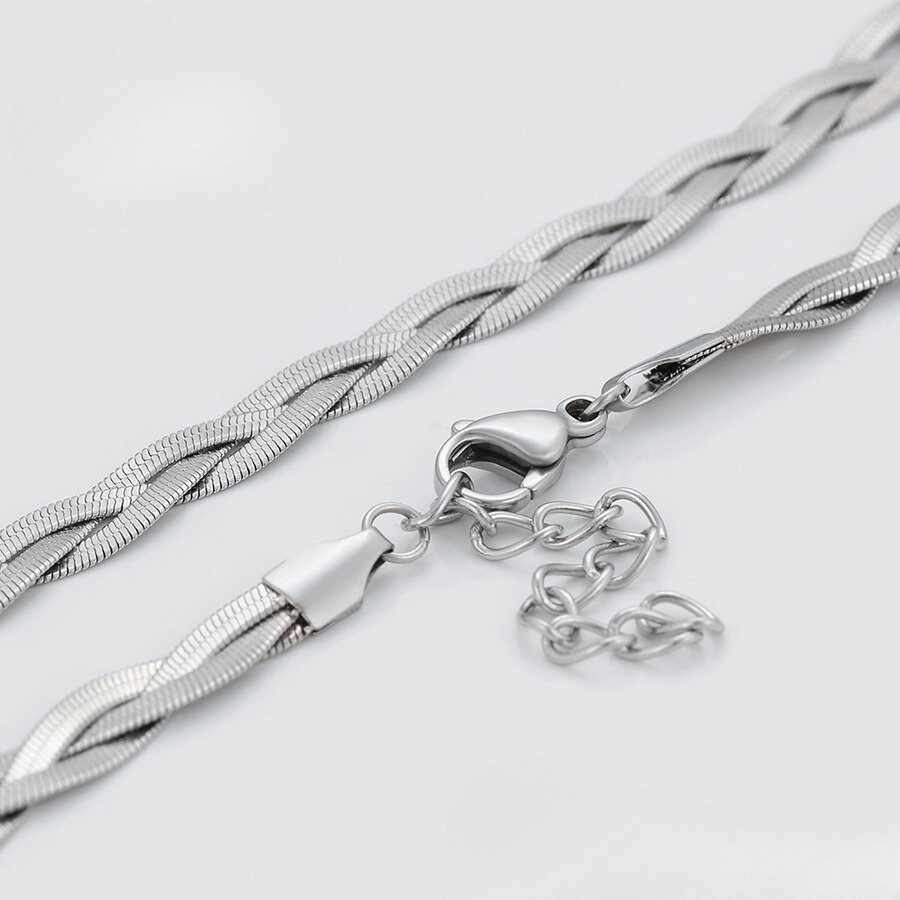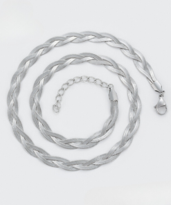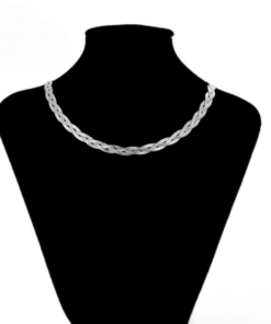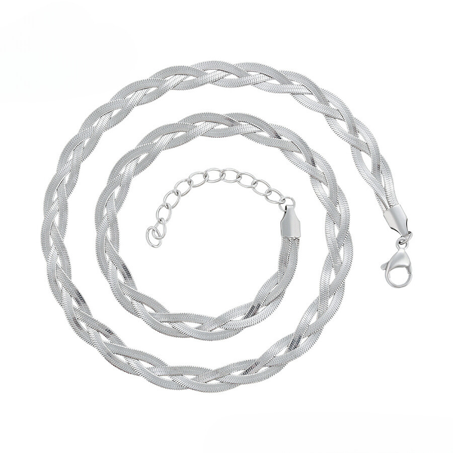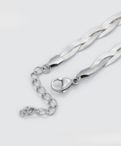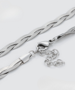 Hermoso sollar elaborado en acero con doblee enchape de plata 925, triple cadena cordón plano.