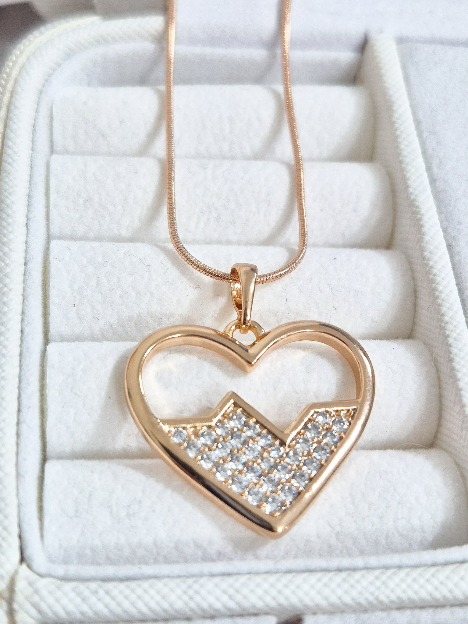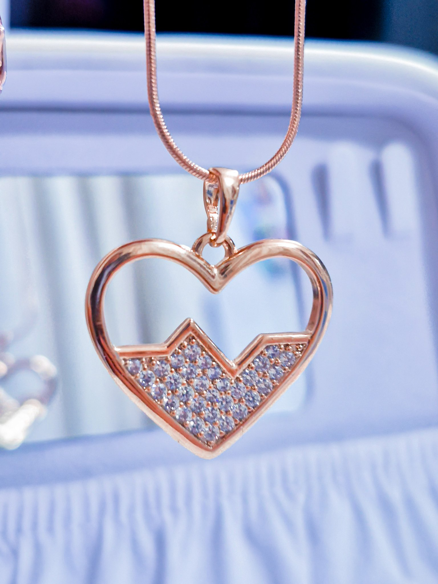 Hermoso collar elaborado en aleación con doble enchape de oro rosé de 24k es incrustación de cristales Swarovski.