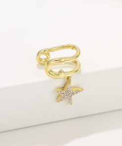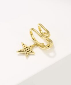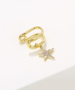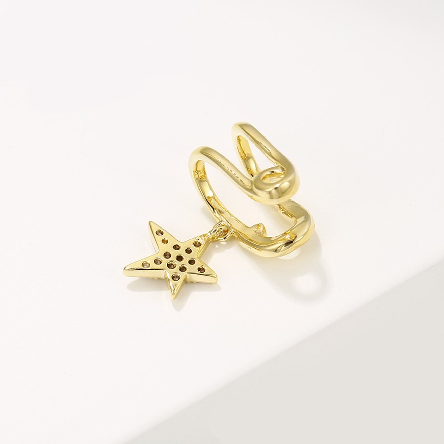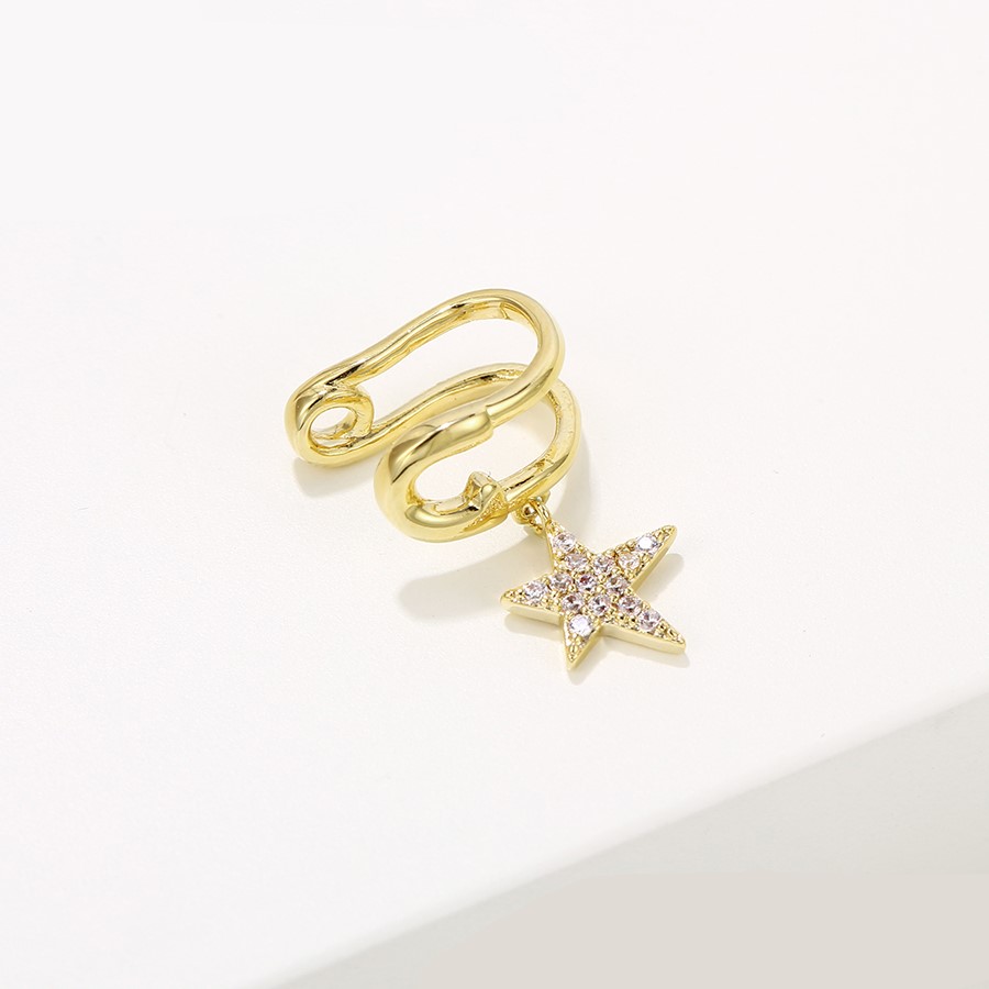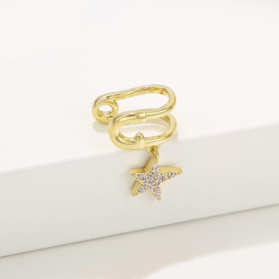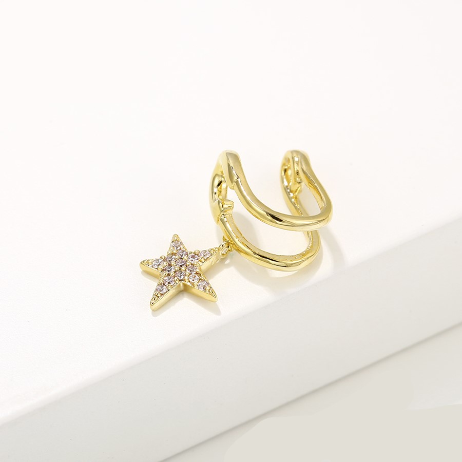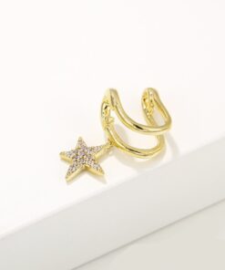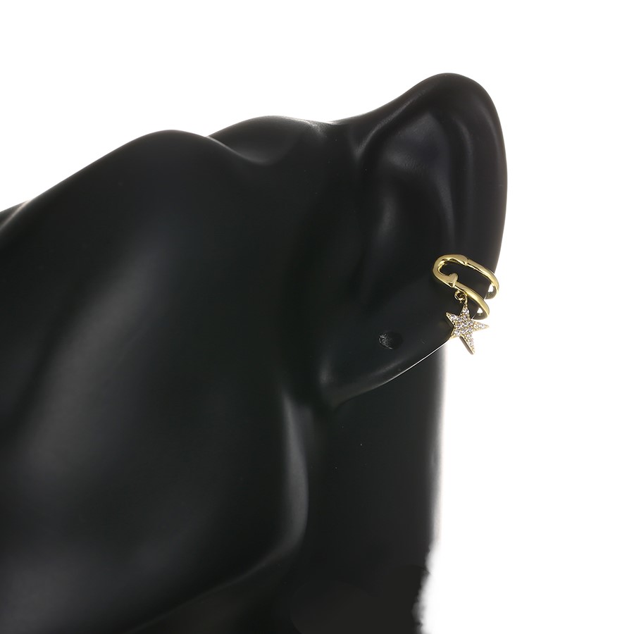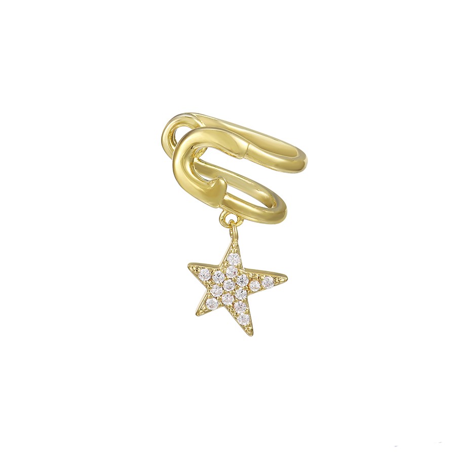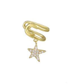Hermoso y elegante pendiente elaborado en Acero Quirúrgico 316L, con doble baño de oro de 18K e incrustación de cristal swarovski, se sostiene en la oreja sin necesidad de tener agujero, es ajustable.