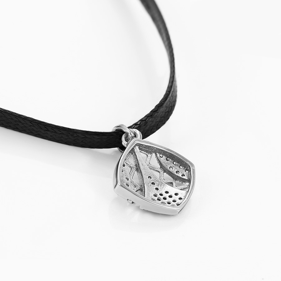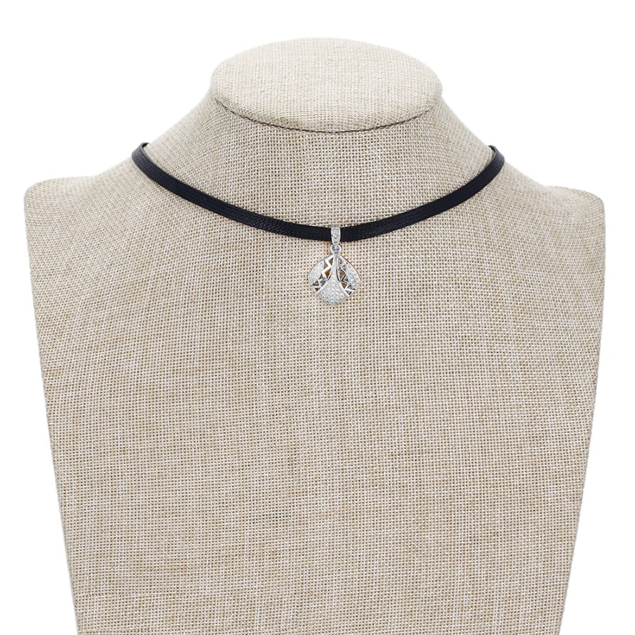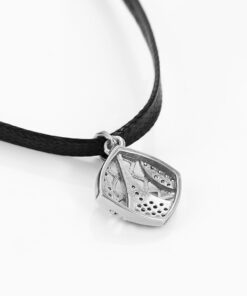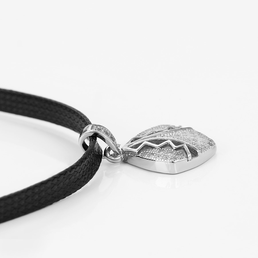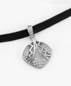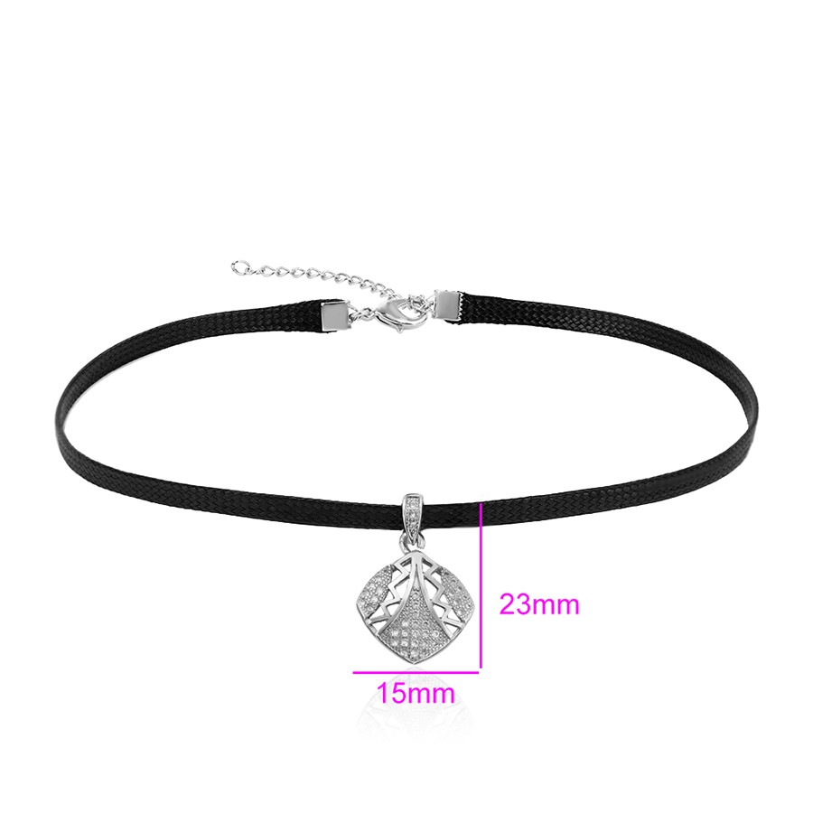 Hermoso, exclusivo y casual collar de cinta de cuero sintético, dije elaborado en acero quirúrgico 316l, con doble baño de plata de ley 925, e incrustación de cristales swarovski, tiene cadena de extensión.