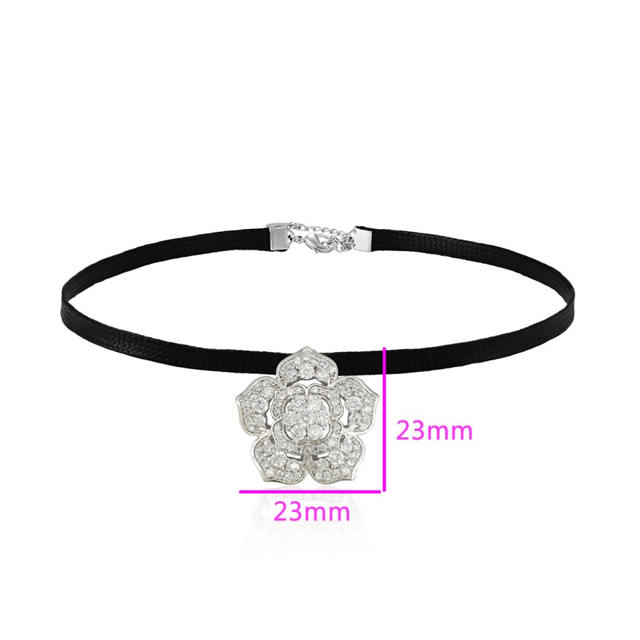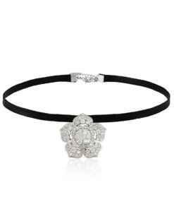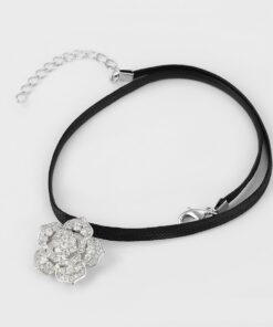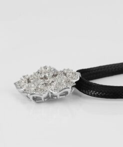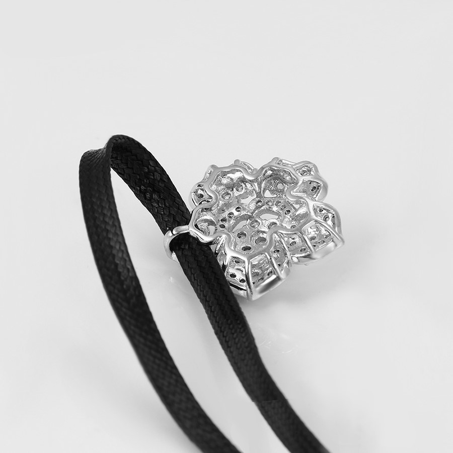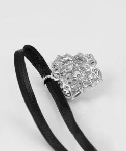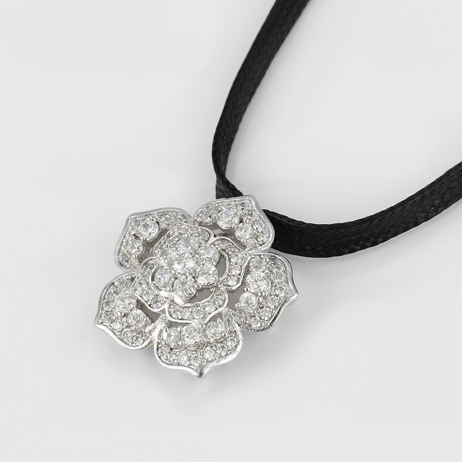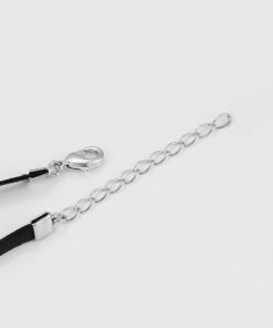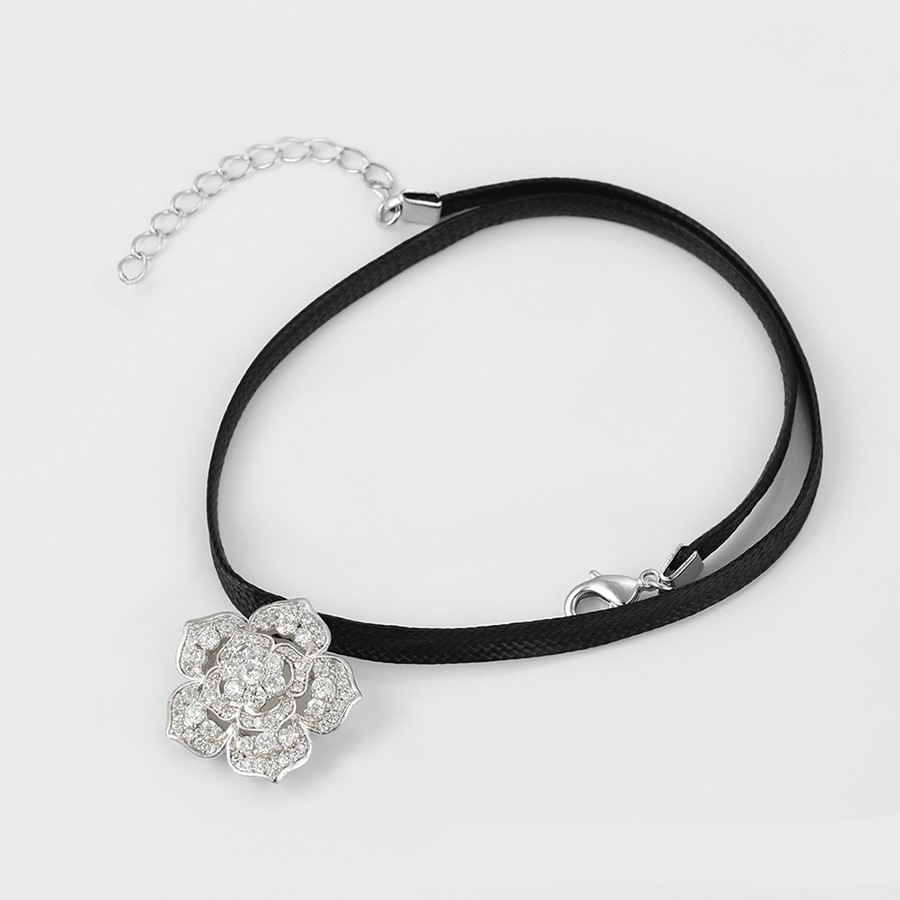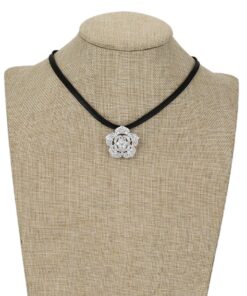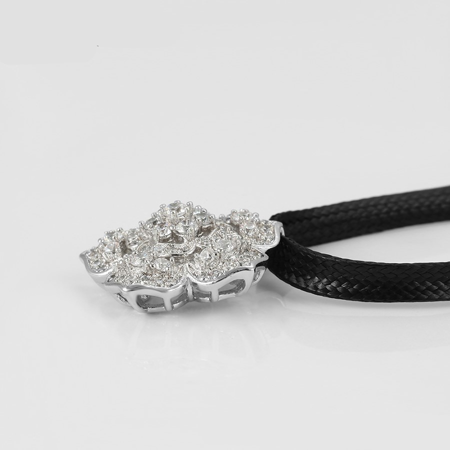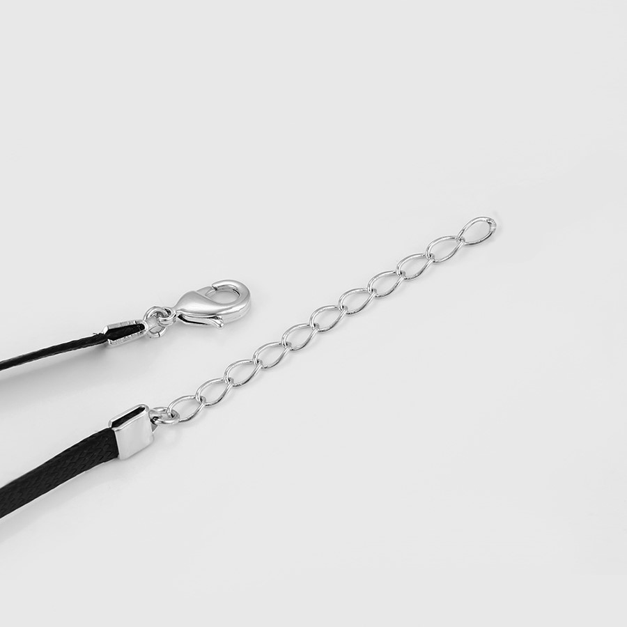 Hermoso, exclusivo y casual collar de cinta de cuero sintético, dije elaborado en acero quirúrgico 316l, con doble baño de plata de ley 925, e incrustación de cristales swarovski, tiene cadena de extensión.