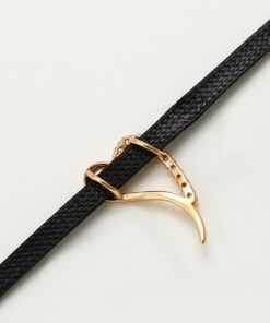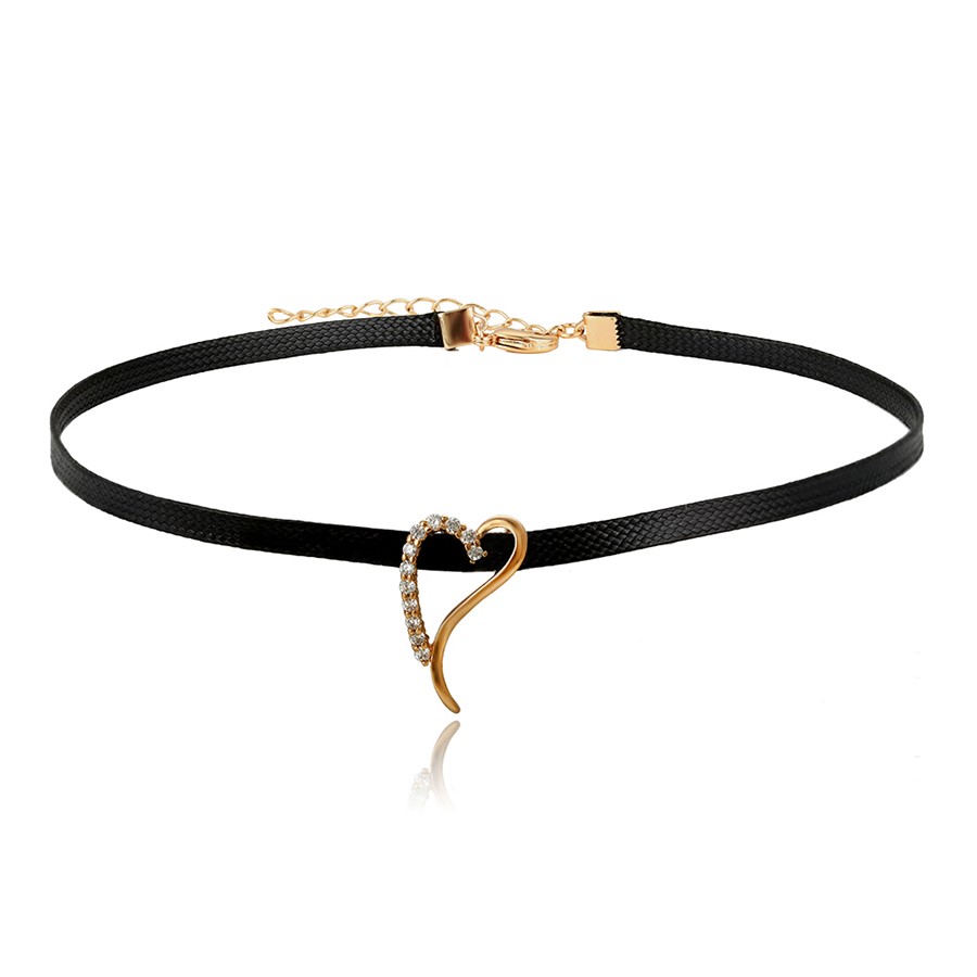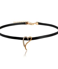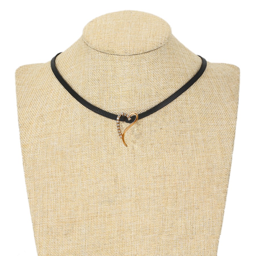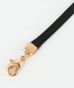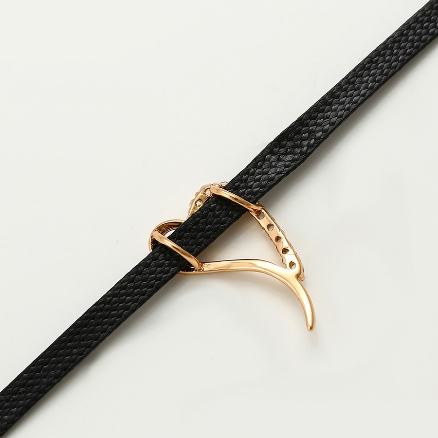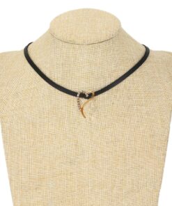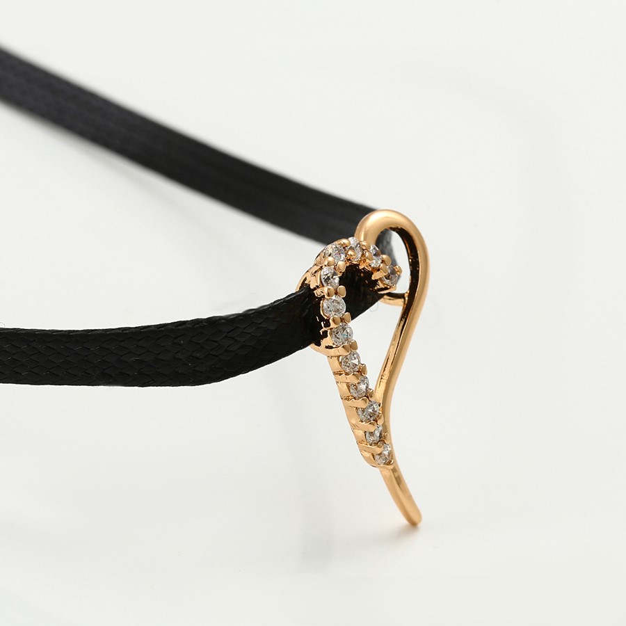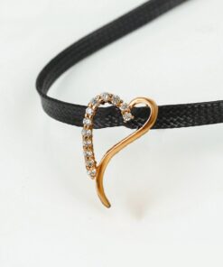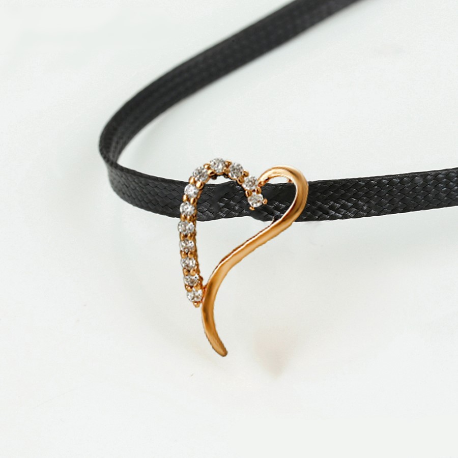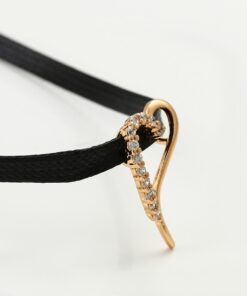 Hermoso, exclusivo y casual collar de cinta de cuero sintético, dije elaborado en acero quirúrgico 316l, con doble baño de oro rosa de 18k, e incrustación de cristales swarovski, tiene cadena de extensión.