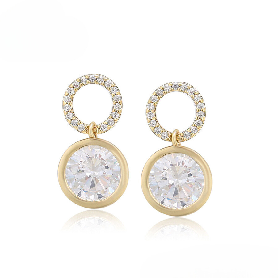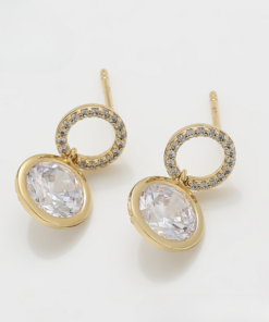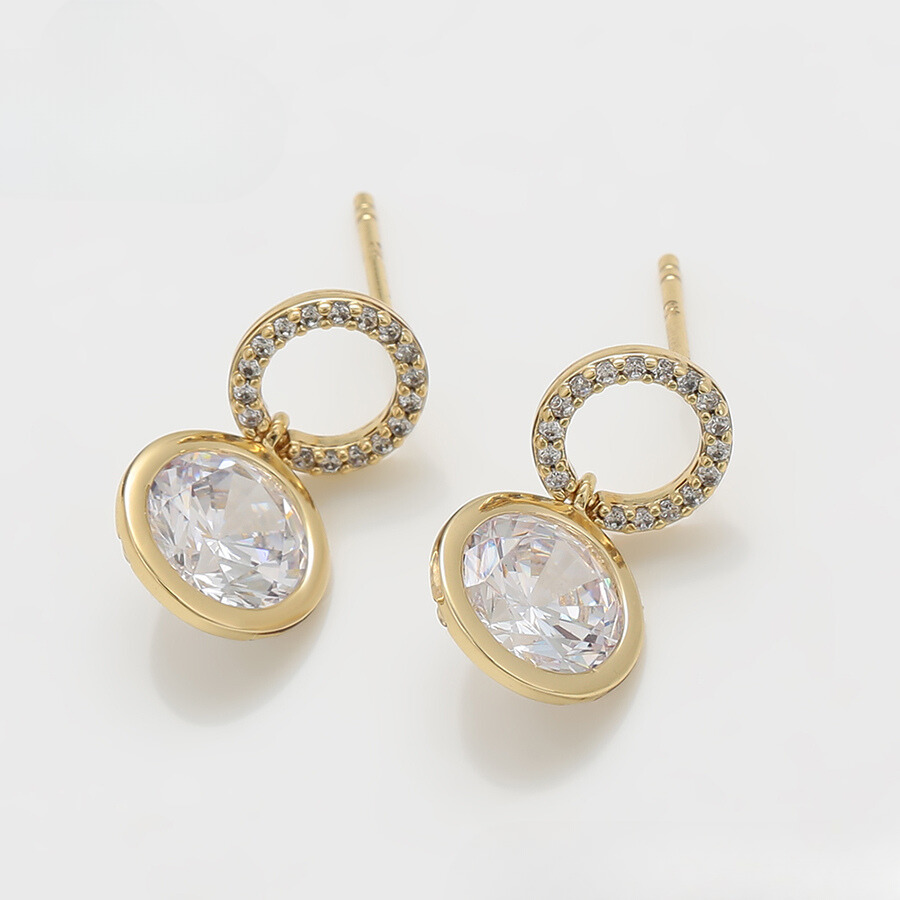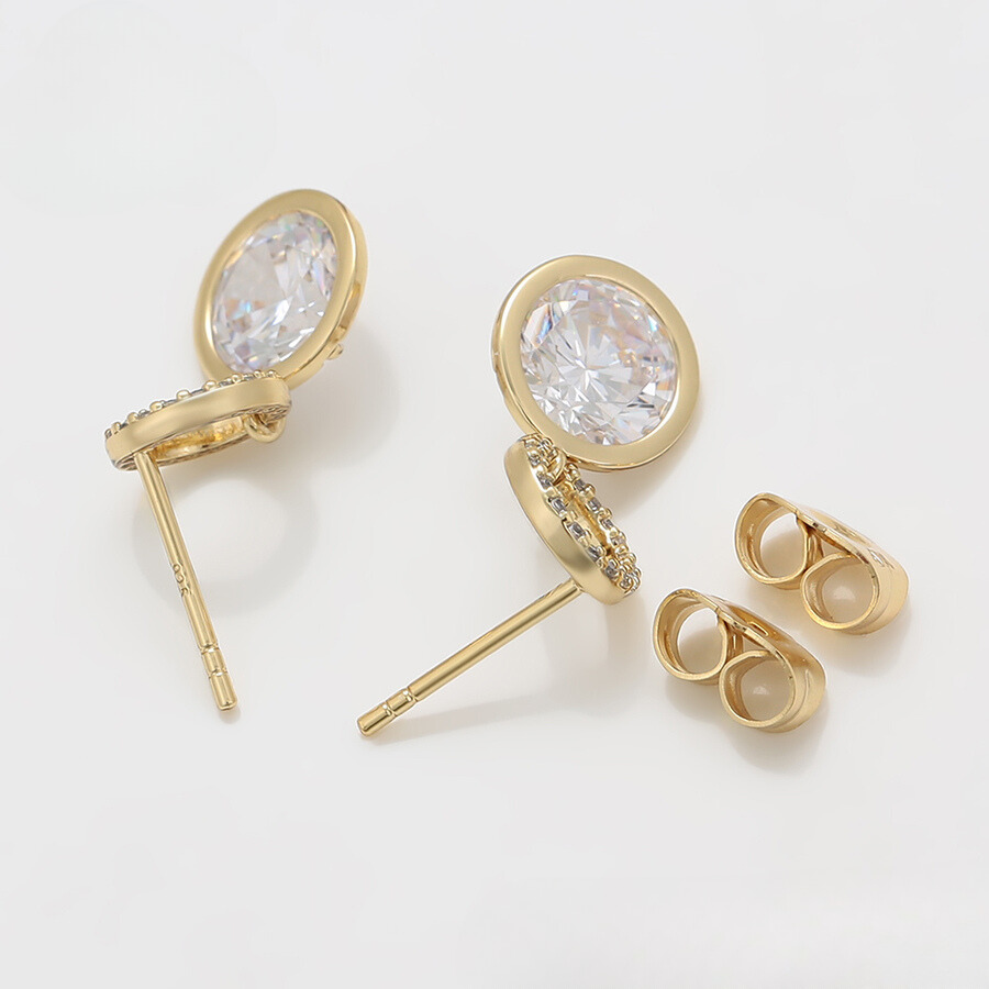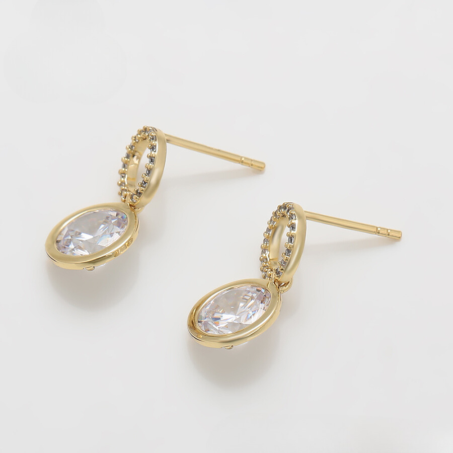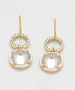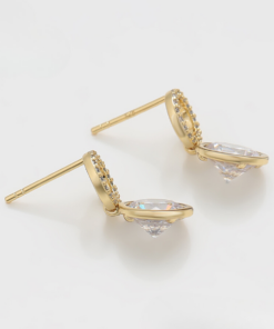 Hermosos aretes elaborado en acero, con doble enchape de oro dorado de 18k, e incrustación de cristal.
