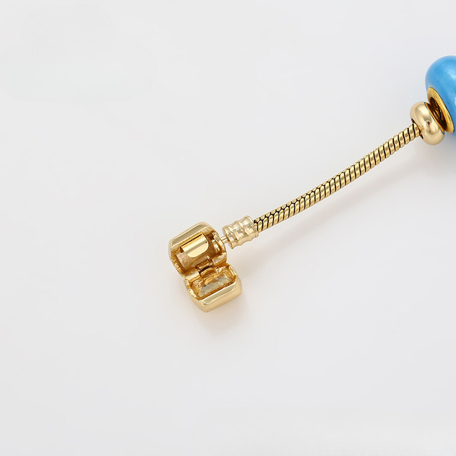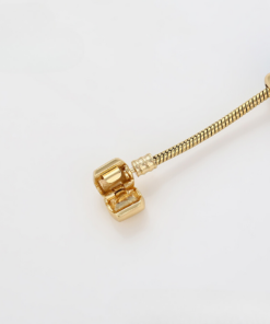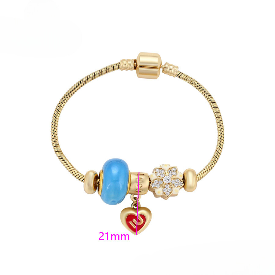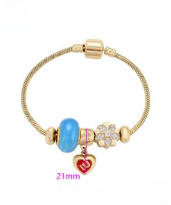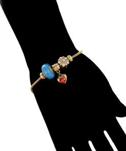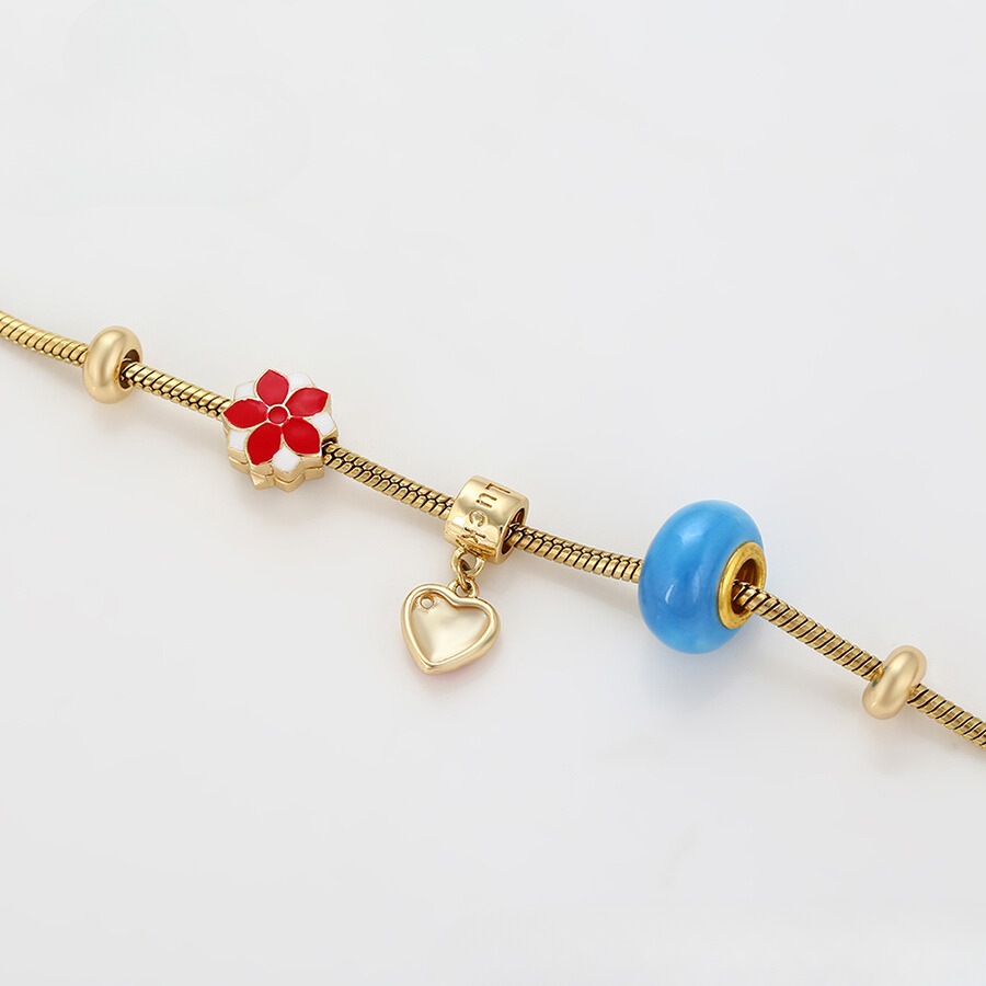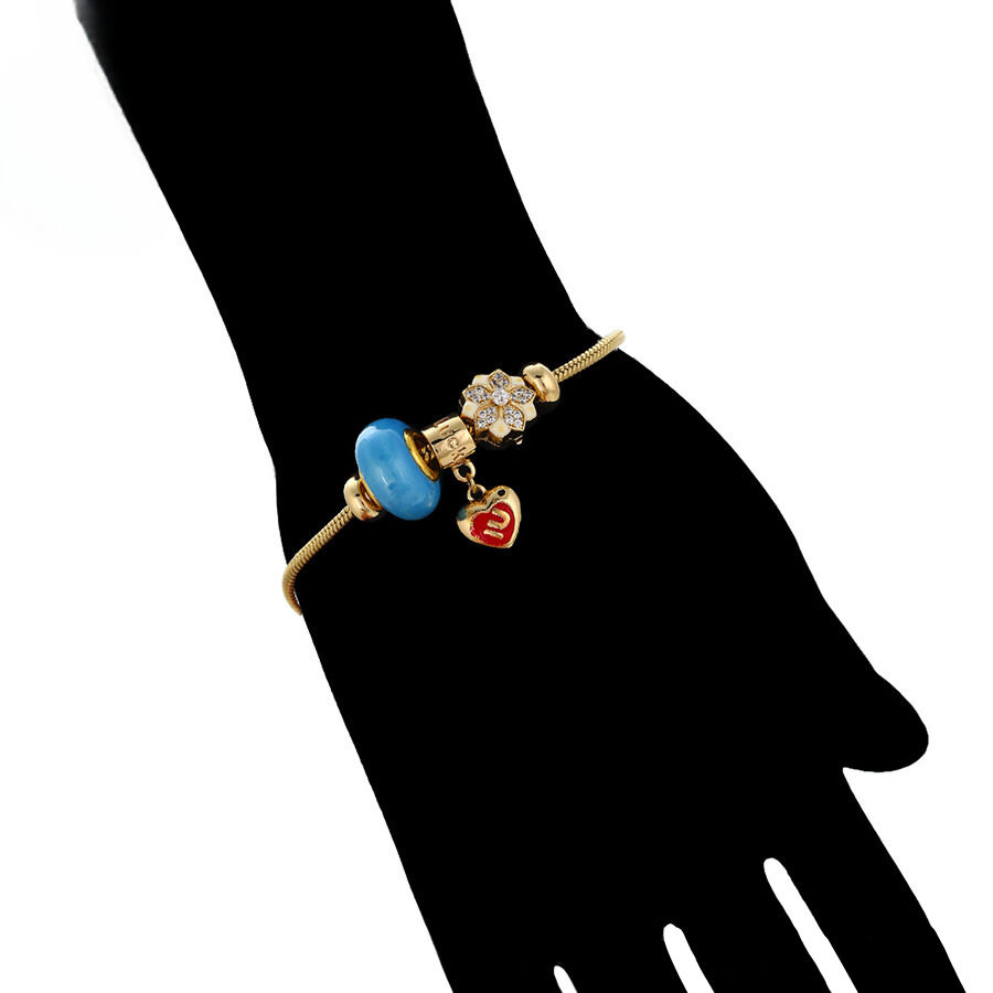 Linda pulsera estilo pandora, elaborada en acero, con doble enchape de oro dorado de 18k, e incrustación de cristal.