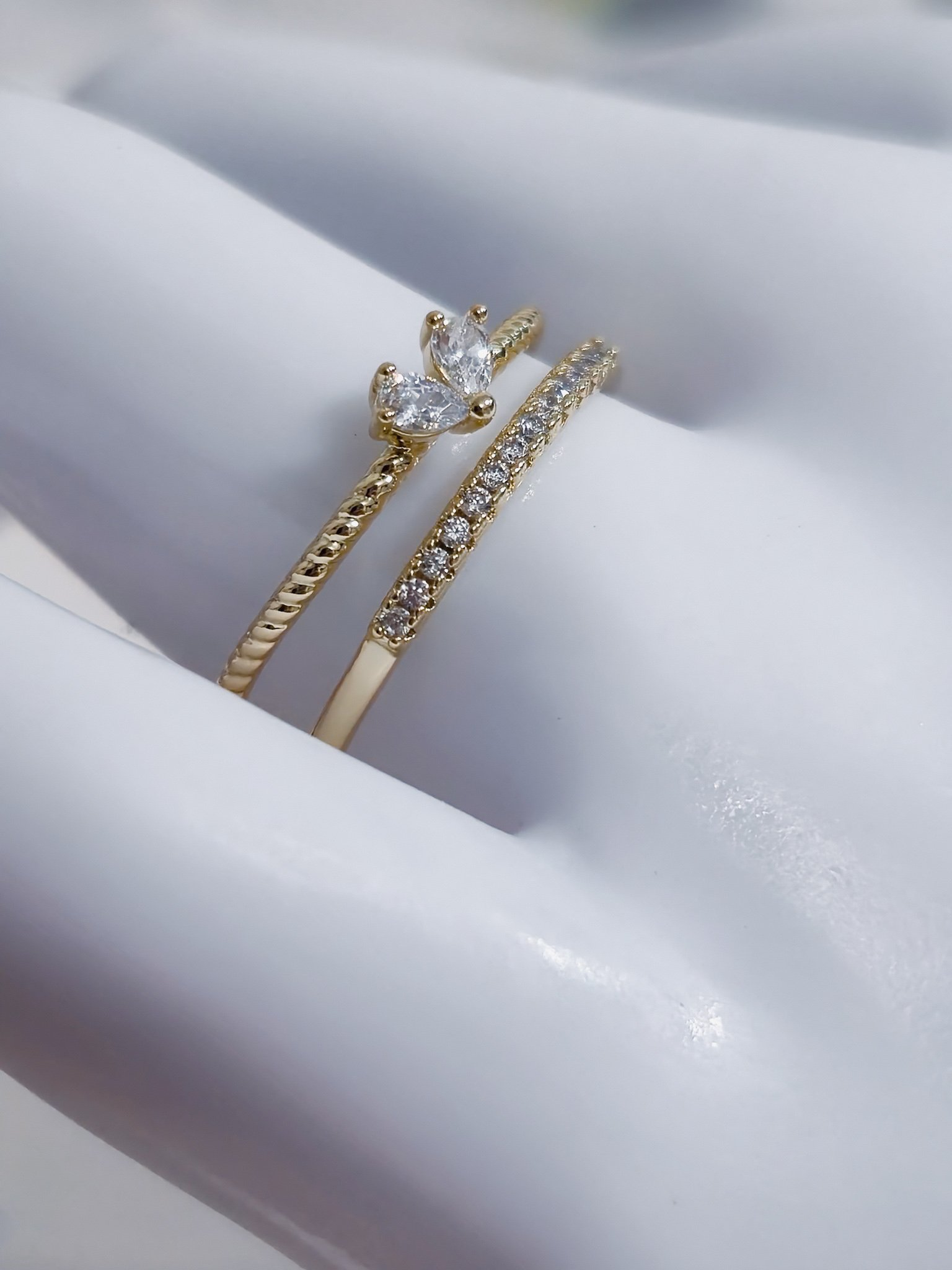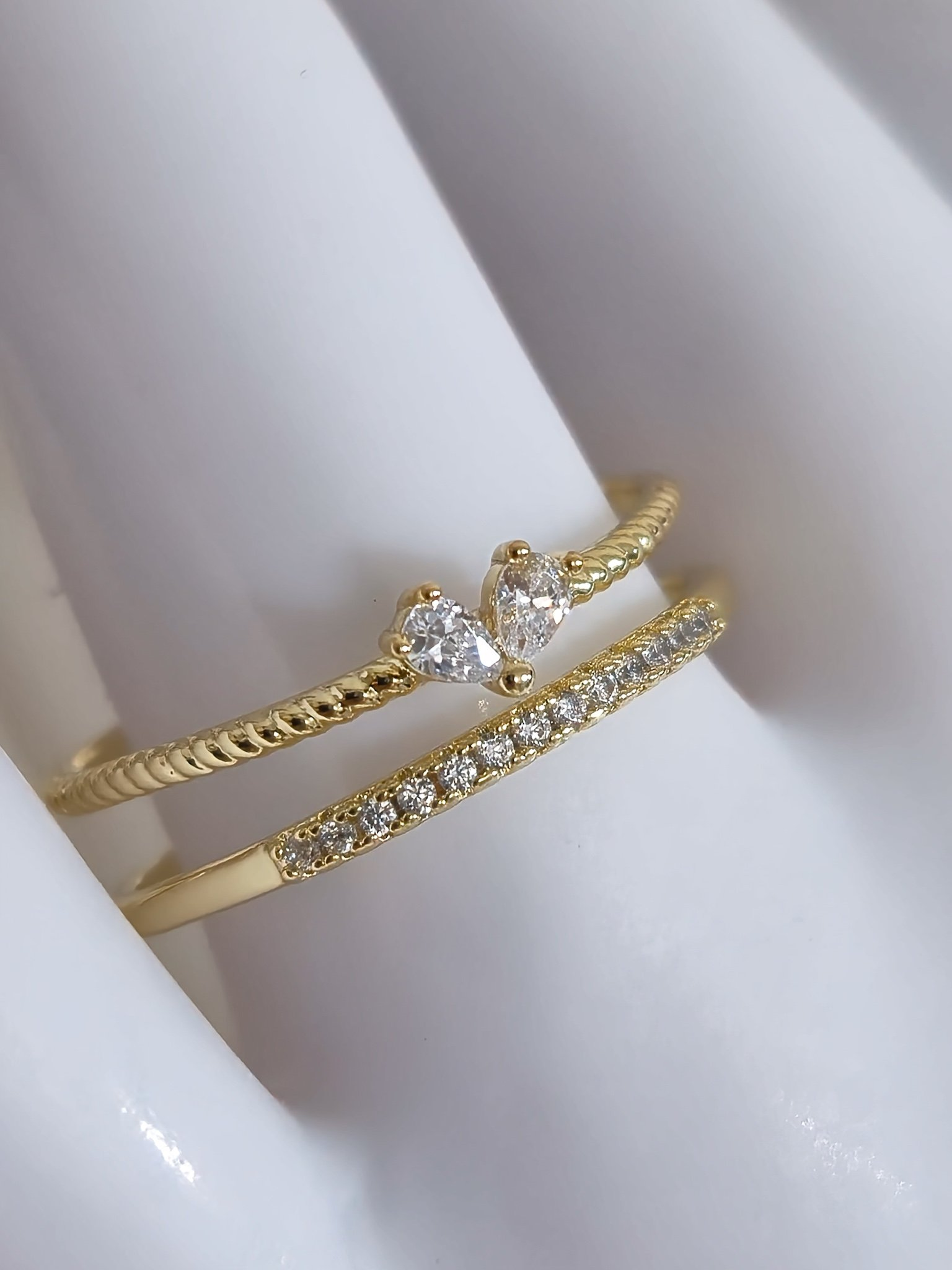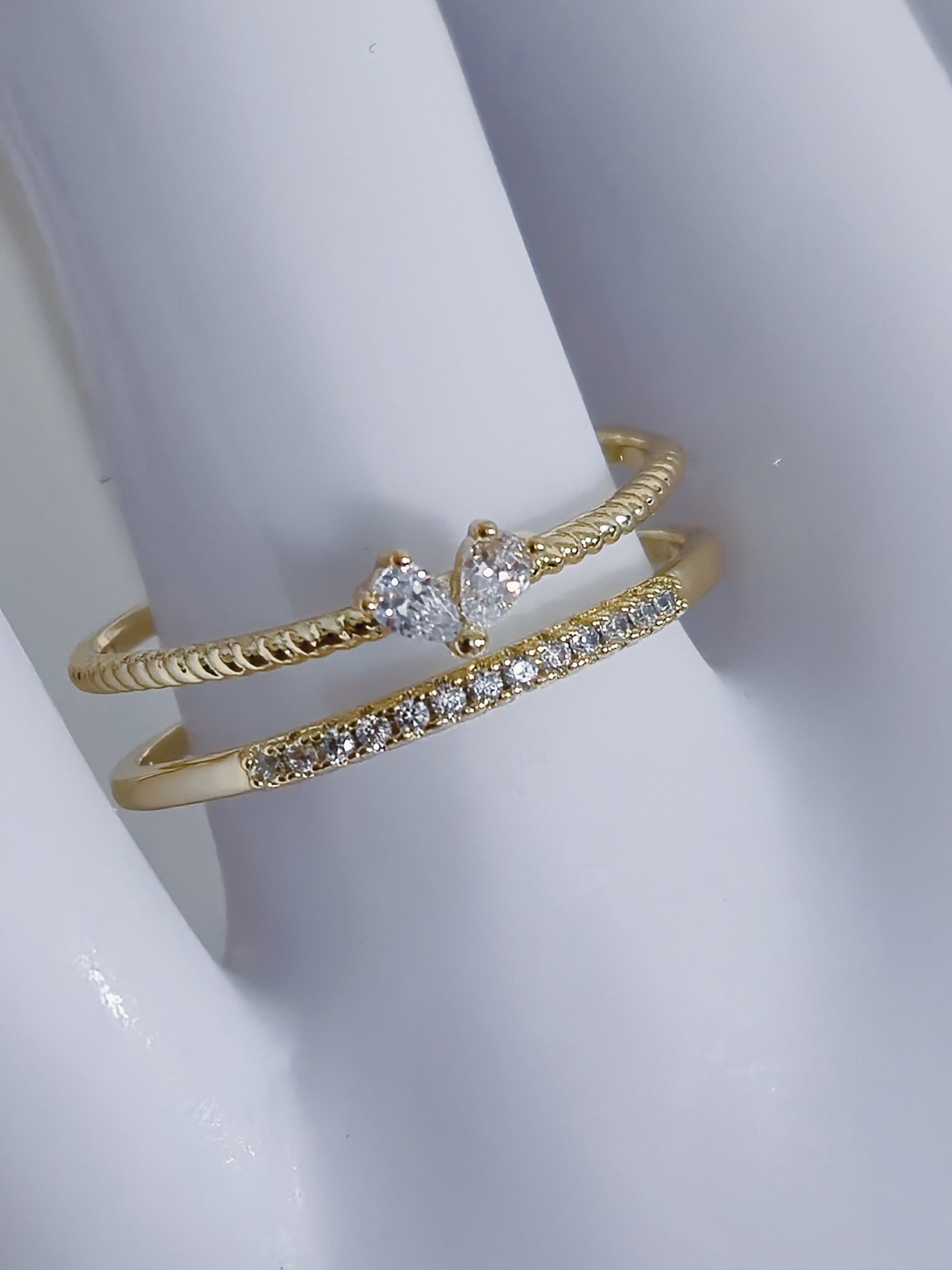 Hermoso anillo doble elaborado en aleación con doble enchape de oro dorado de 24k. Regulable.