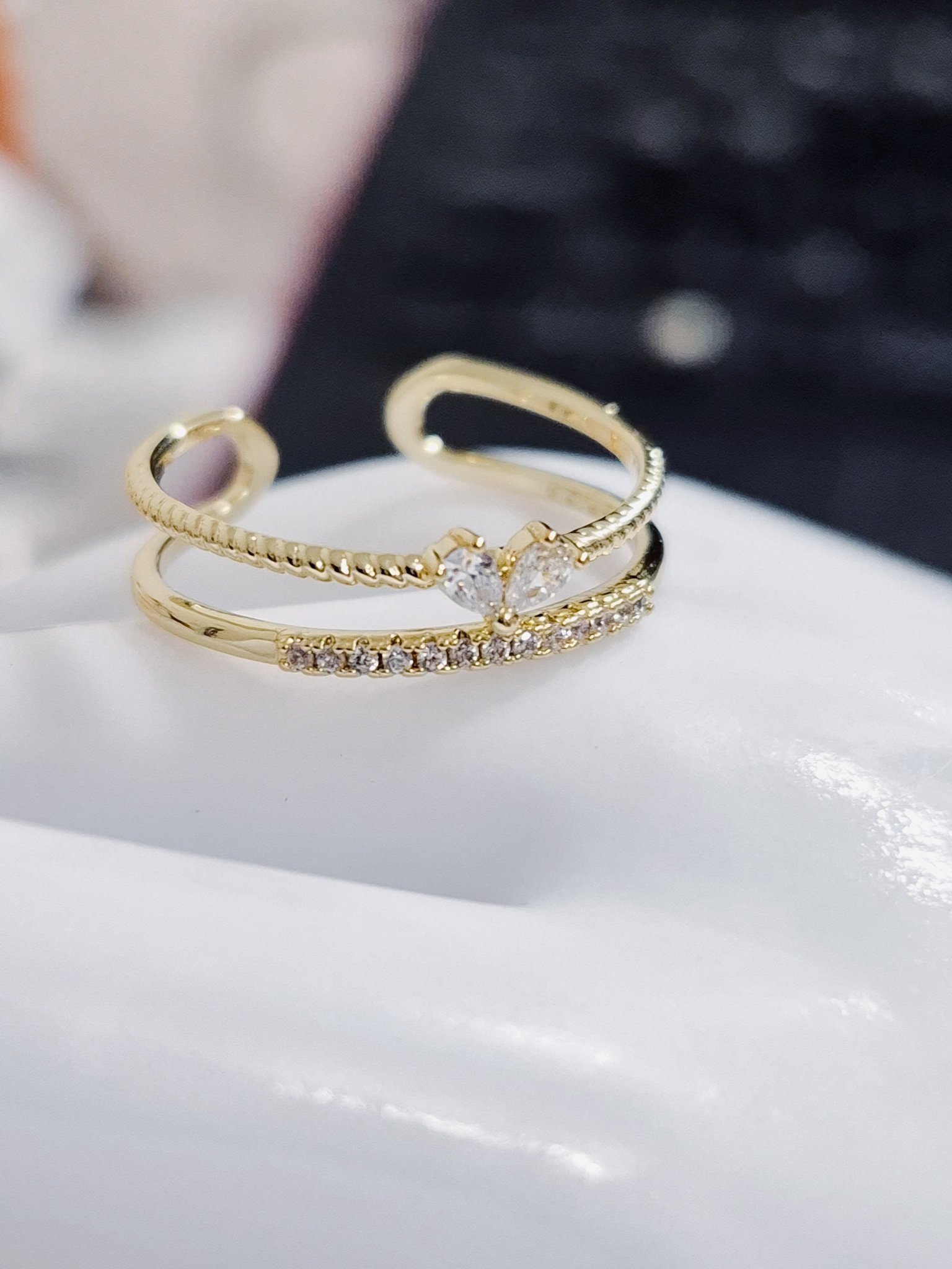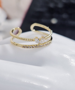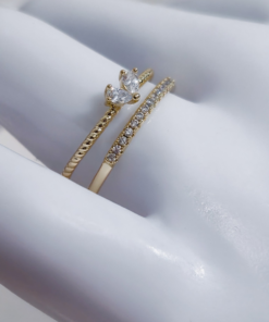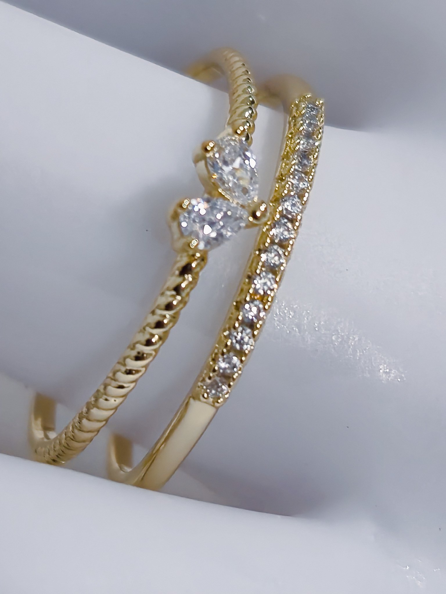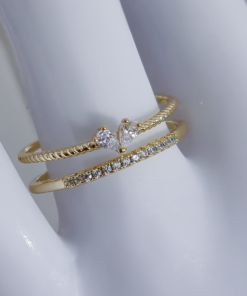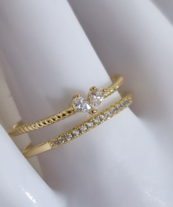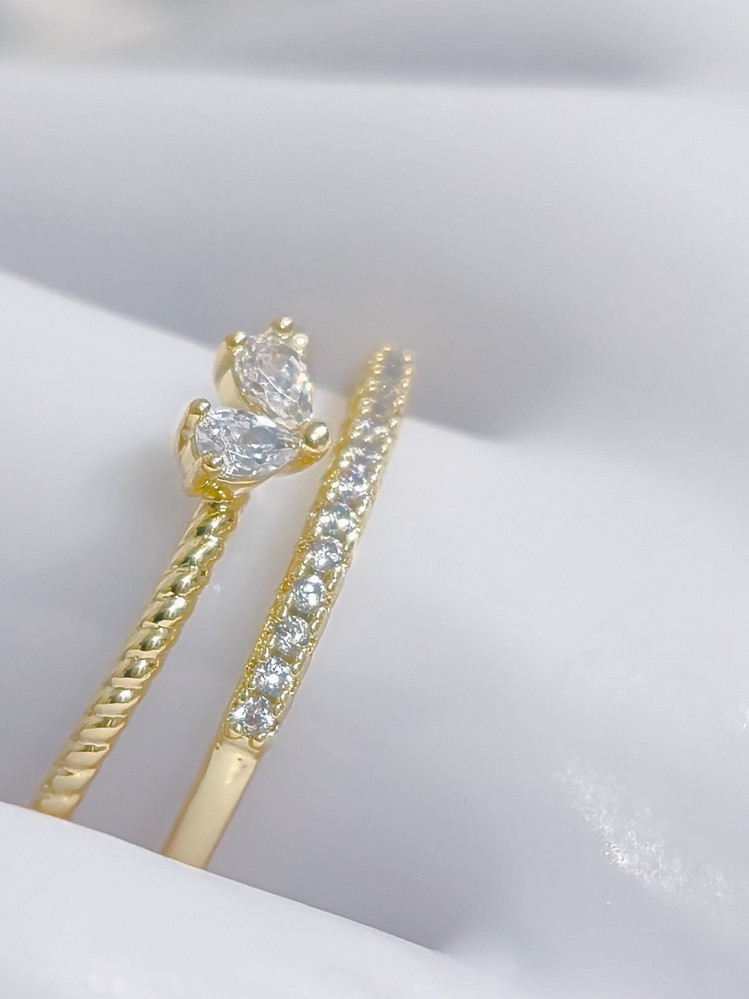 Hermoso anillo doble elaborado en aleación con doble enchape de oro dorado de 24k. Regulable.
