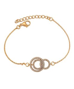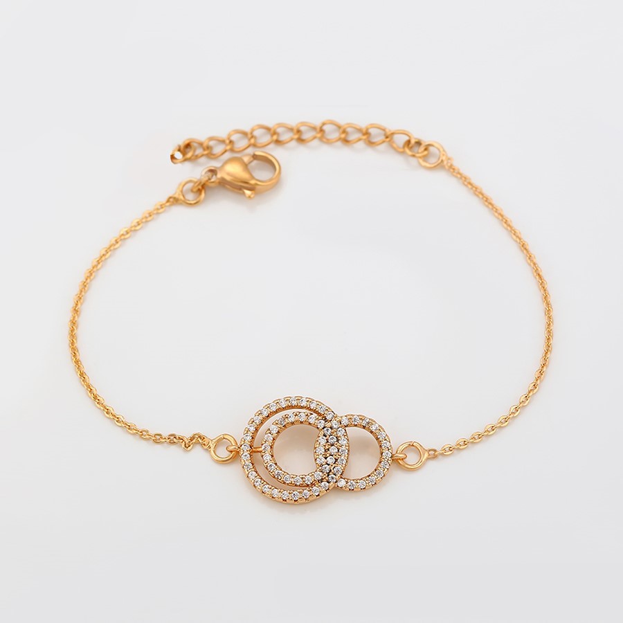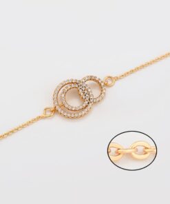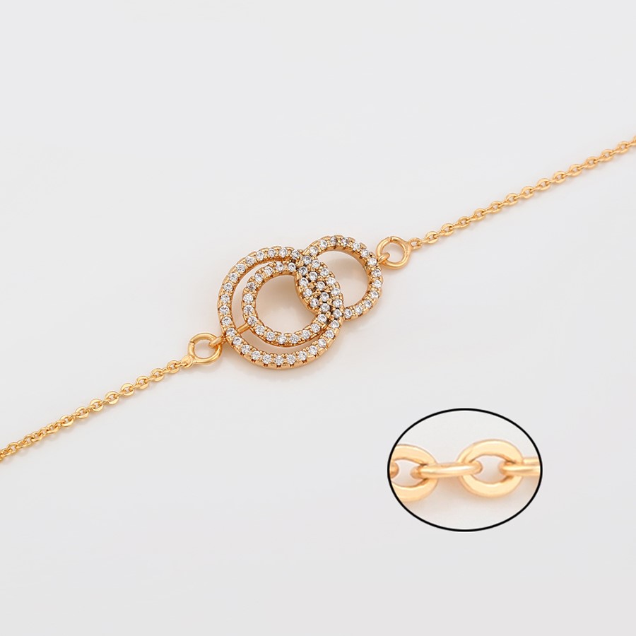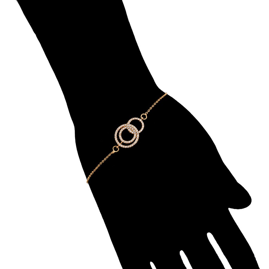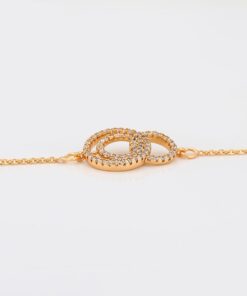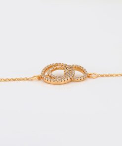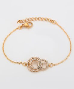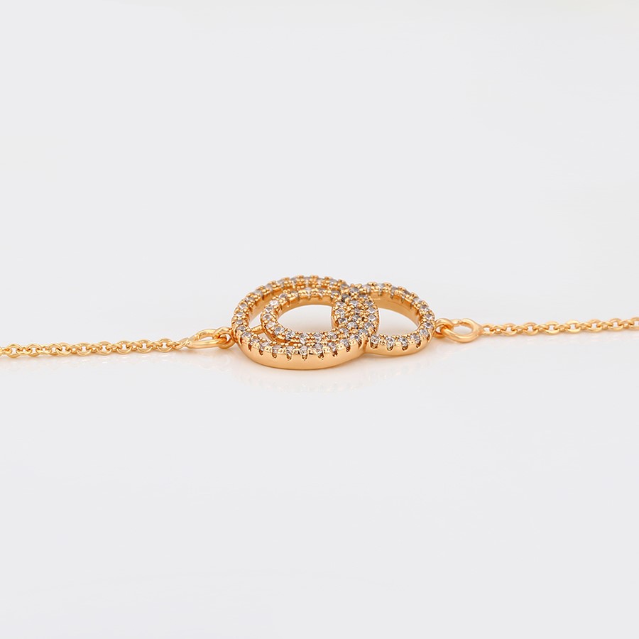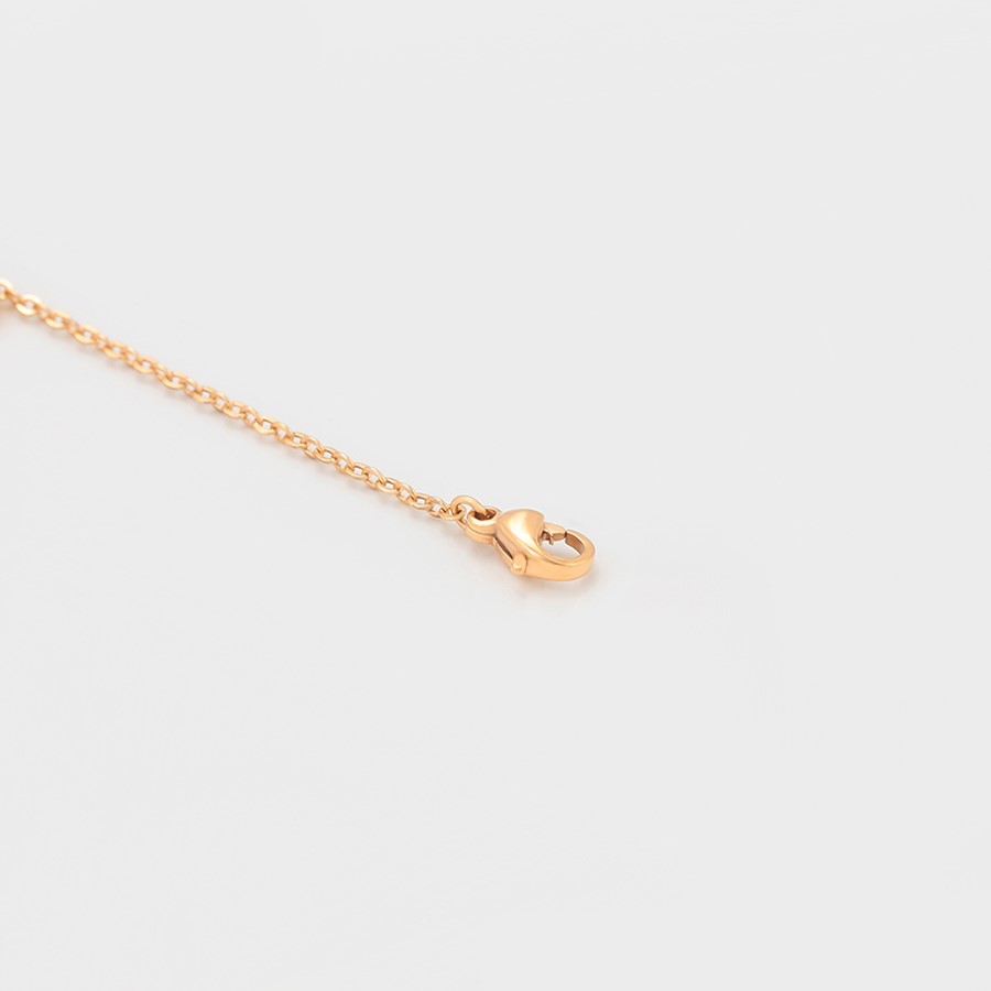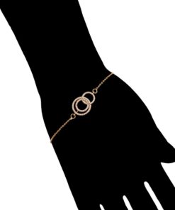 Elegante y delicada pulsera elaborada en Acero Quirúrgico 316L, con doble baño de Oro Rosa de 18K, e incrustación de cristal swarovski, con cadena de extensión.