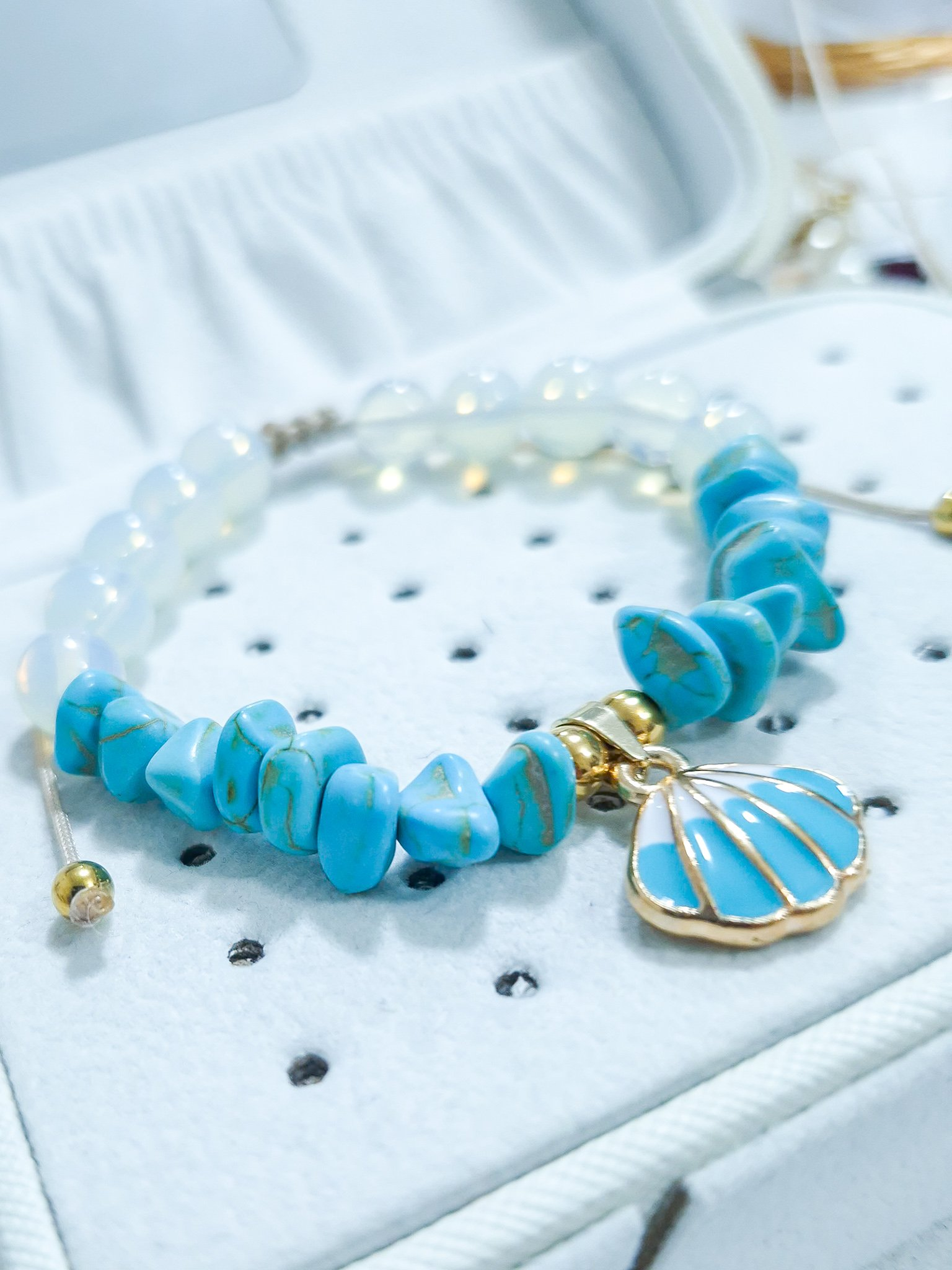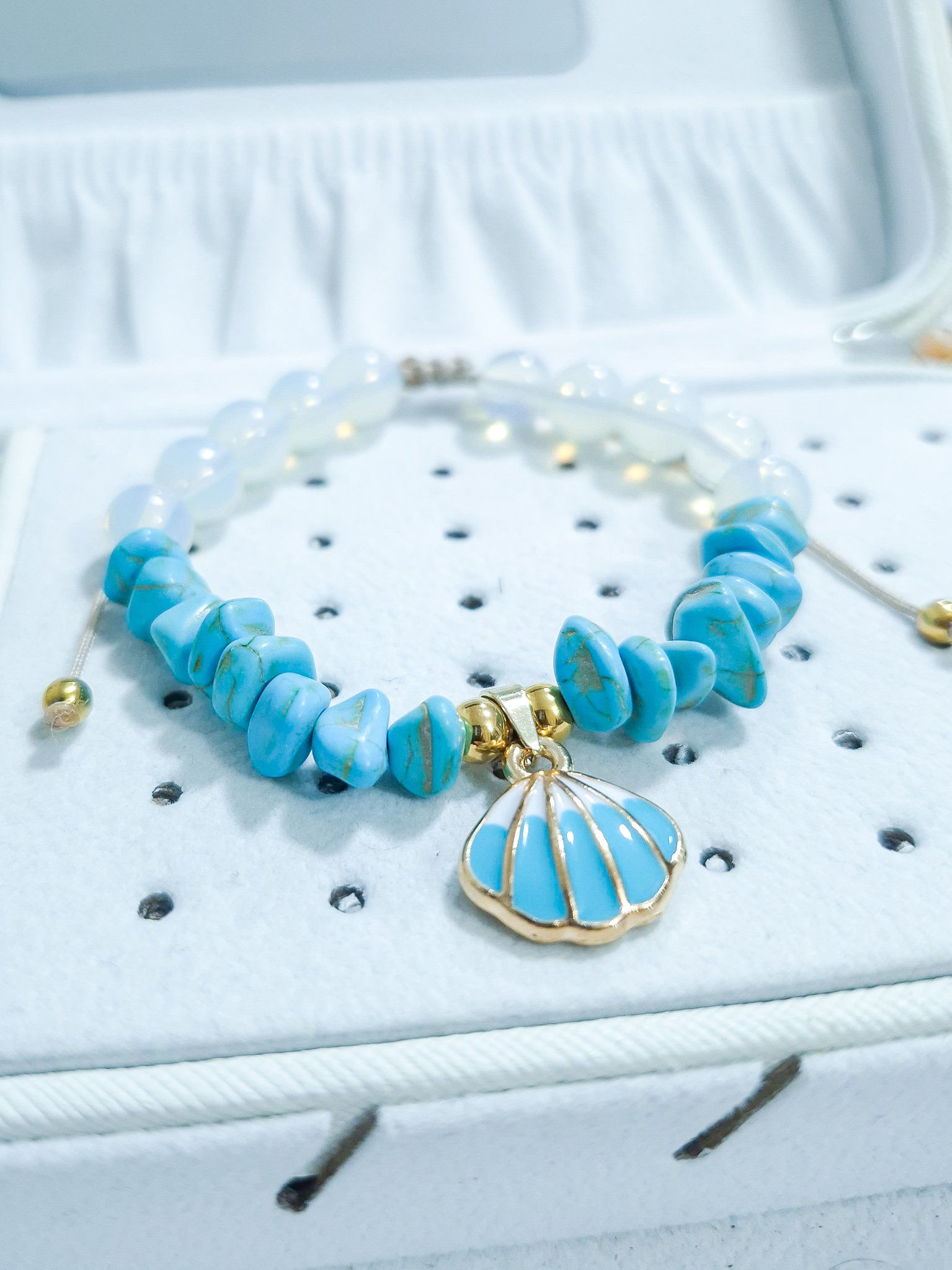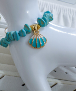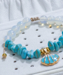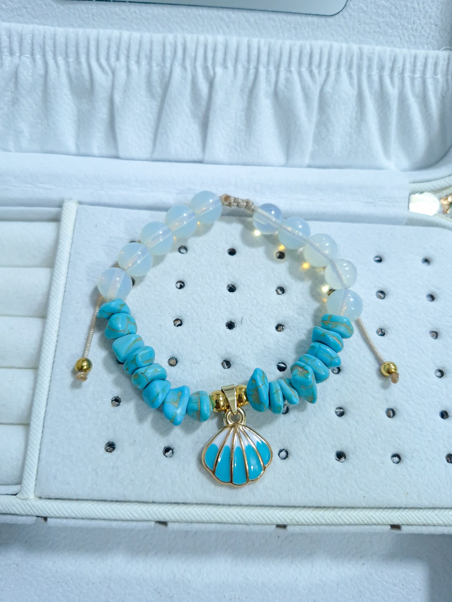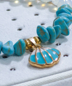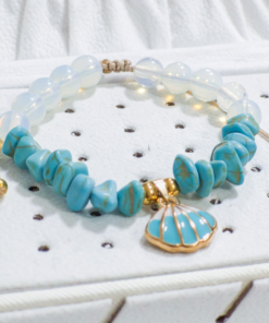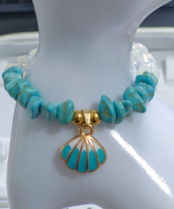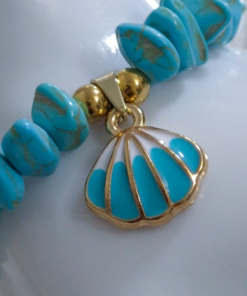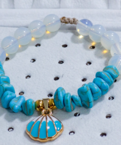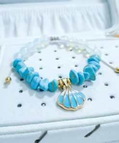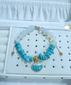 Hermosa pulsera hecha a mano elaborada con material de acero quirúrgico 316l, dije con doble enchapado, piedras Cascajos y piedra natural luna.