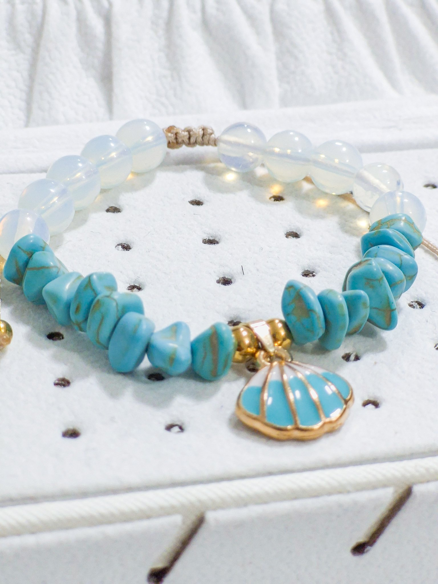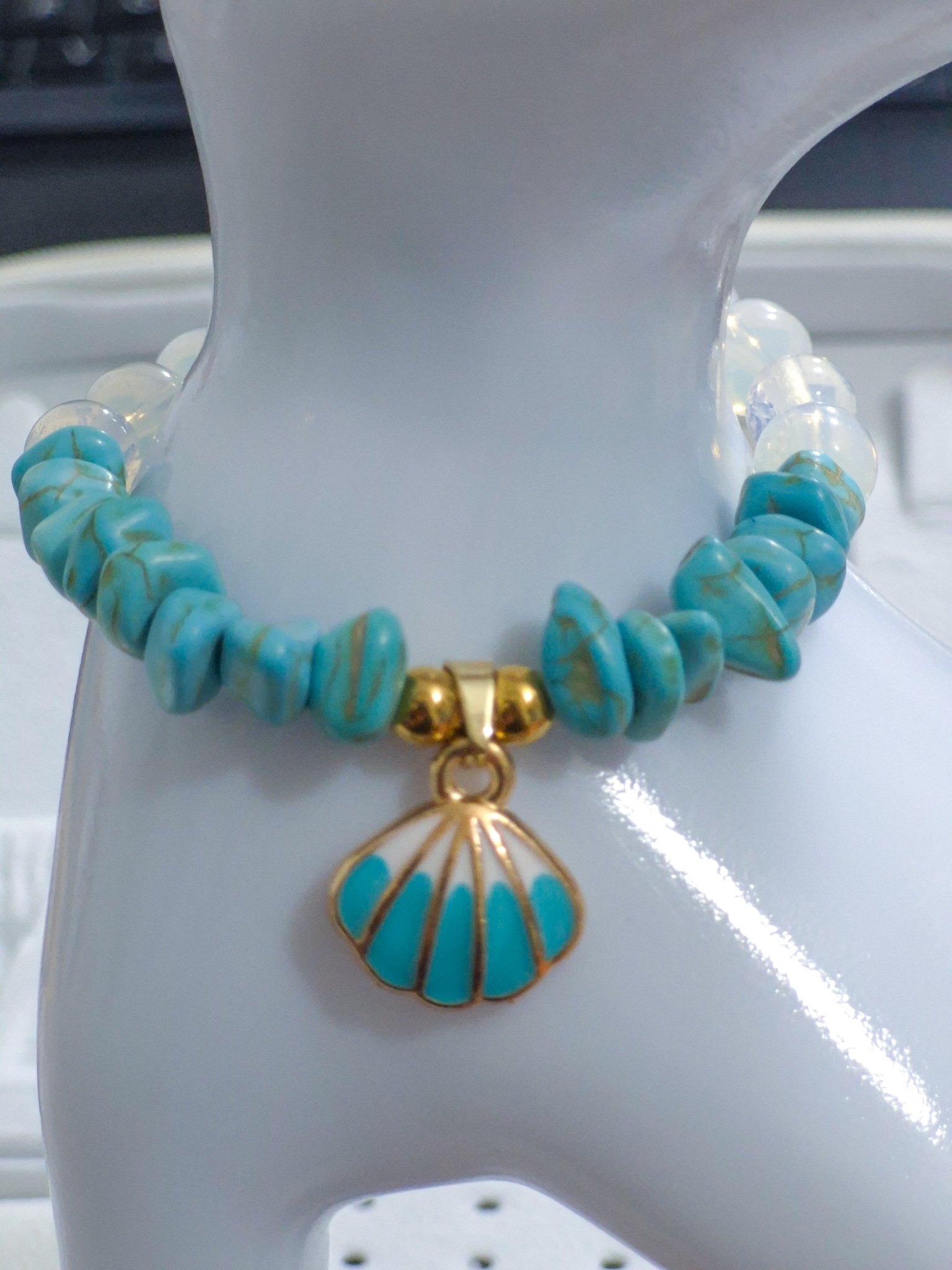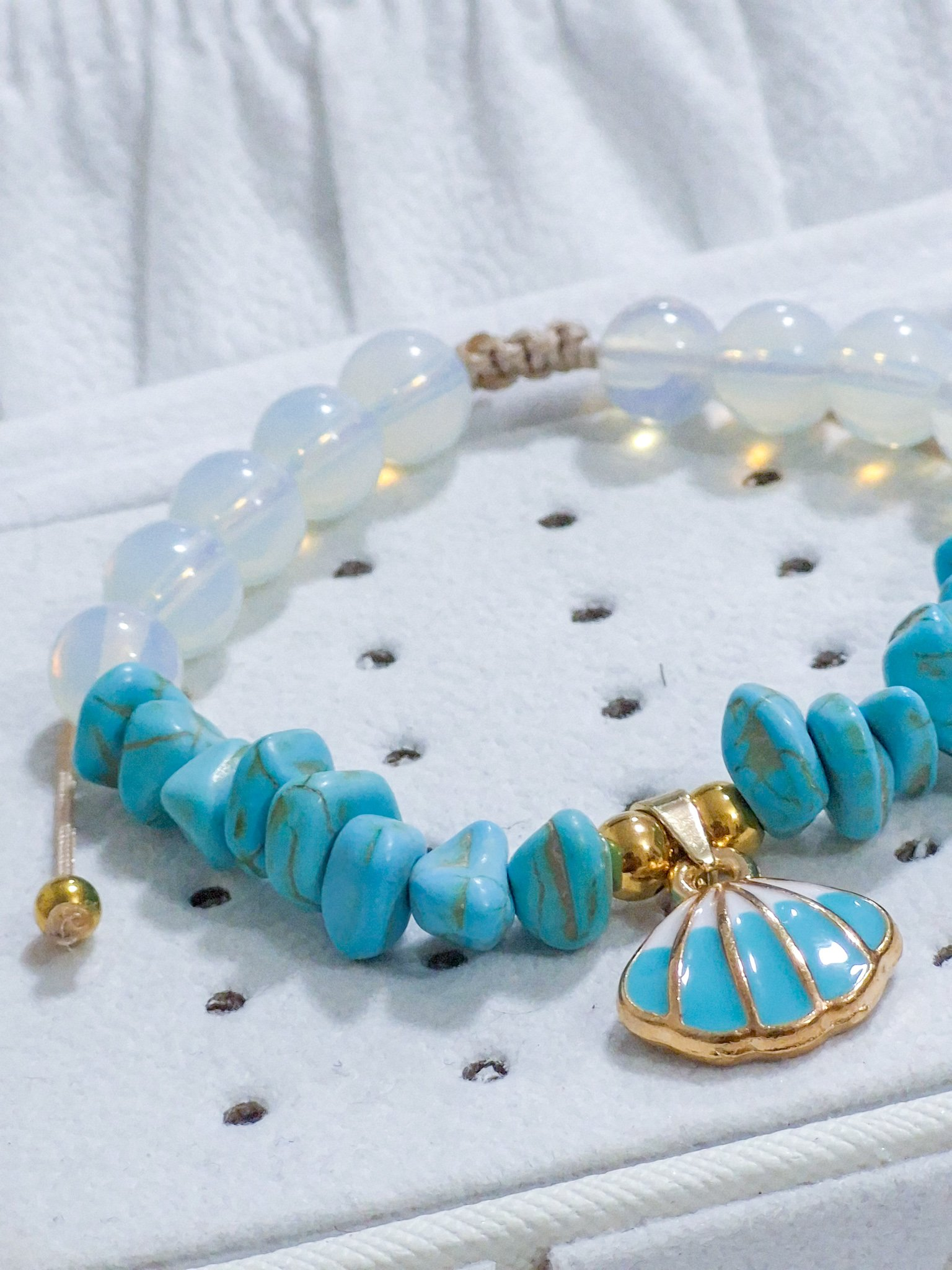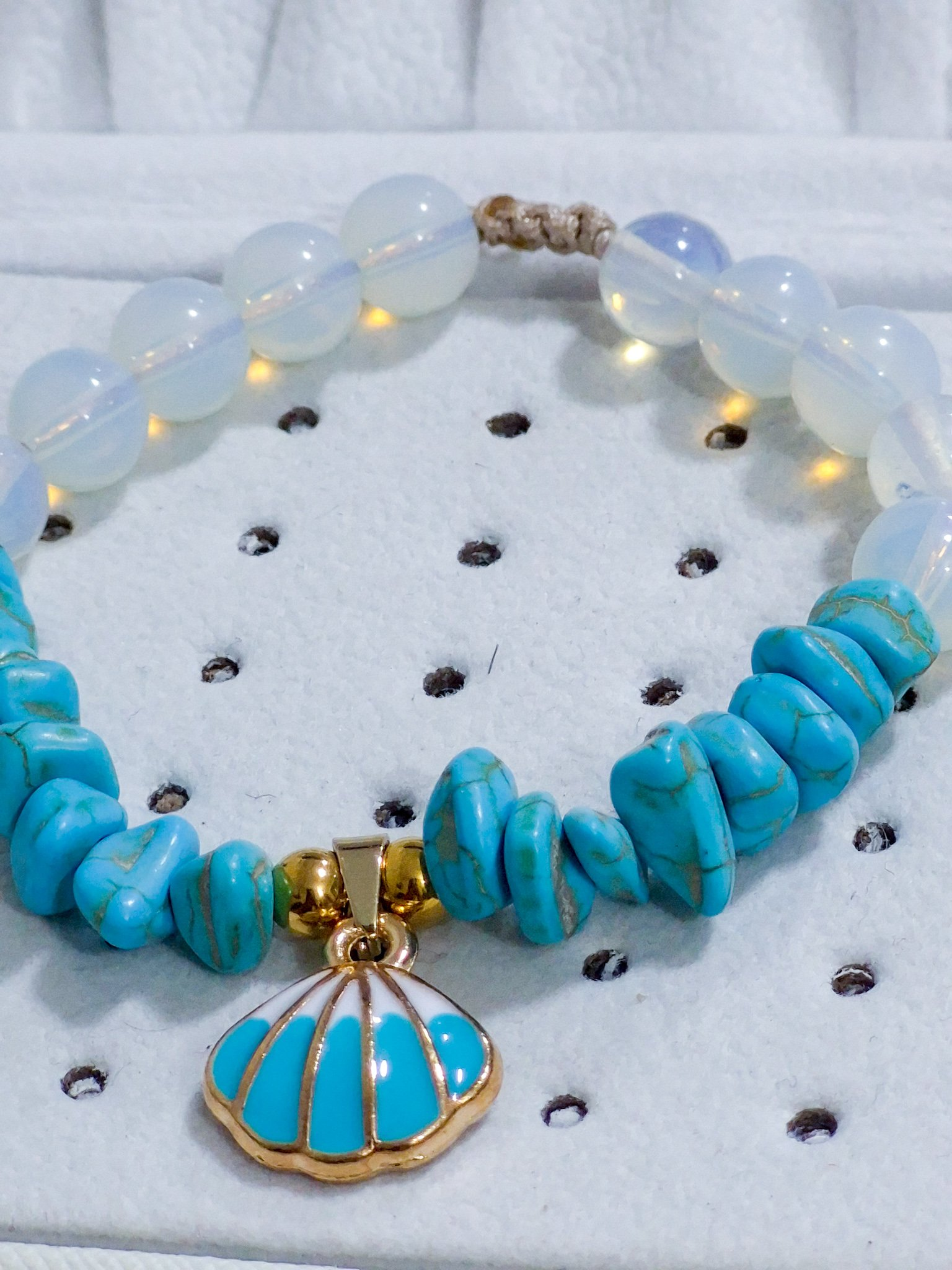 Hermosa pulsera hecha a mano elaborada con material de acero quirúrgico 316l, dije con doble enchapado, piedras Cascajos y piedra natural luna.