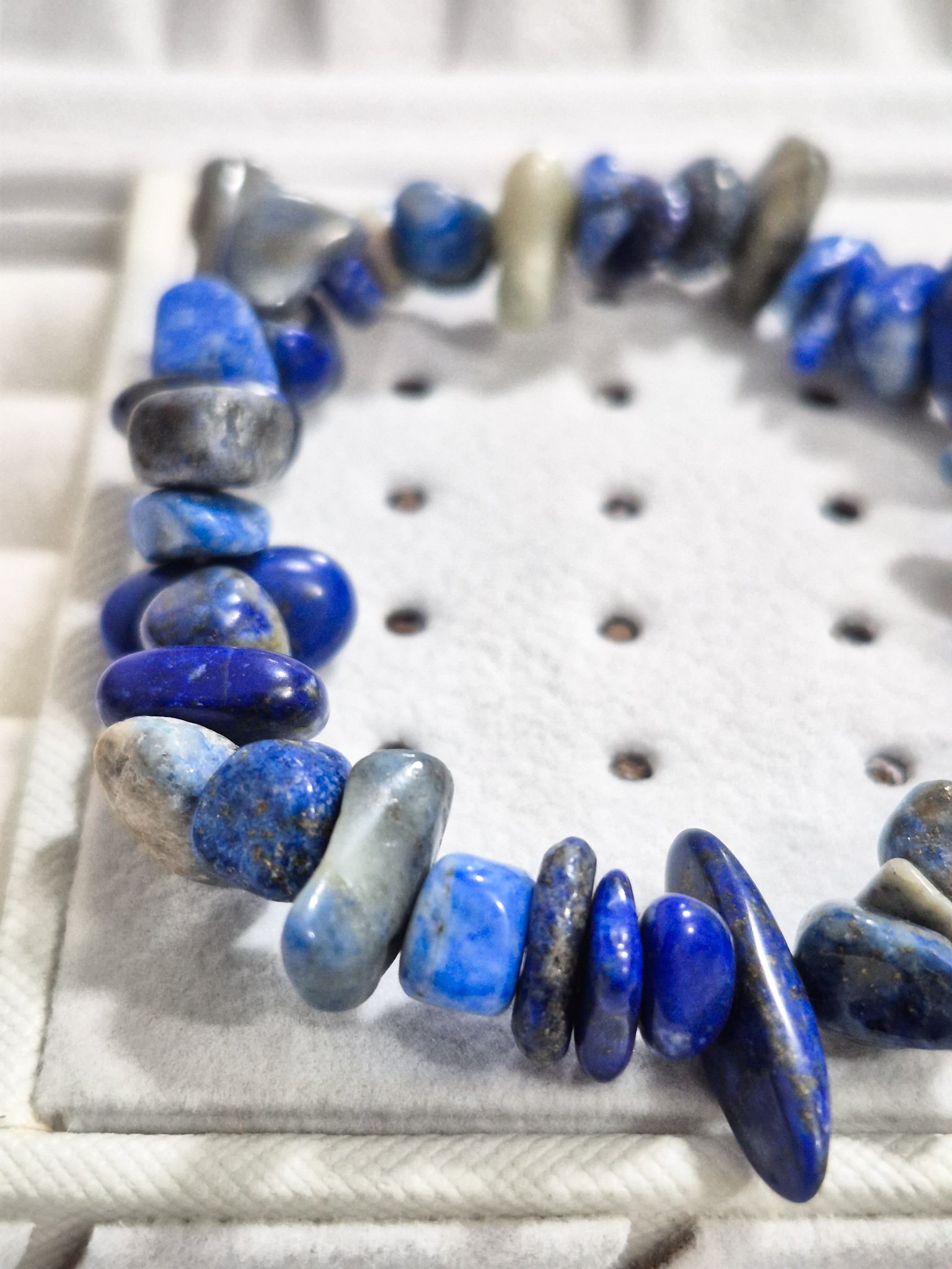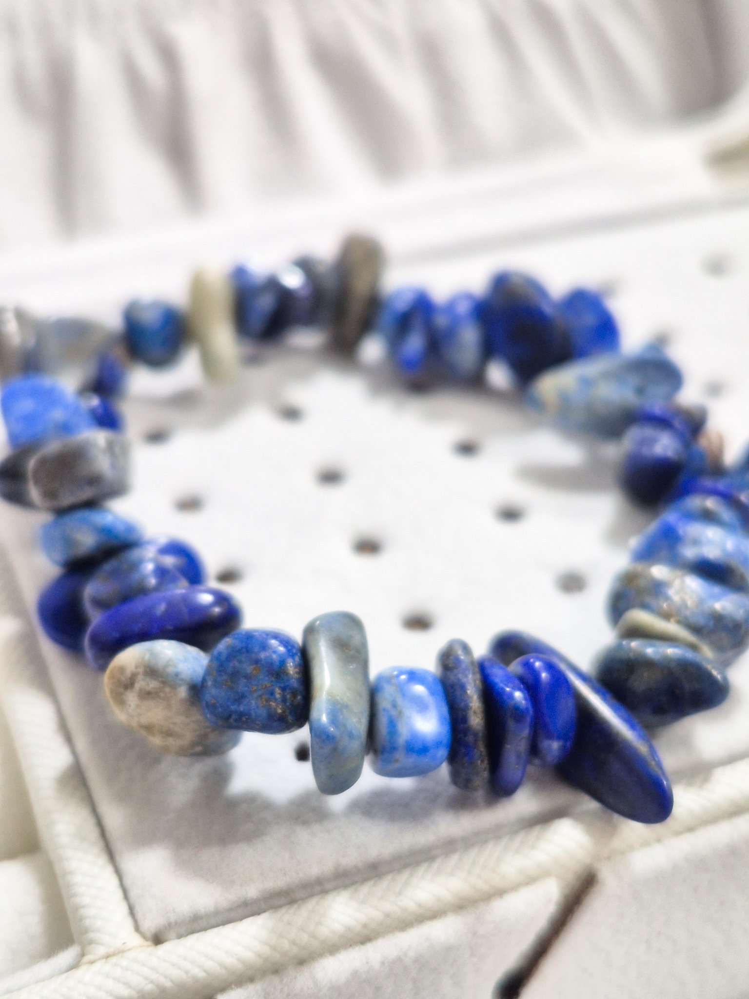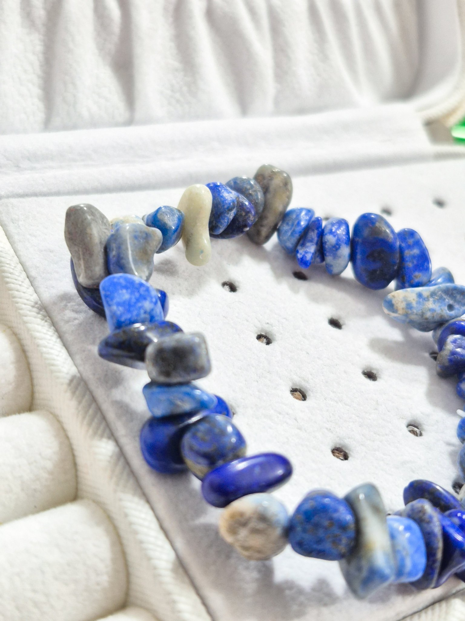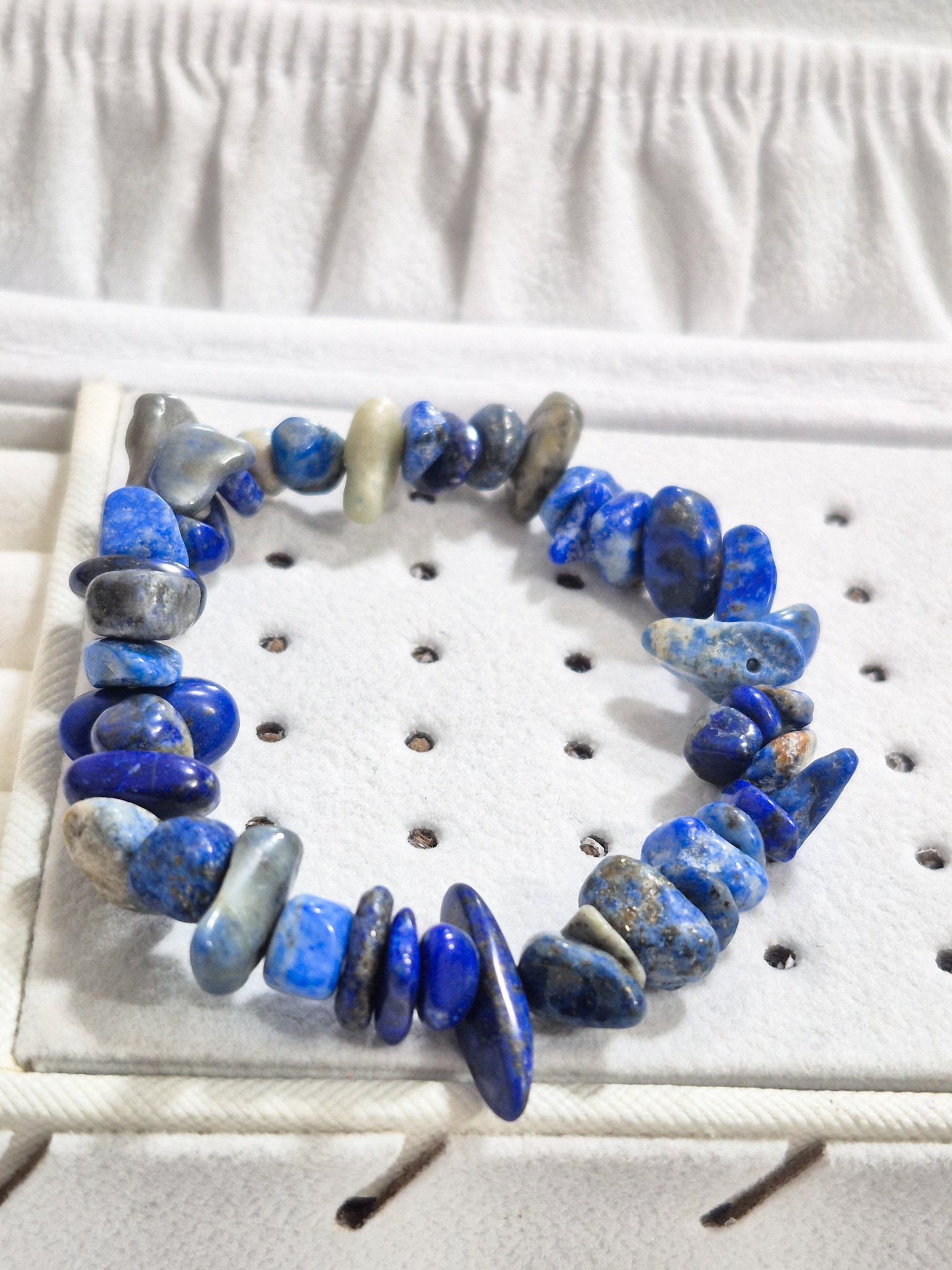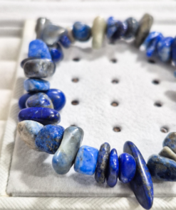 hermosa pulsera elaborada a mano con doble elástico (calidad A1), con piedras naturales originales en cascajo lápiz lazuli.