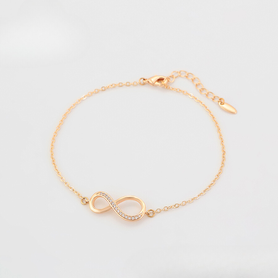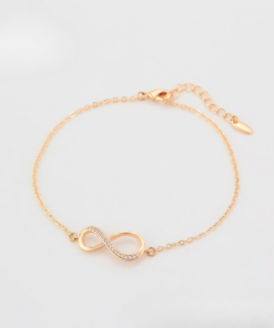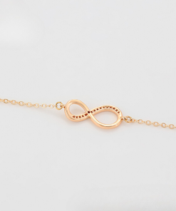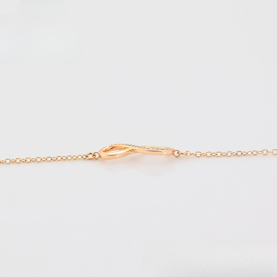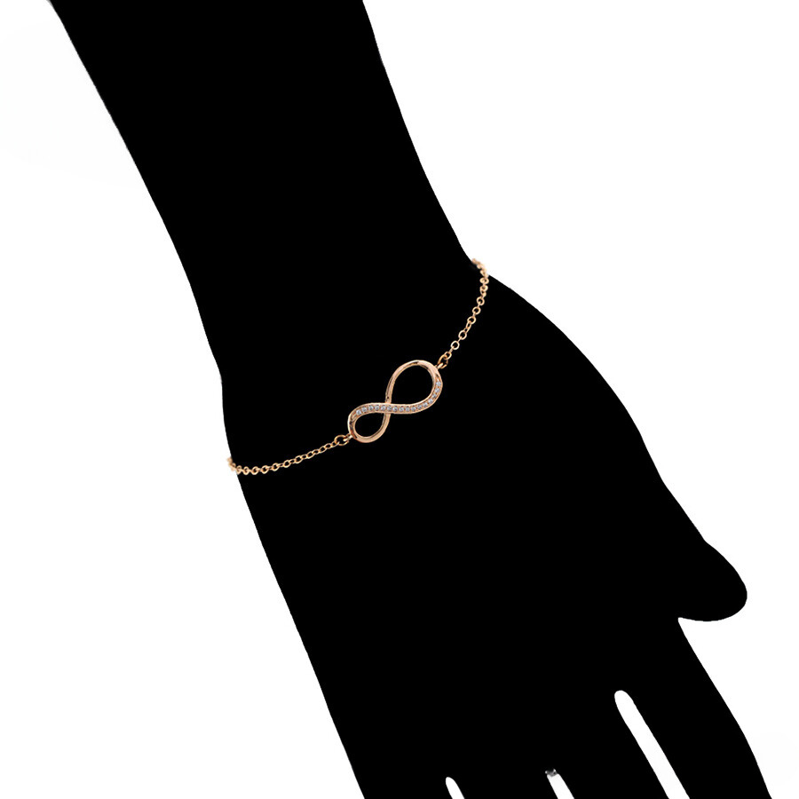 Hermosa pulsera elaborada en acero, con doble enchape de oro rosé de 18k, e incrustación de cristal.