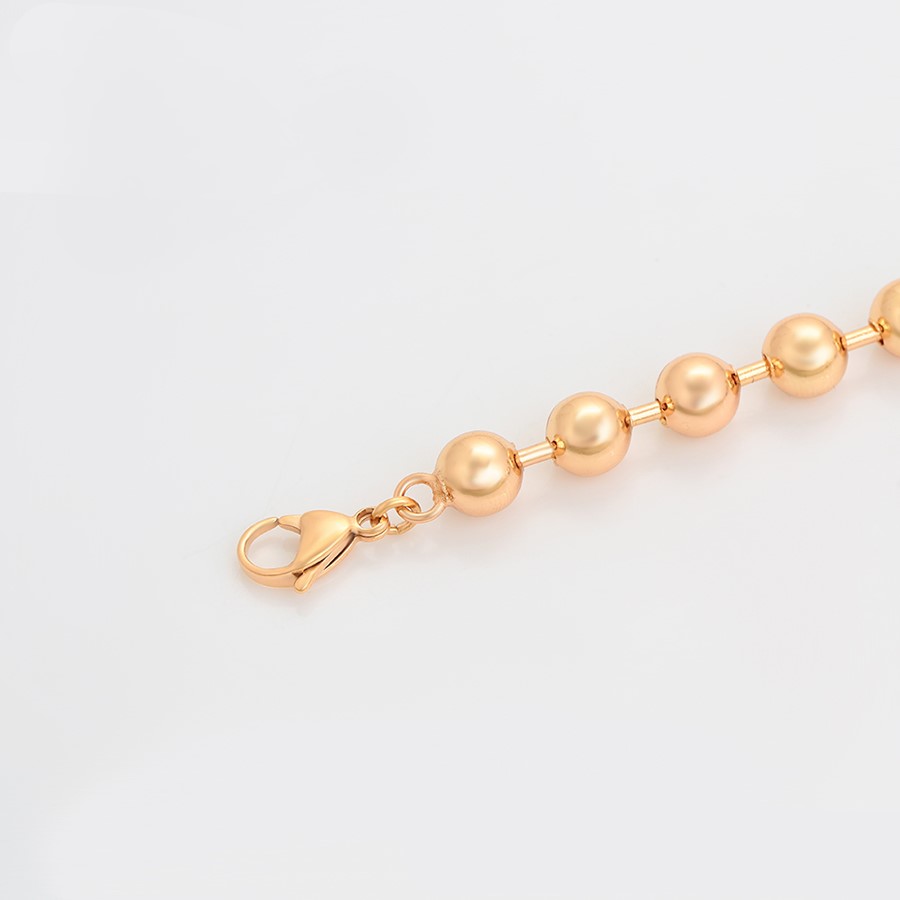 Bella, elegante y fina pulsera elaborada en acero quirúrgico 316l, con doble enchape de oro rosa, con billas de acero de 8.0 mm, en todo alrededor del largo de la pulsera, con cadena regulable, exclusivo modelo.