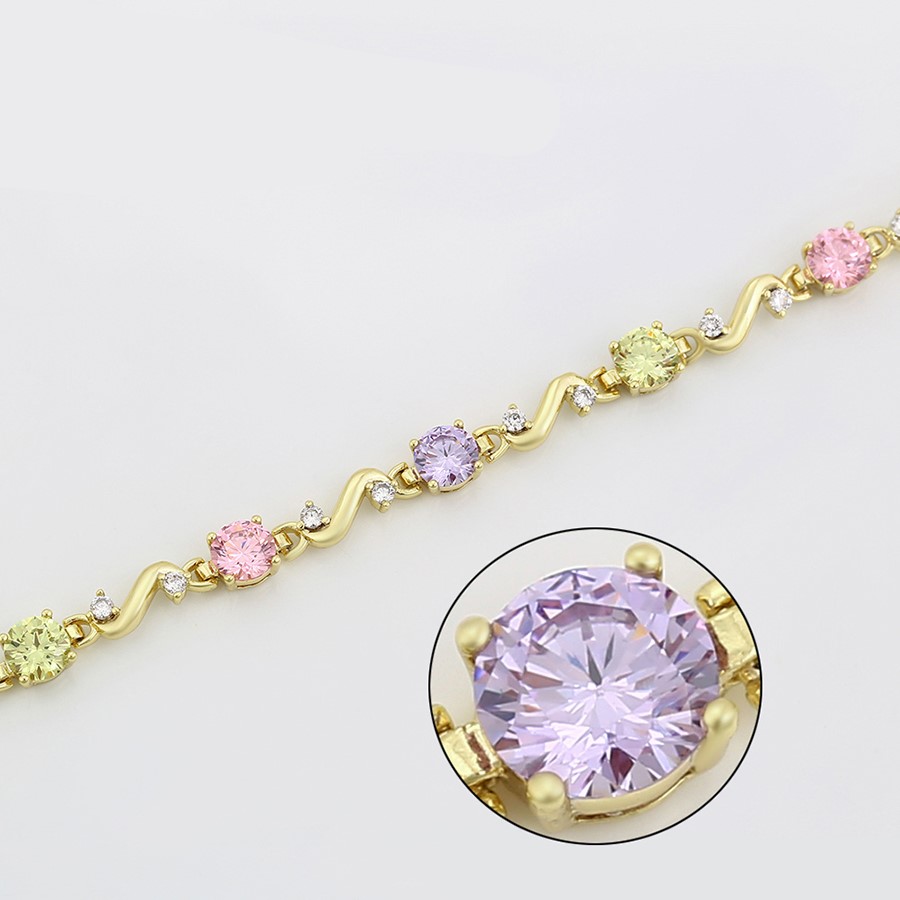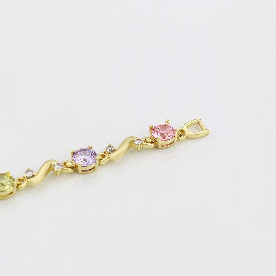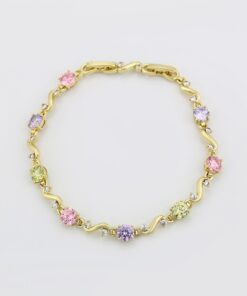 Linda, elegante y delicada pulsera elaborado en acero, con doble enchape de oro de 18k, e incrustación de cristal.