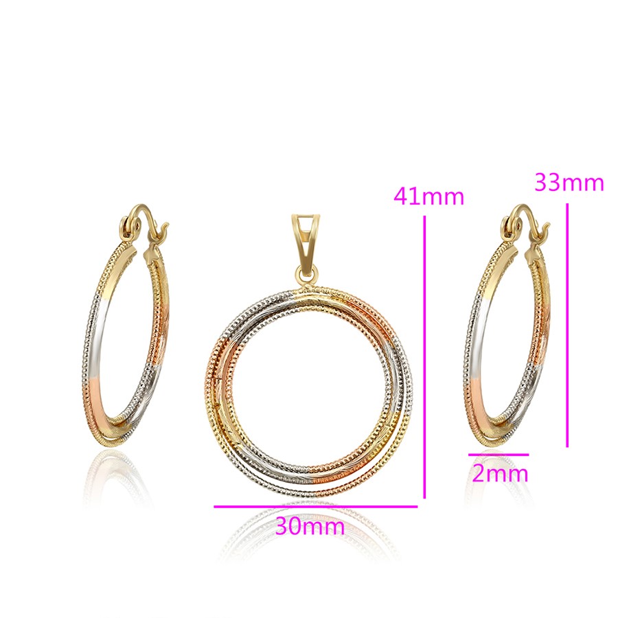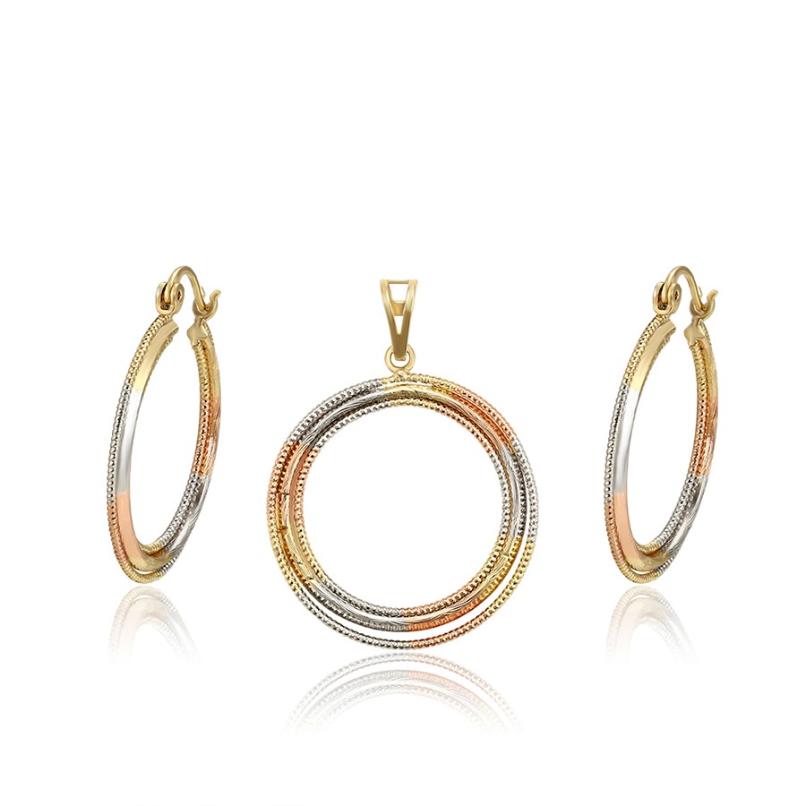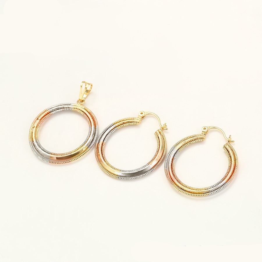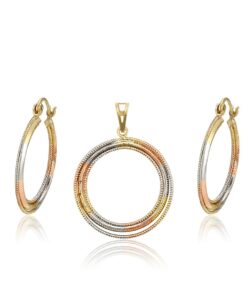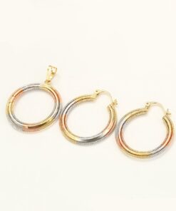 Fino y elegante set tendencia y de lujo elaborado en Acero 316L, con doble baño: Oro Rosa, Oro dorado de 18k, y doble baño plata de ley 925, tallado y finamente trabajado, con collar cubico cordón, para que luzcas la elegancia que te caracteriza!