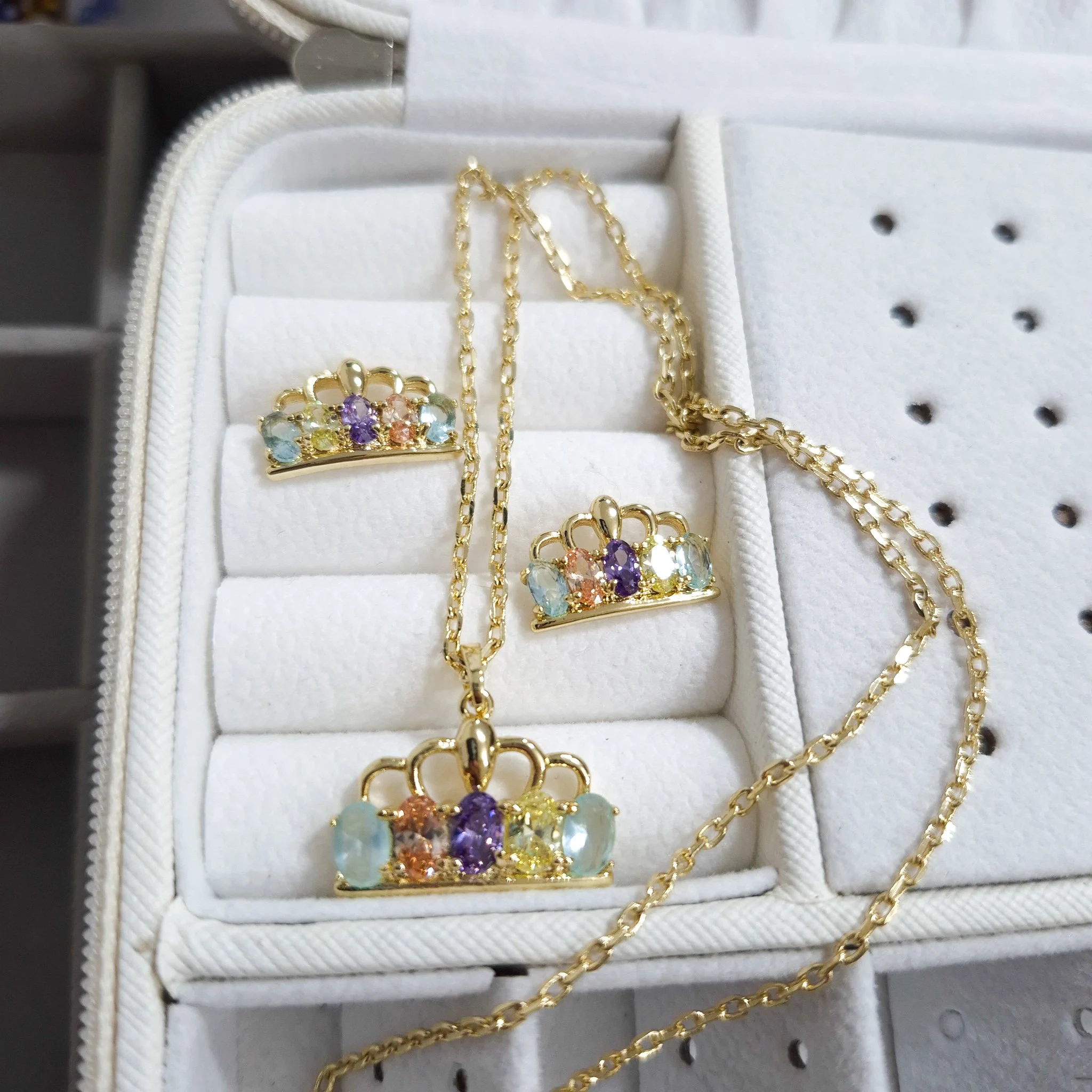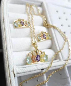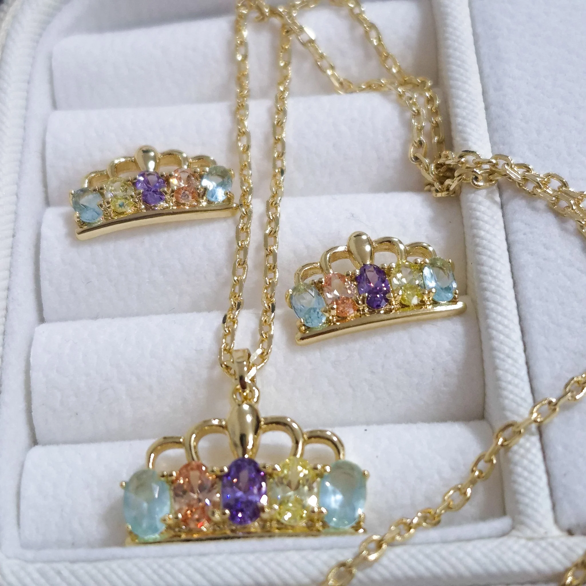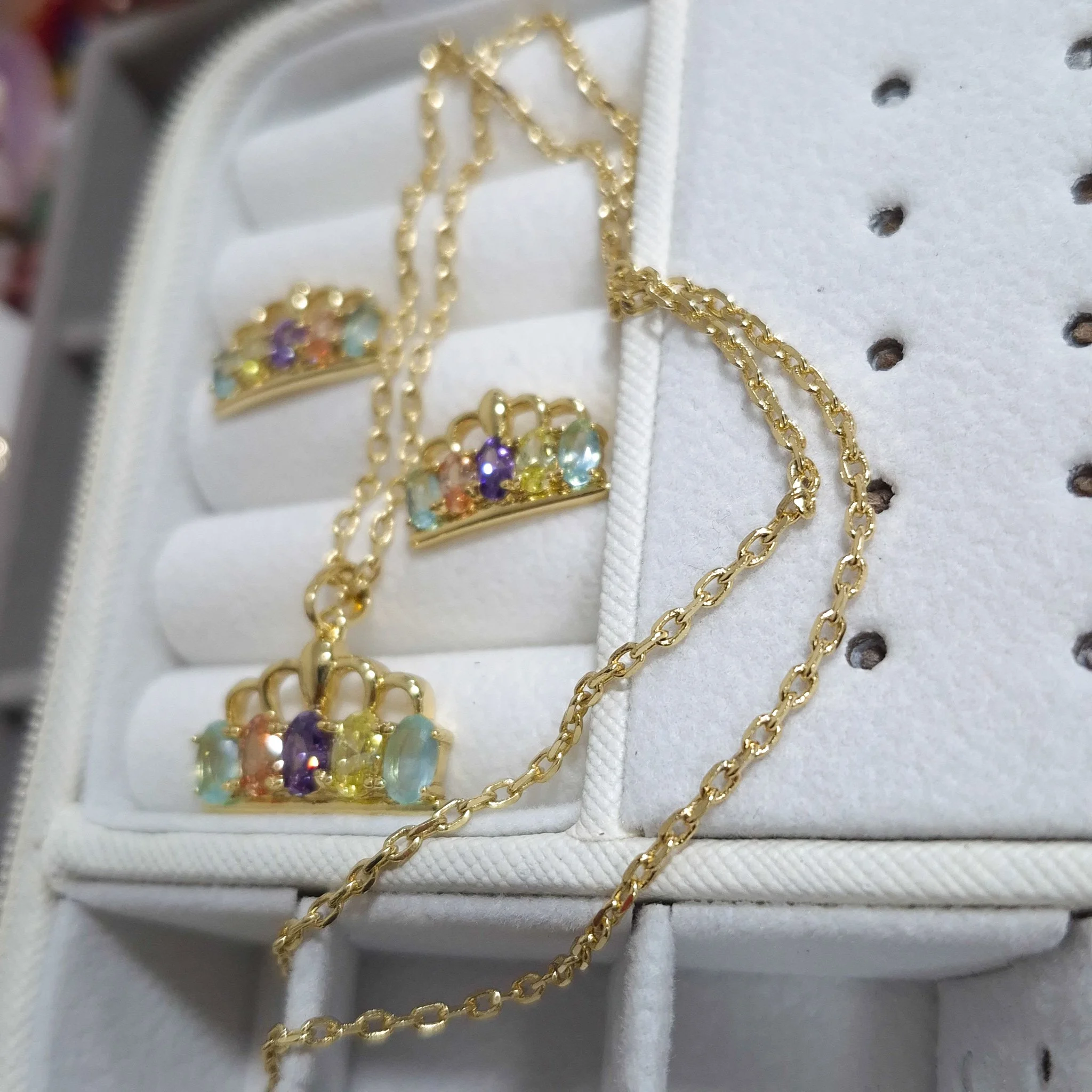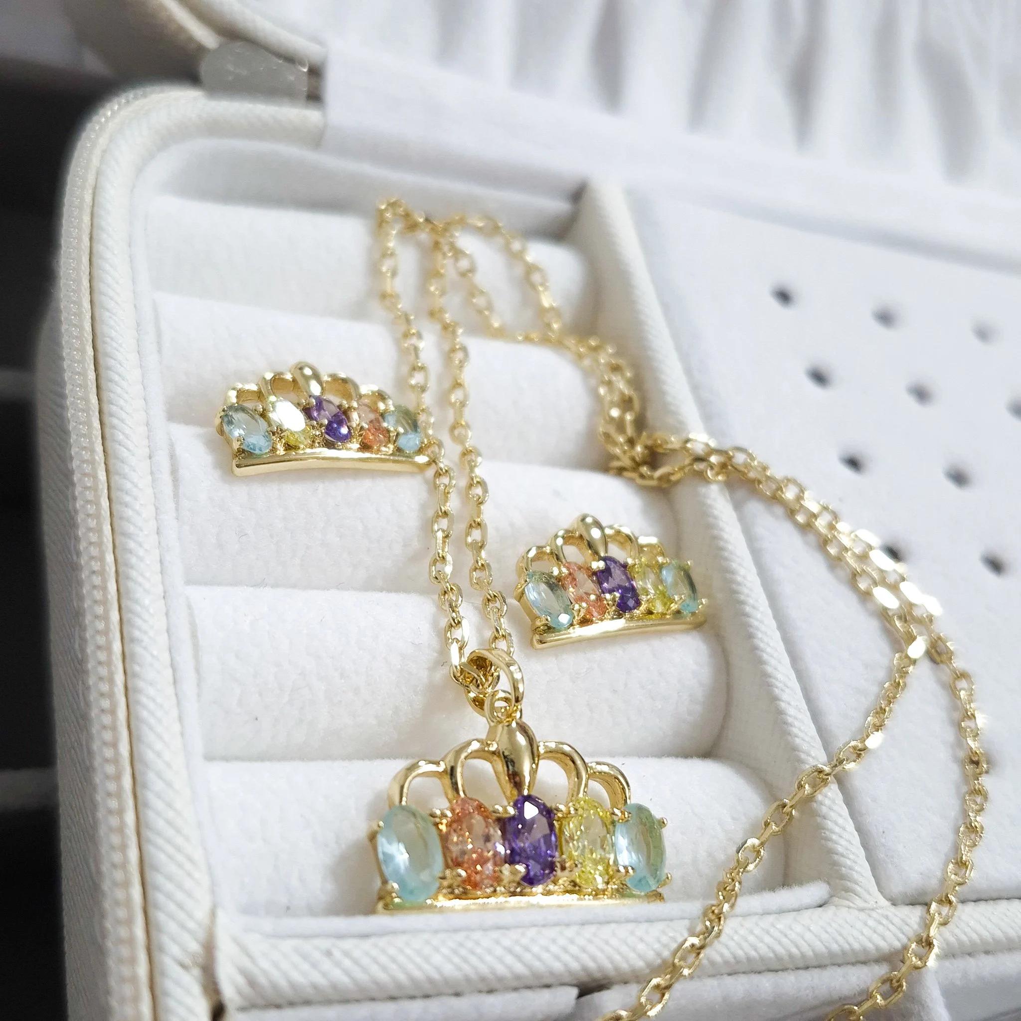 Hermoso set elaborado en acero quirúrgico 316l con enchape de oro dorado 24k e incrustación de cristal Swarovski