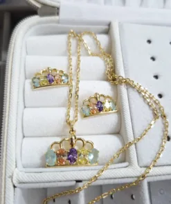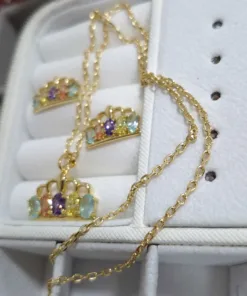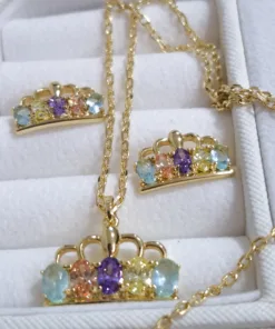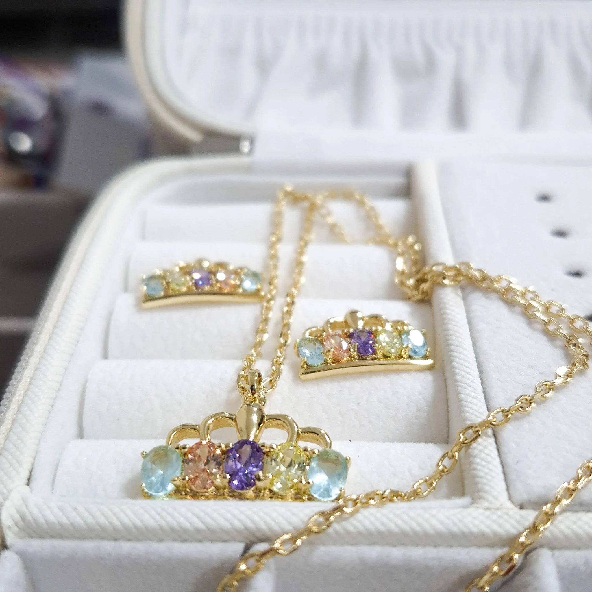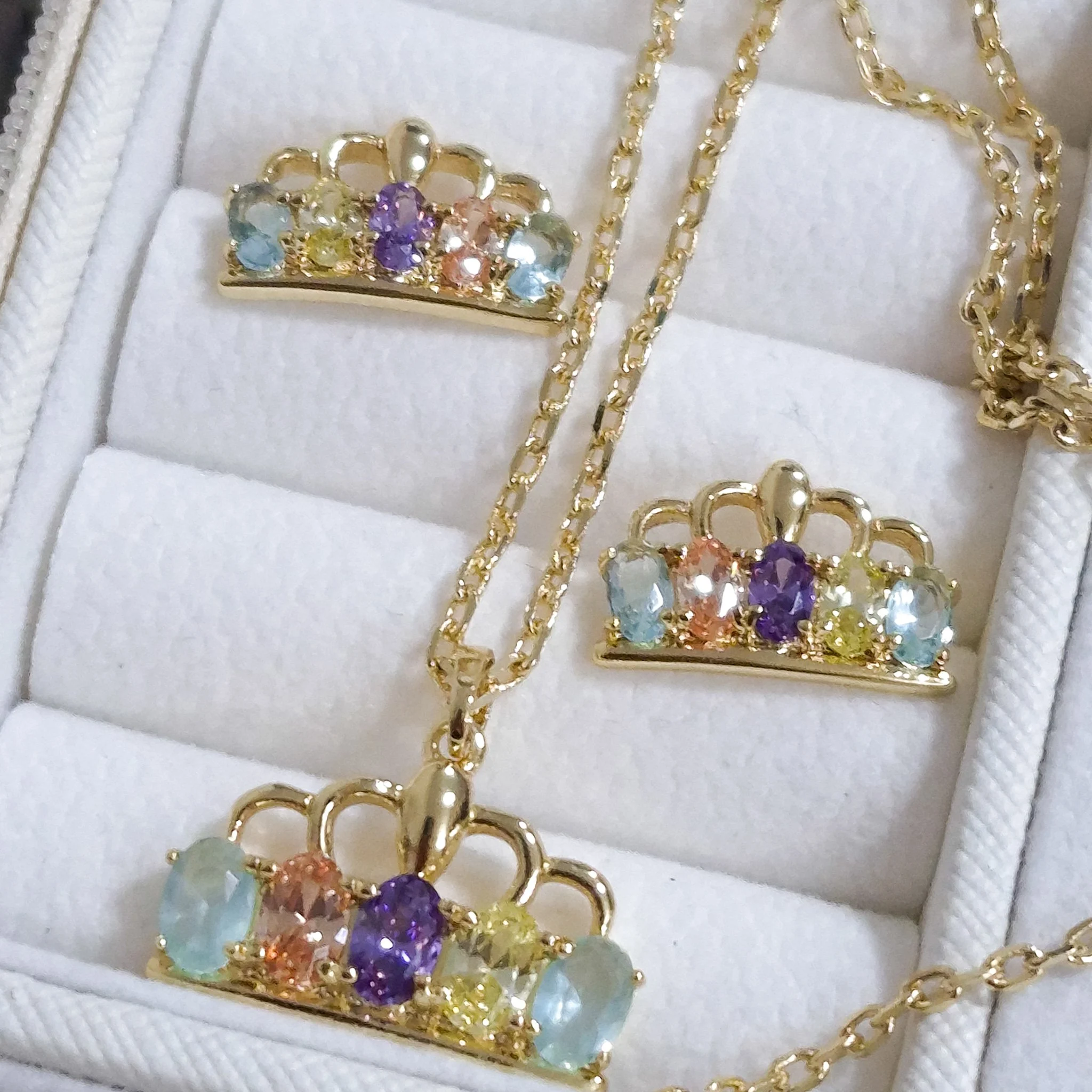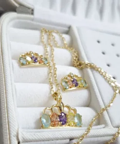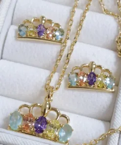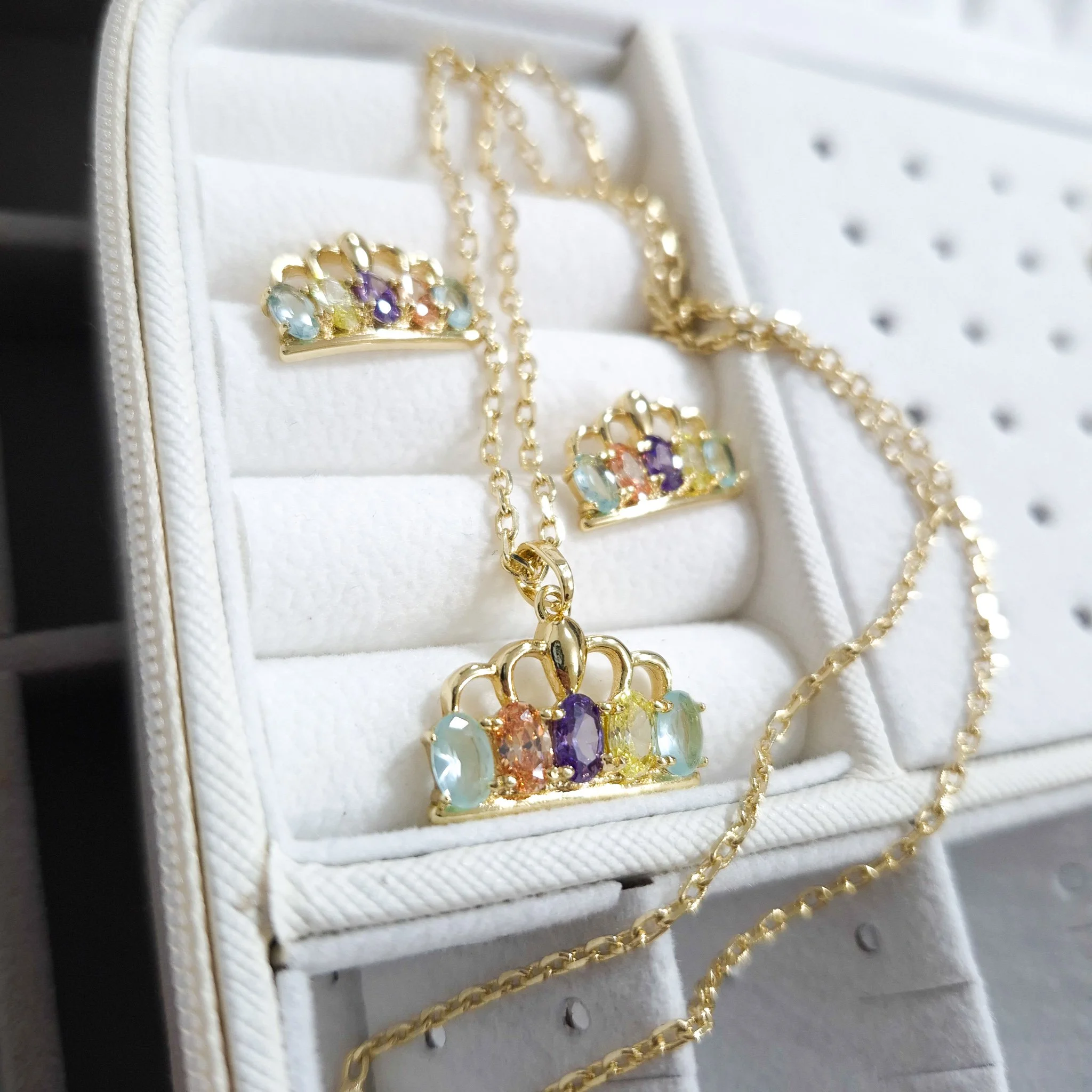 Hermoso set elaborado en acero quirúrgico 316l con enchape de oro dorado 24k e incrustación de cristal Swarovski