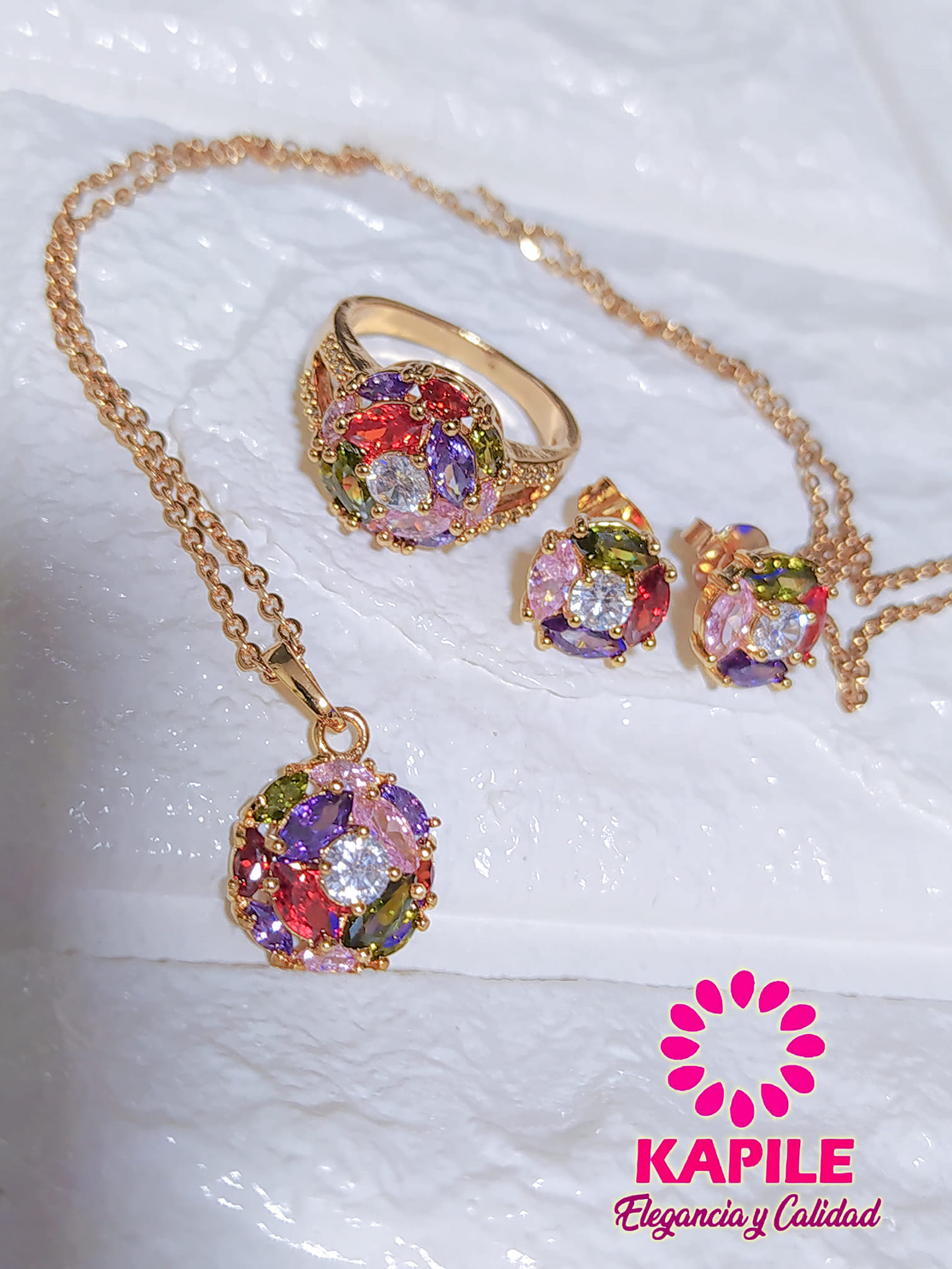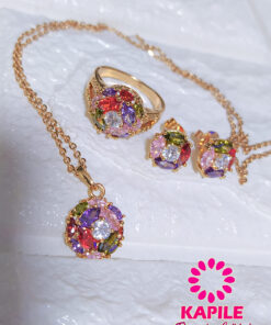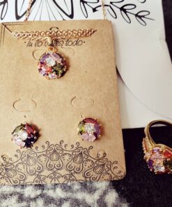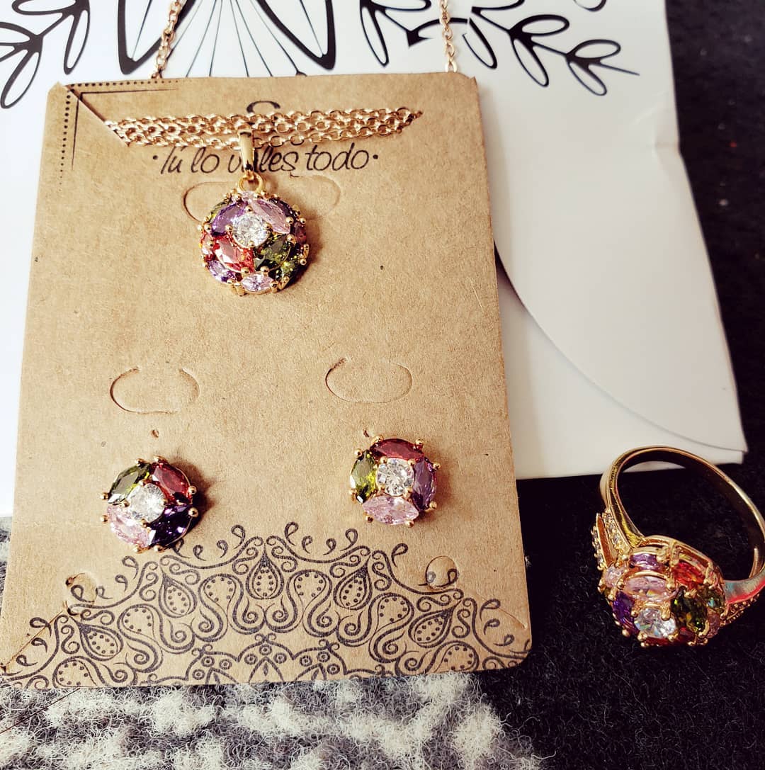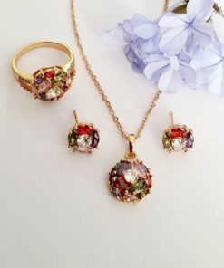 Fino y elegante set elaborado en Acero, con doble enchape de oro rosé de 18K, e incrustación de cristal swarovski.