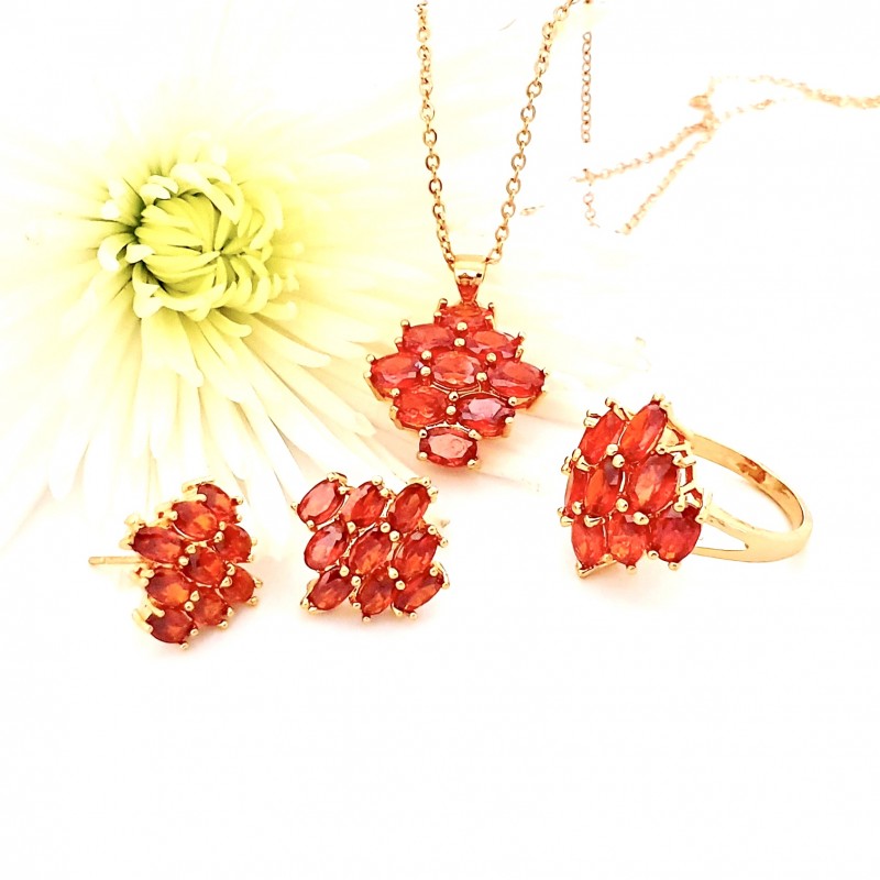 Fino y elegante set elaborado en Acero Quirúrgico 316L, con doble enchape de oro rosé, e incrustaciones de cristal swarovski color rojo, modelo exclusivo!.