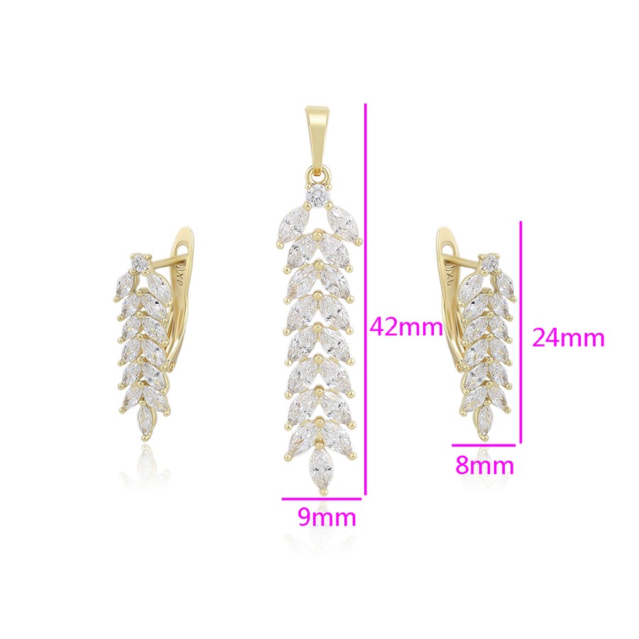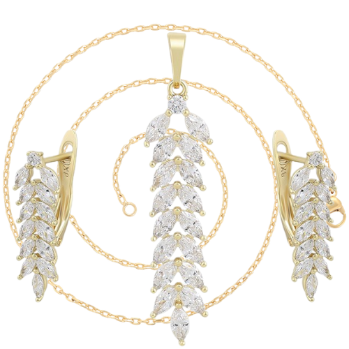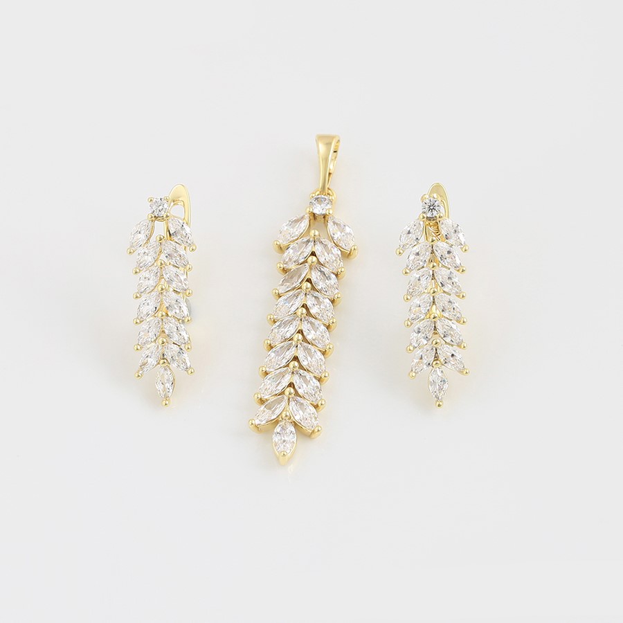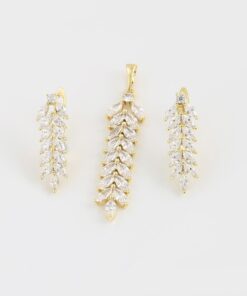 Hermoso y delicado set elaborado en acero quirúrgico 316L, con doble baño de oro de 18k, e incrustación de cristales swarosvki, con cadena dorada.
