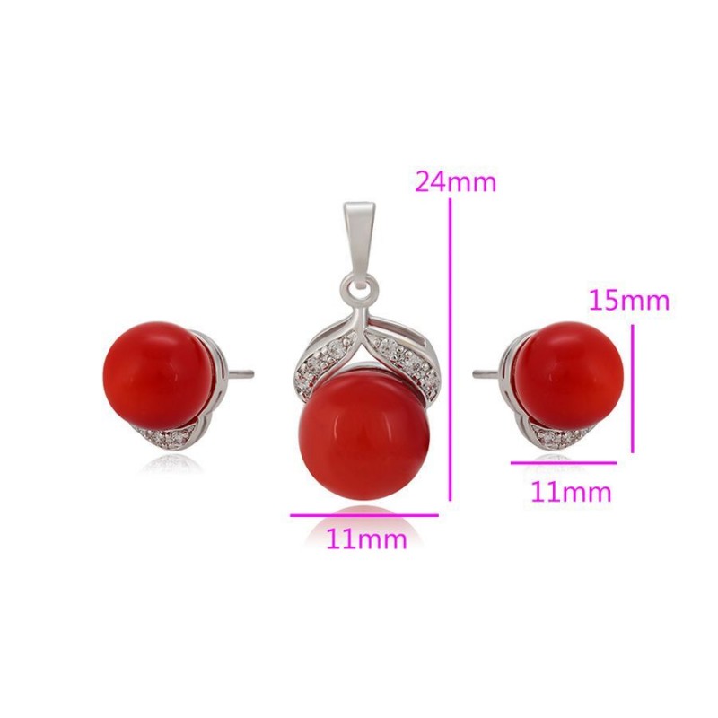 Hermoso set trabajado en auténtico acero 316L, con doble baño en plata de ley 925 e incrustación de cristales Swarovski y perlas checas #9 en color rojo.