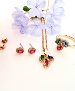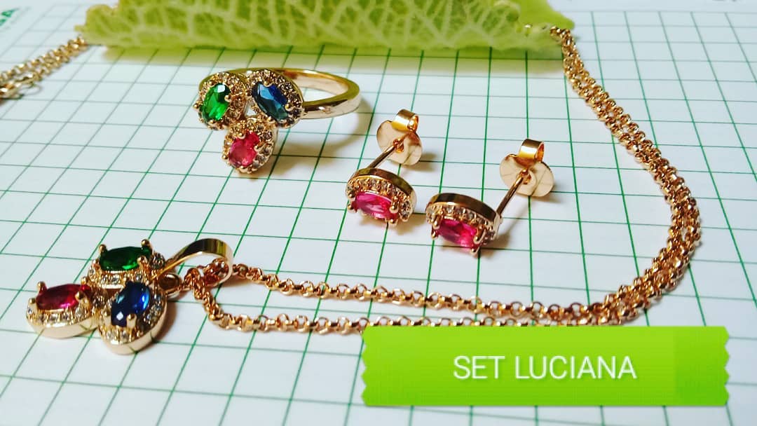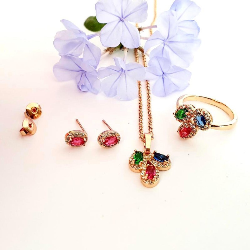 Bellísimo set elaborado en Acero, con doble enchape de oro de 18K, e incrustación de cristal swarovski, muy lindo!.