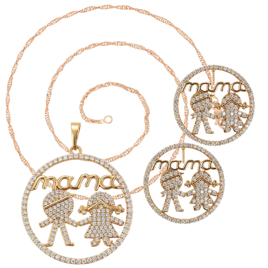 Elegante Set elaborado en Acero quirúrgico 316L, con baño de oro rosa de 18k, e incrustación de cristales swarovski.