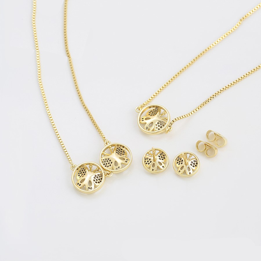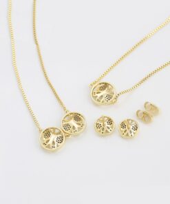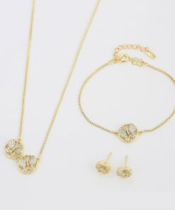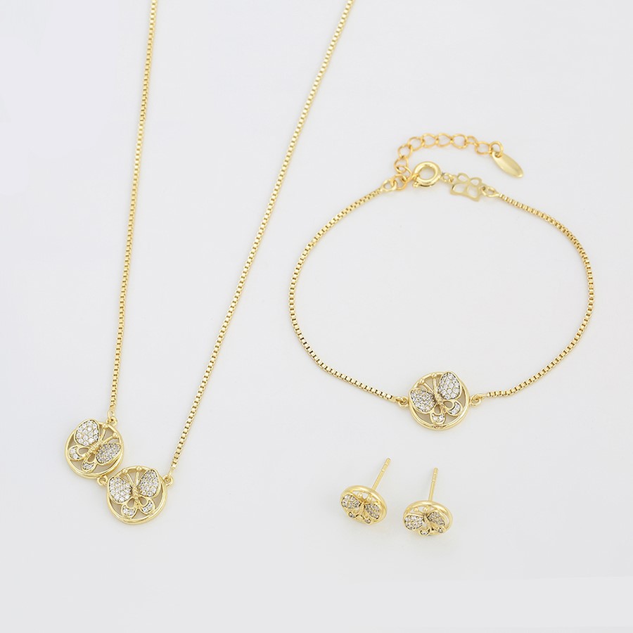 Elegante, bello, fino y delicado set elaborado en acero quirúrgico 316l, con doble baño de oro de 18k, e incrustación de cristales swarovski, diseño exclusivo.