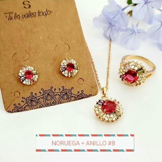 Delicadeza y elegancia en un set trabajado en Acero Quirúrgico 316L, con doble baño de oro de 18K, e incrustación de cristales swarovski.